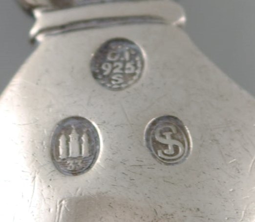 Tidlig Georg Jensen "Kaktus" kaffeske i sterlingsølv. Dateret 1915-30. Syv stk på lager. Designer: Gundorph Albertus. Længde: 10,5 cm. Tidligt stempel: 1915-30. I flot stand.