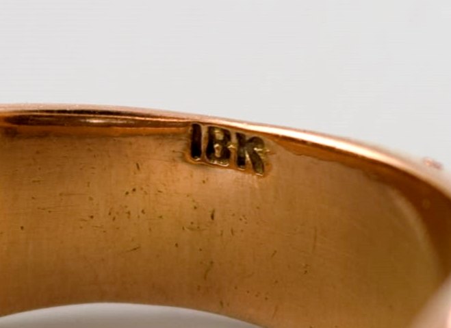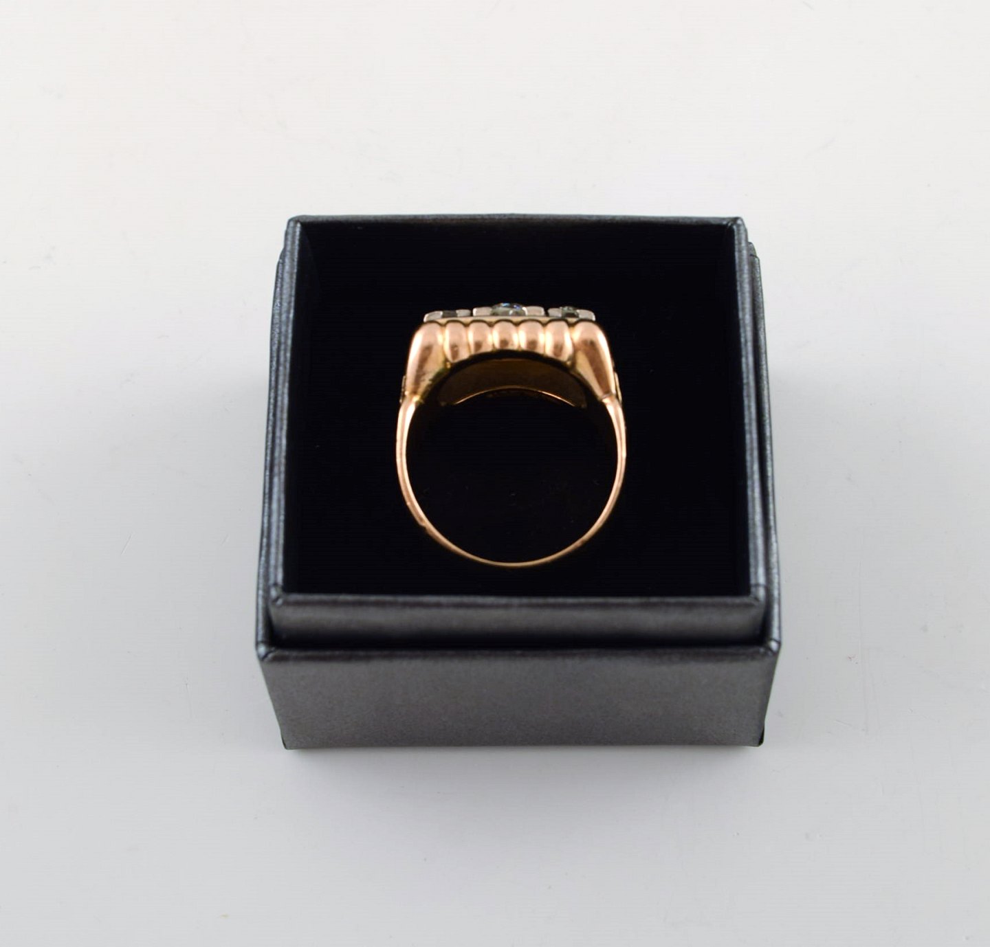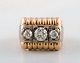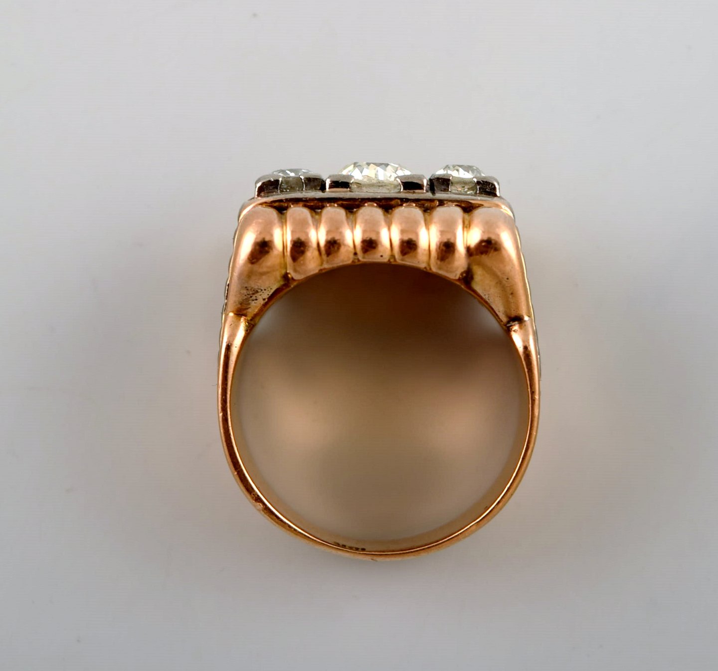 Large art deco ring in 18 carat gold with three old cut large diamonds of 1.70 carats in total. 1930's.