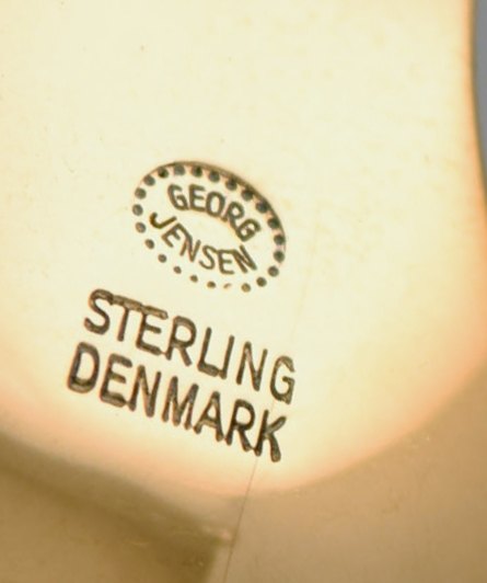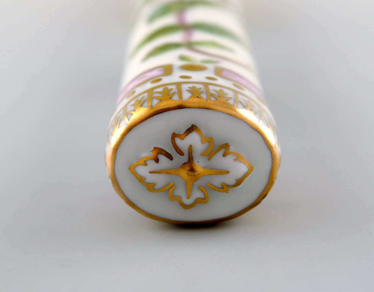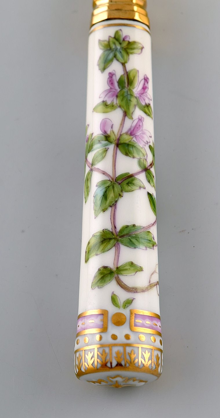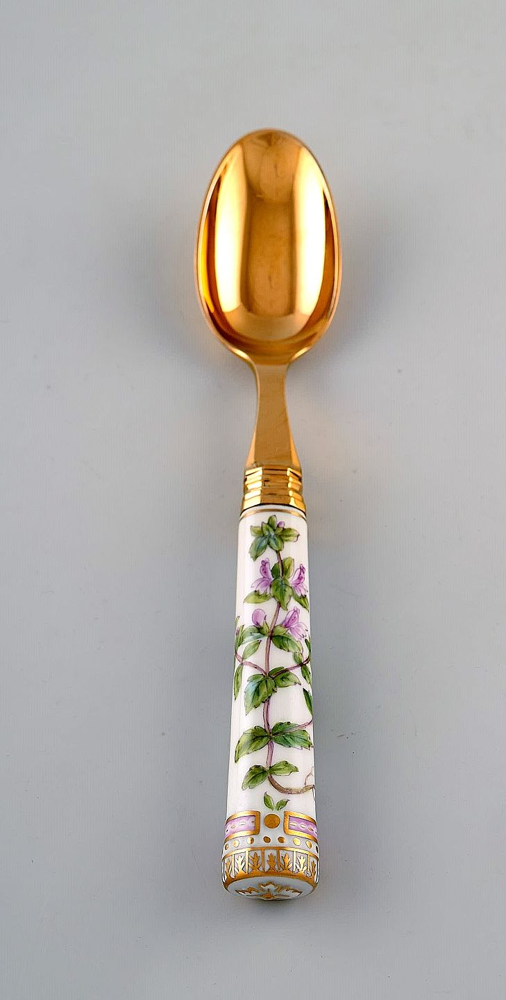 Georg Jensen for Royal Copenhagen. "Flora Danica" spiseske af forgyldt sterlingsølv. Skafte af porcelæn dekoreret i farver og guld med blomster. I flot stand. Stemplet. Måler: 21 cm.