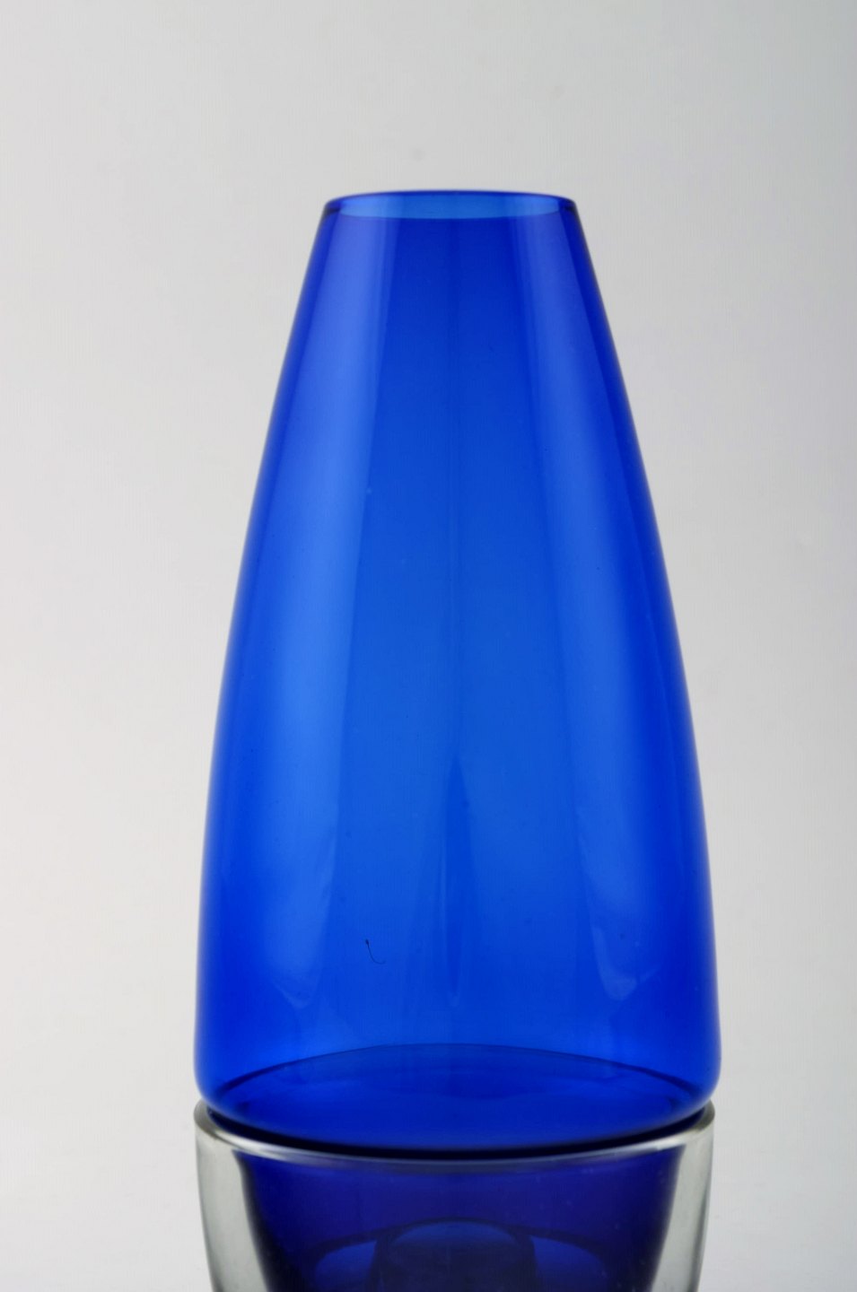 Per Lütken for Holmegaard. A pair of rare "Hygge" lamps for candles in clear and blue art glass. Designed in 1958.