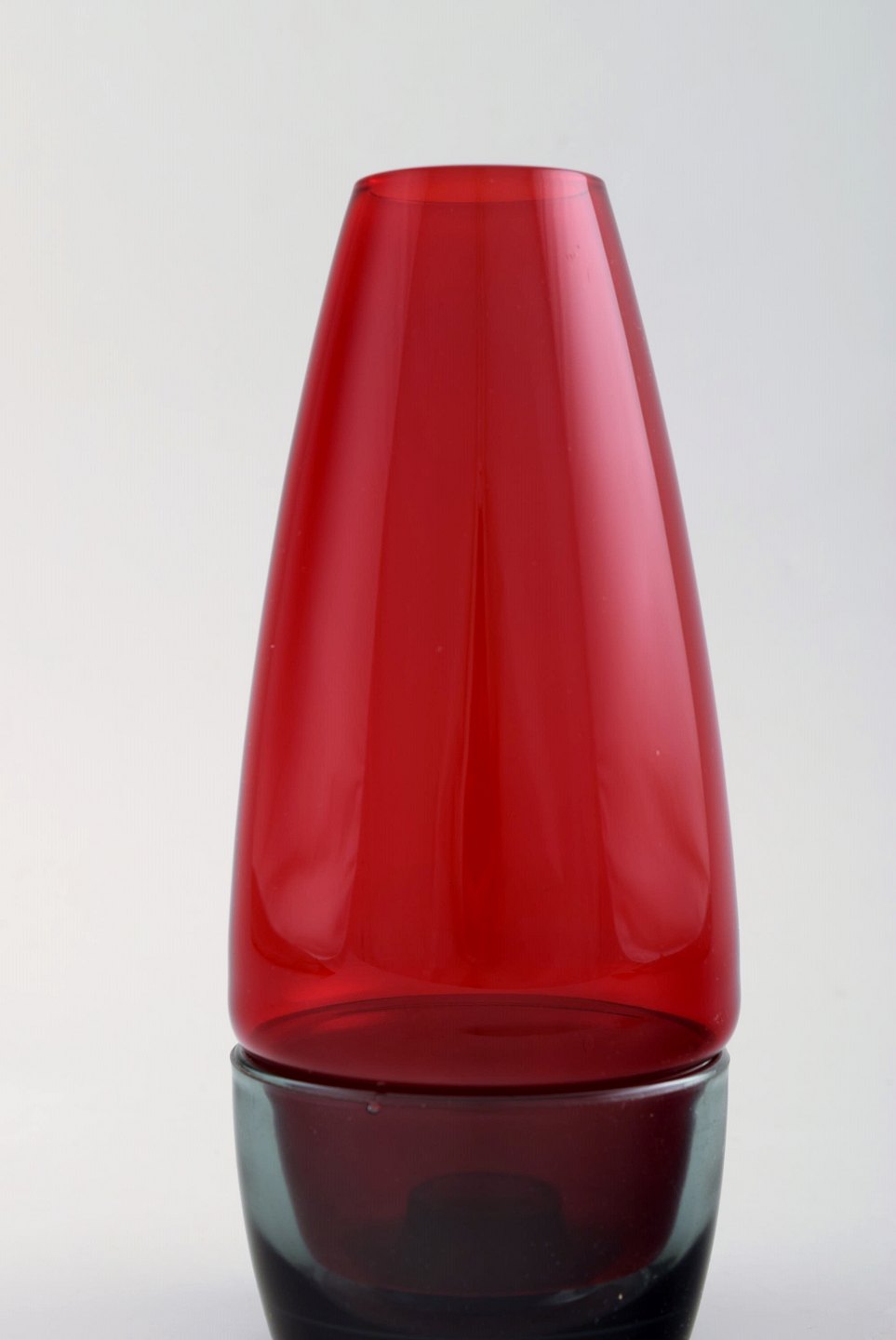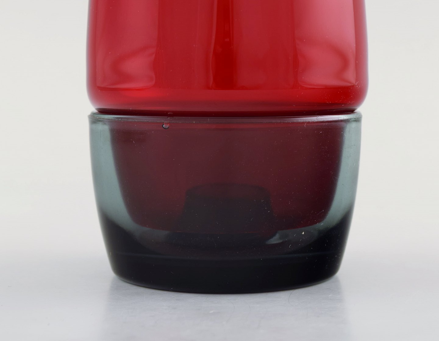 Per Lütken for Holmegaard. Rare "Hygge" lamp for candle lights in black and red art glass. Designed in 1958. In very good condition. Measures: 19.5 x 8 cm.