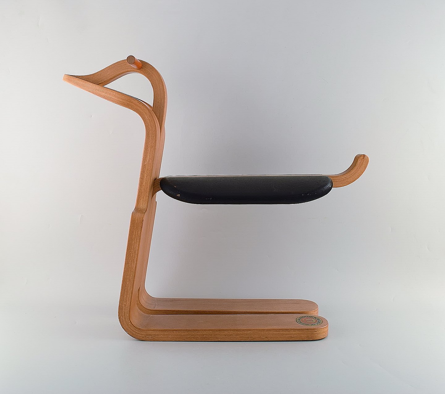 Magnus Olesen. 40-års jubilæum gyngehest i elmetræ. Dansk design, dateret 1977.