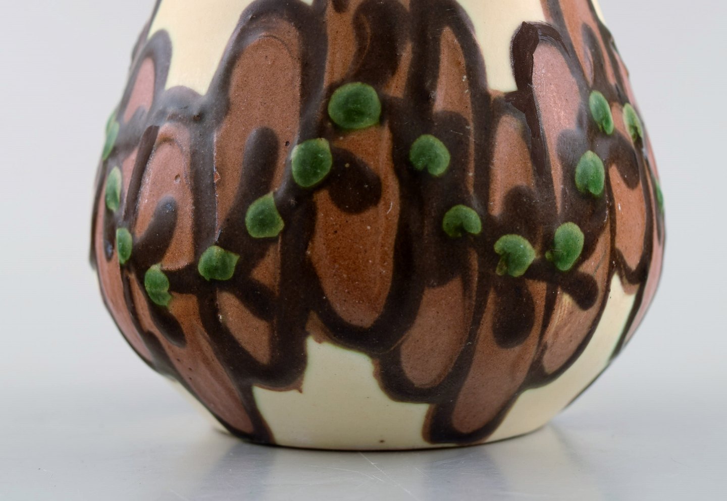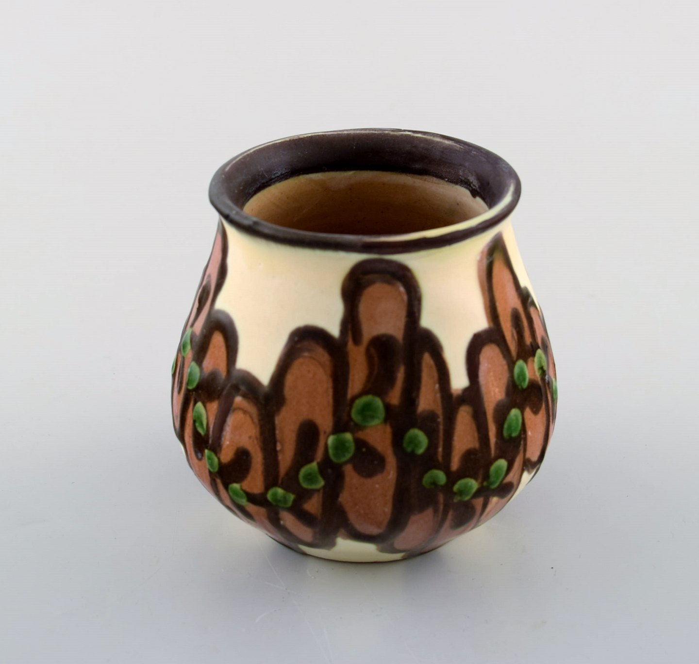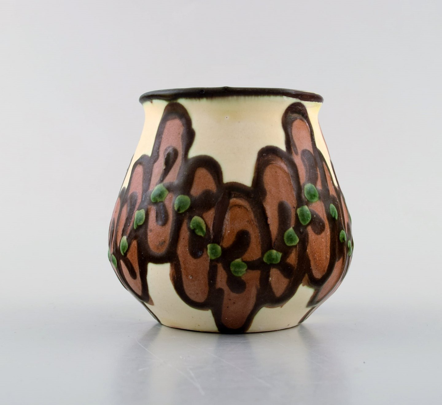 Kähler, HAK. Vase in glazed ceramics. Maroon flowers on light base. 1930 / 40's. Measures: 9.5 x 9 cm. Stamped. In very good condition.