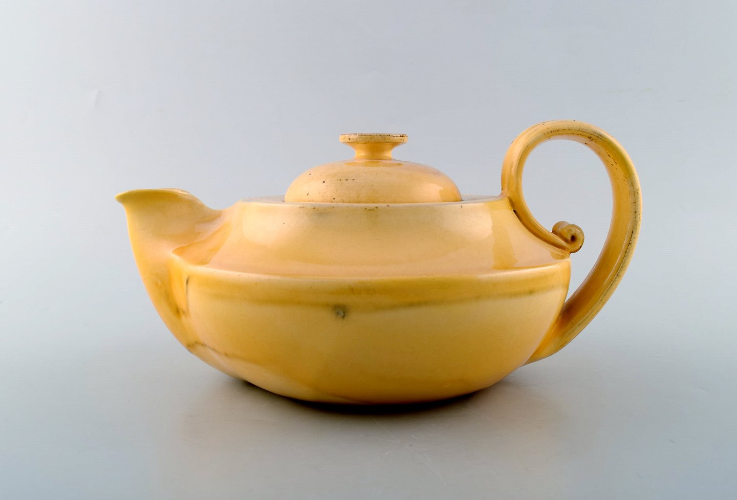Kähler, Denmark. Glazed ceramic teapot. Beautiful uranium yellow glaze. 1930 / 40's. Measures: 26 x 13 cm. Stamped. In very good condition.