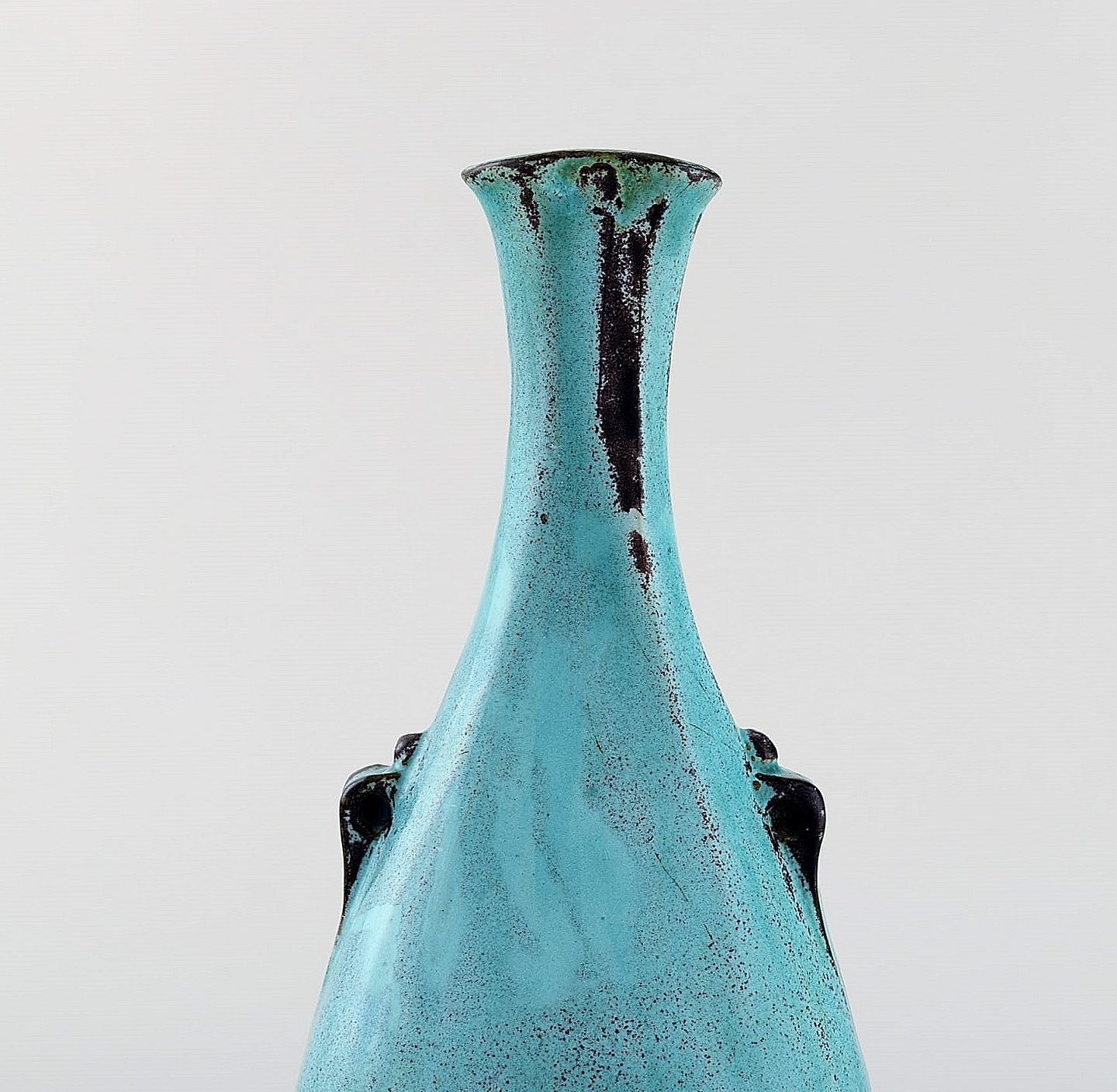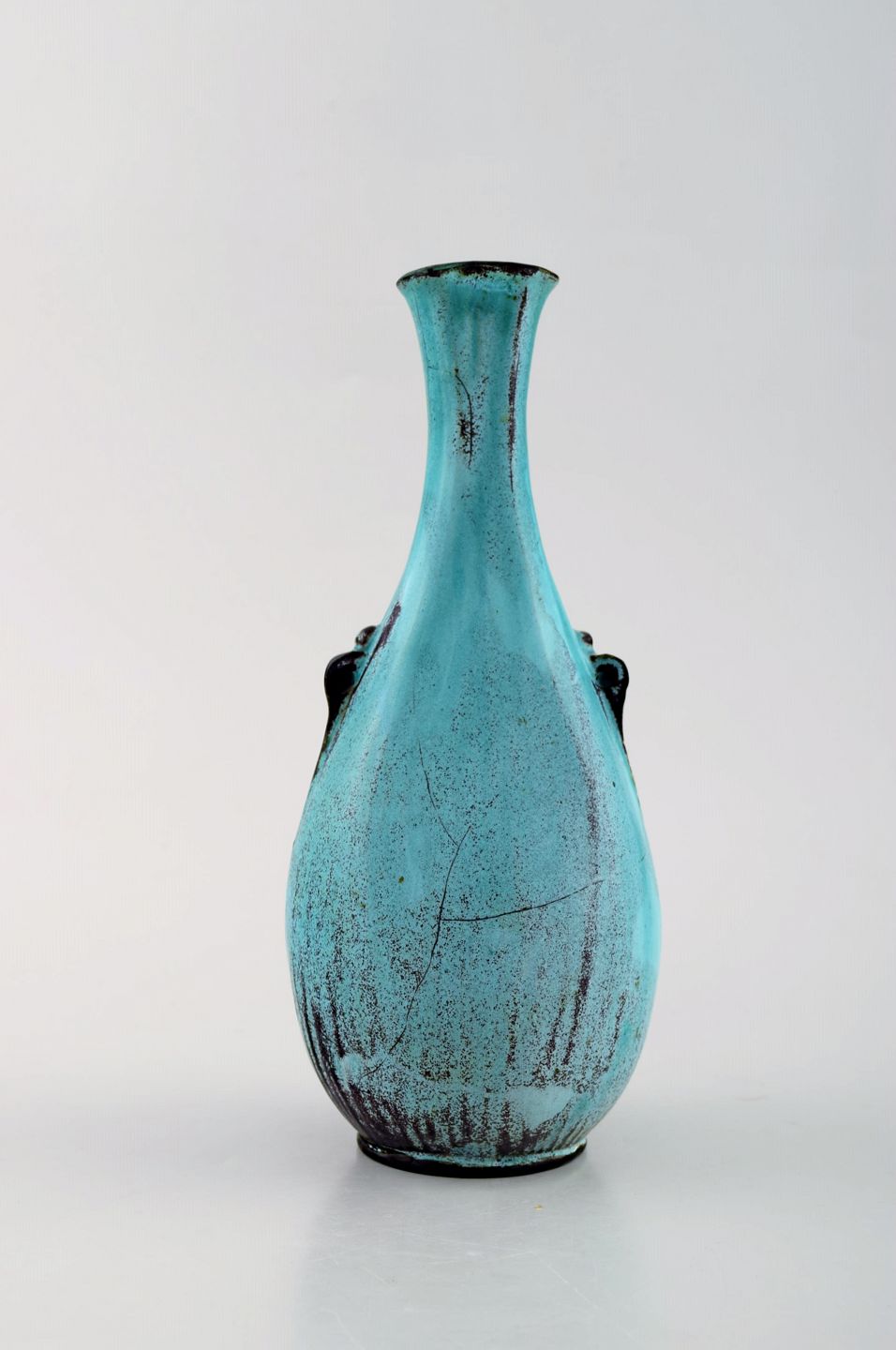Svend Hammershøi for Kähler, HAK. Vase in glazed stoneware. Beautiful green black double glaze. 1930 / 40's. Measures: 19 x 8.5 cm. Stamped. In very good condition.