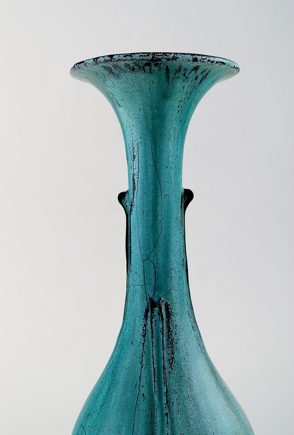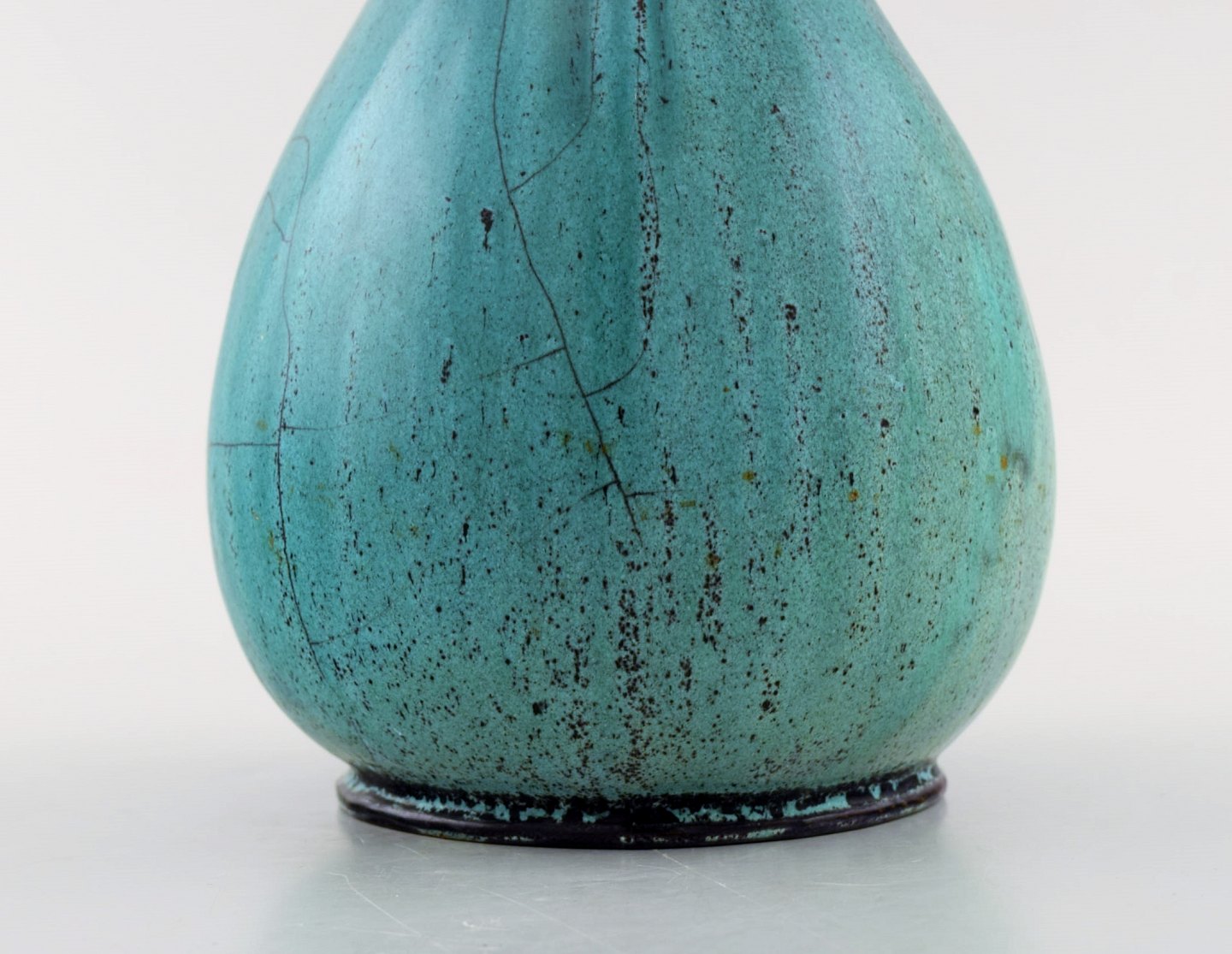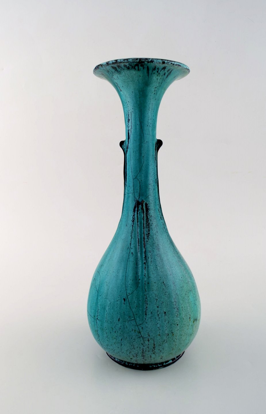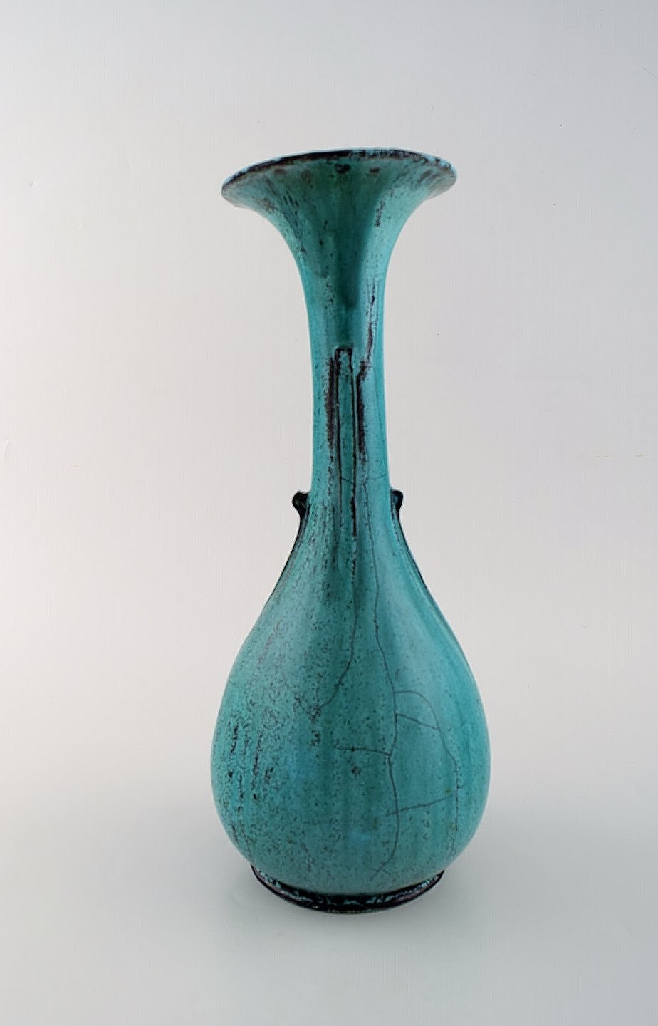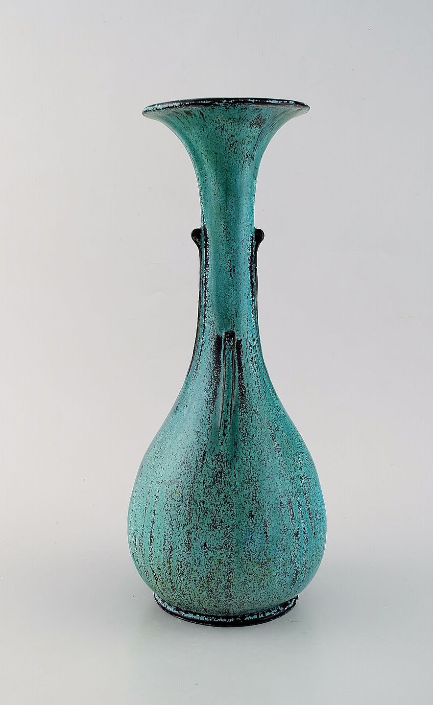 Svend Hammershøi for Kähler, HAK. Stor vase i glaseret stentøj. Smuk grøn sort dobbeltglasur 1930/40'erne. Måler: 31,5 x 14 cm. Stemplet. I flot stand.