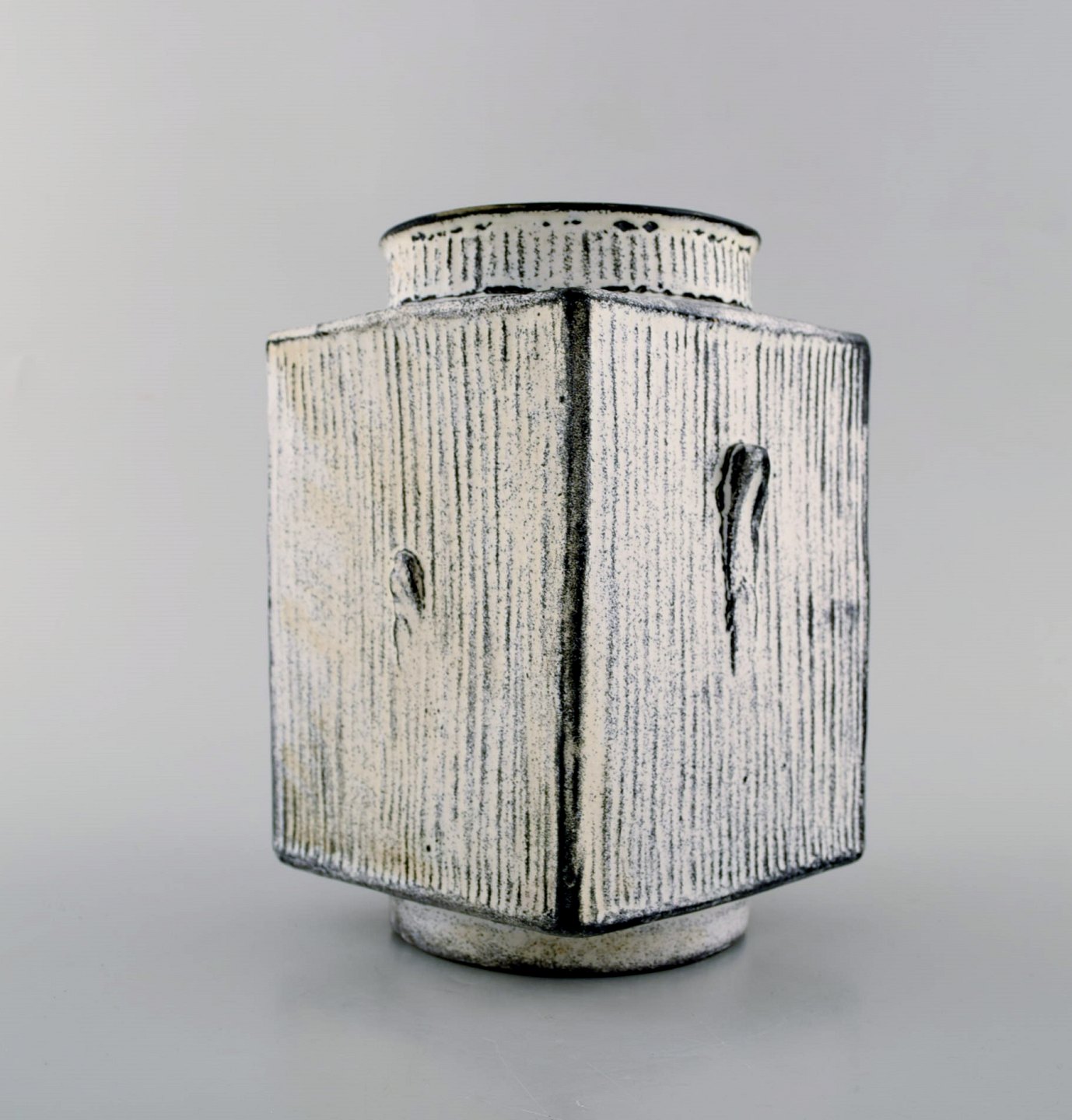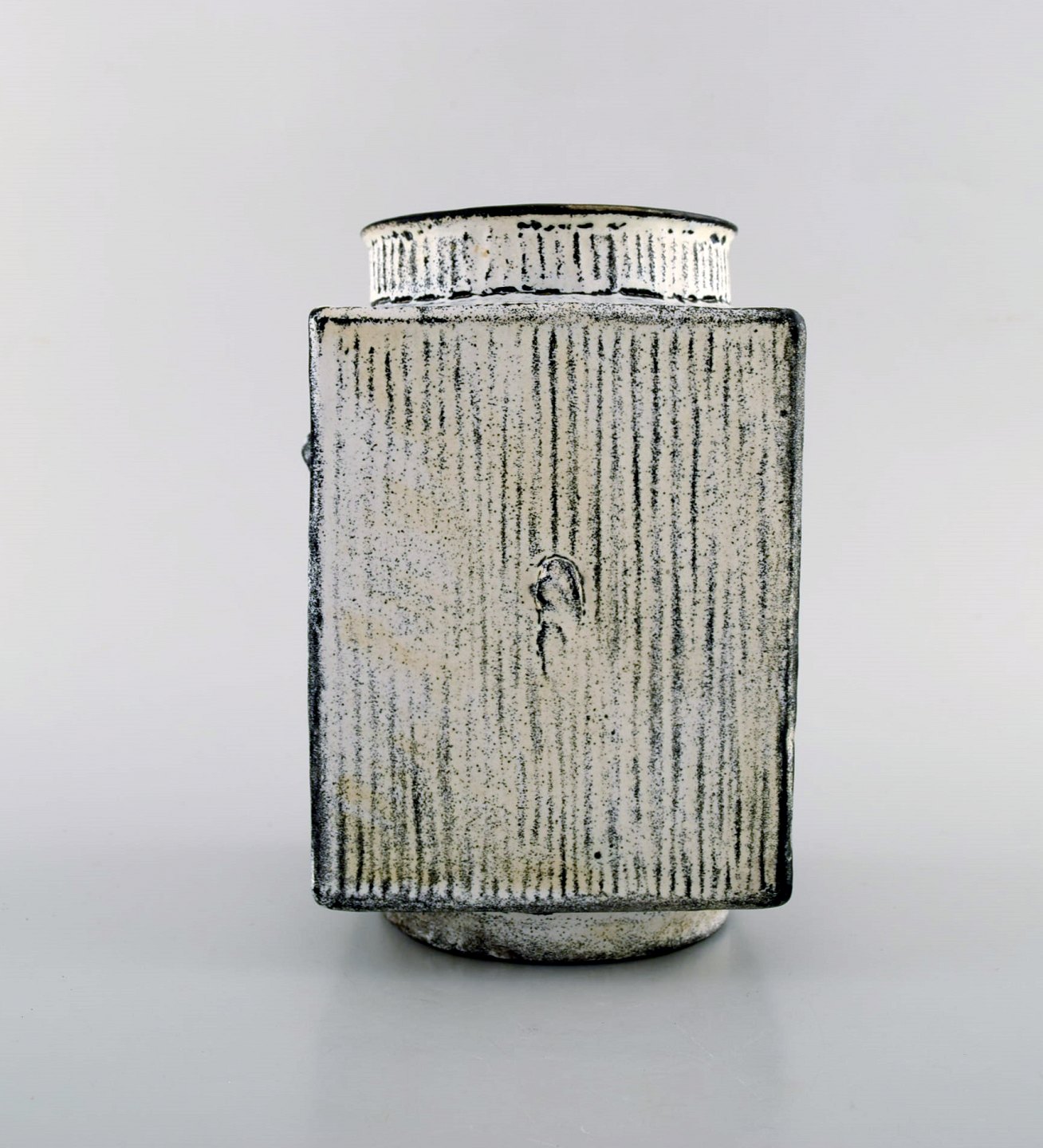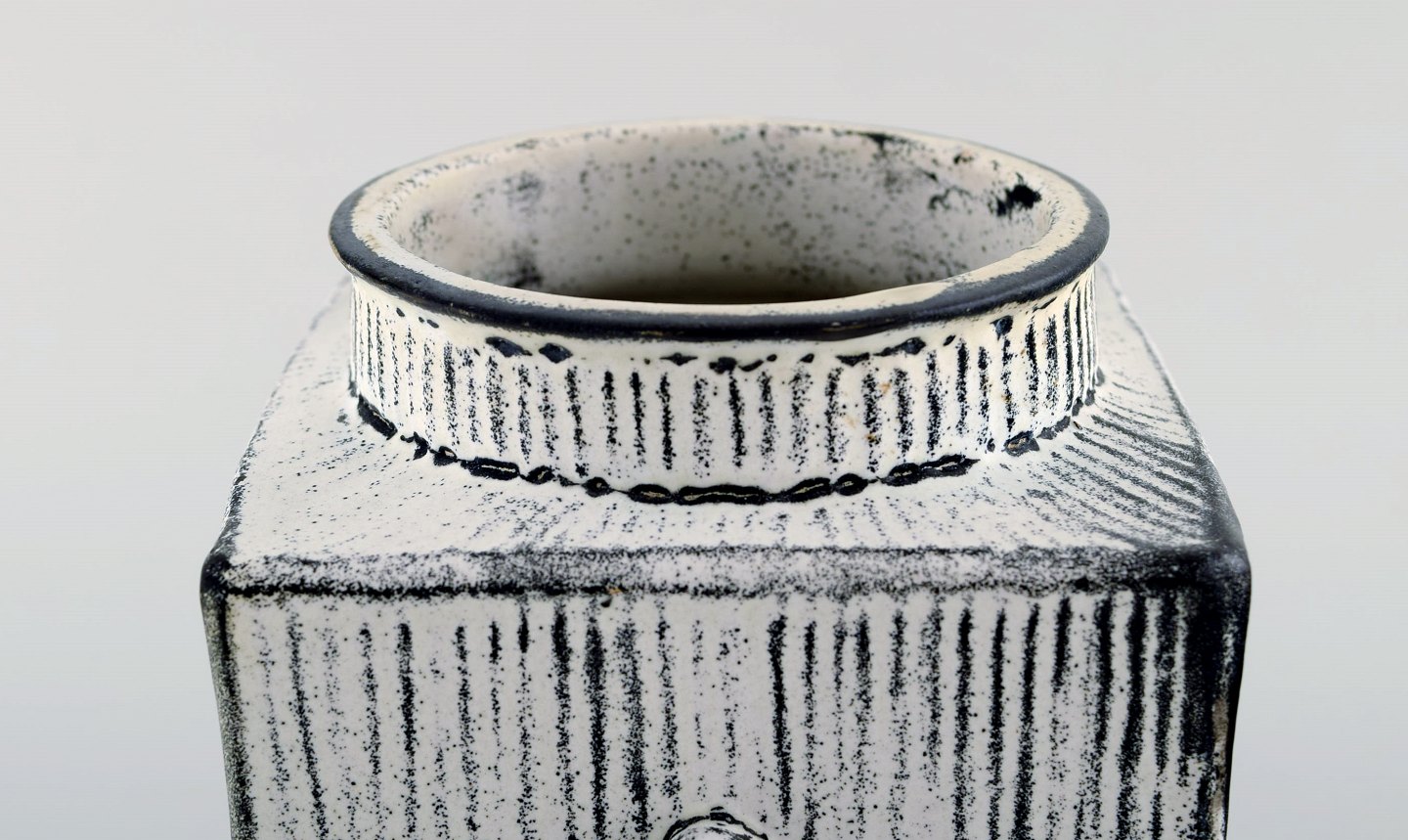 Svend Hammershøi for Kähler, HAK. Vase i glaseret stentøj. Smuk gråsort dobbeltglasur. 1930/40'erne. Måler: 17,5 x 11 cm. Stemplet. I flot stand.