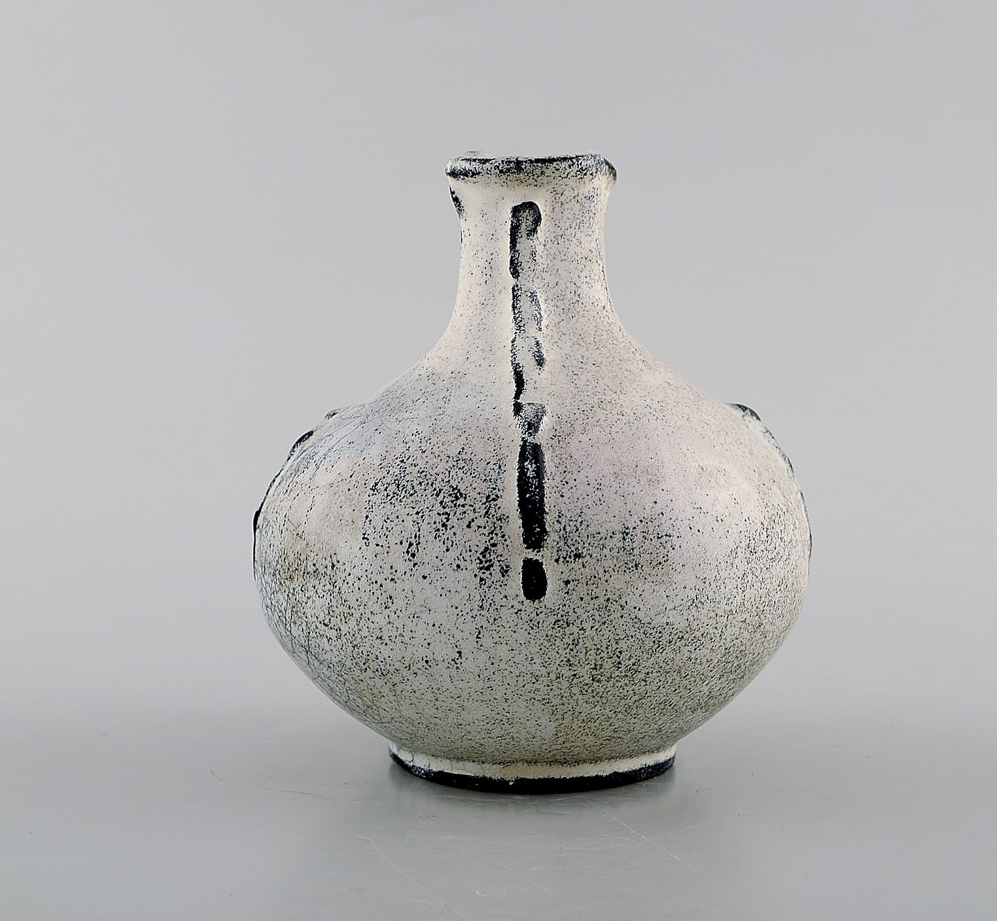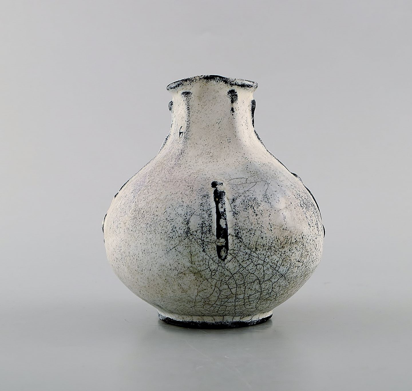 Svend Hammershøi for Kähler, HAK. Vase i glaseret stentøj. Smuk gråsort dobbeltglasur. 1930/40'erne. Måler: 12 x 11 cm. Stemplet. I flot stand.