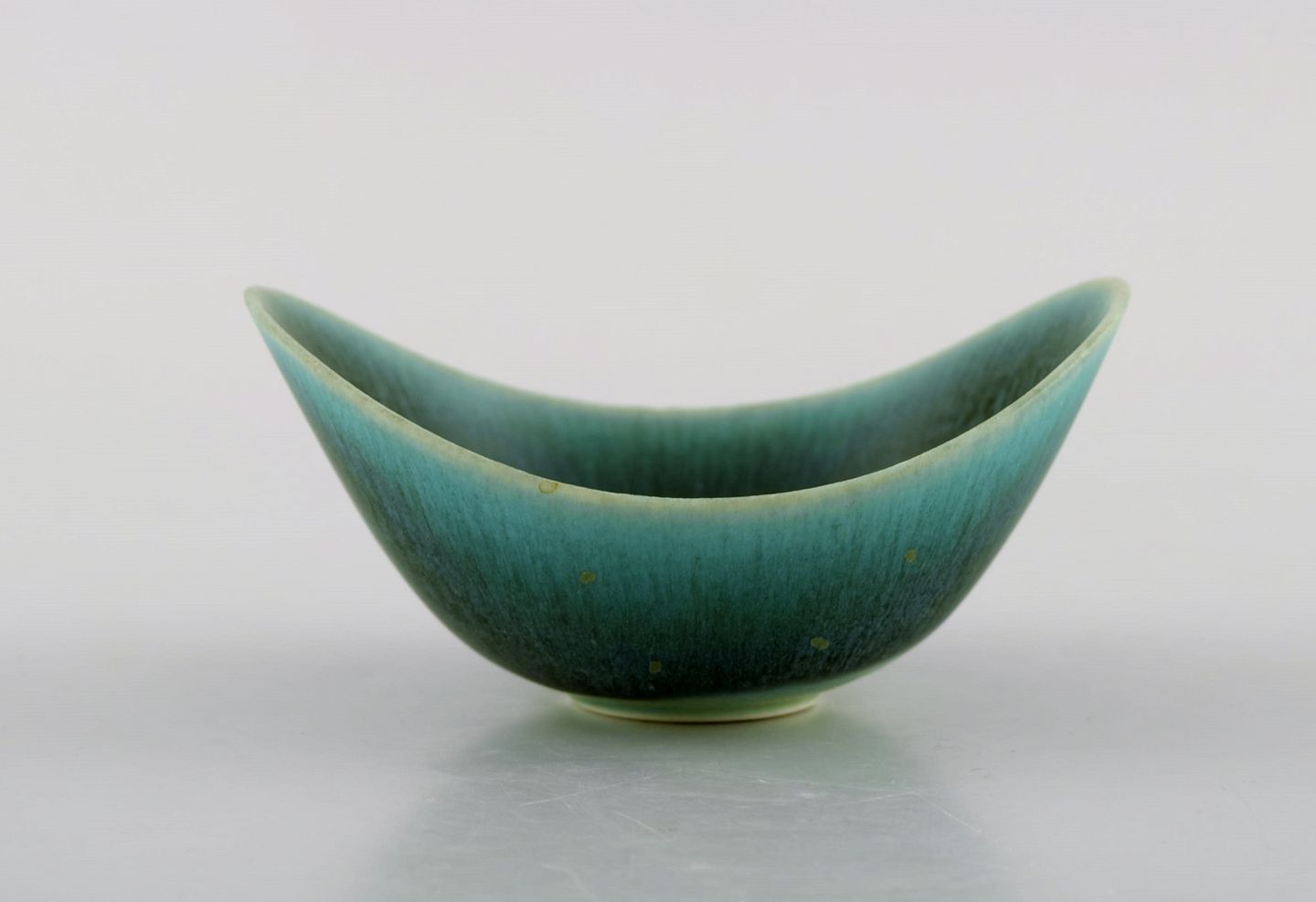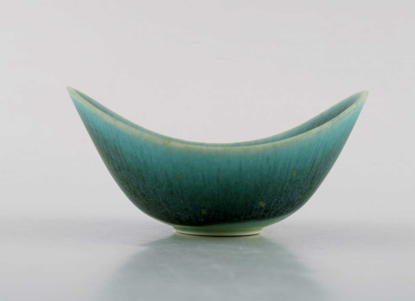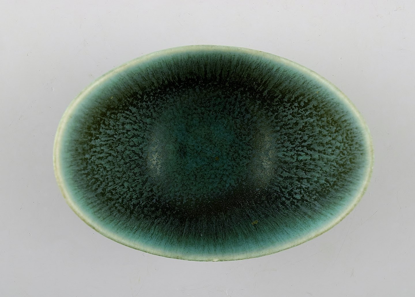 Gunnar Nylund for Rörstrand. Skål i glaseret keramik. Smuk glasur i blågrønne nuancer. 1950/60'erne.