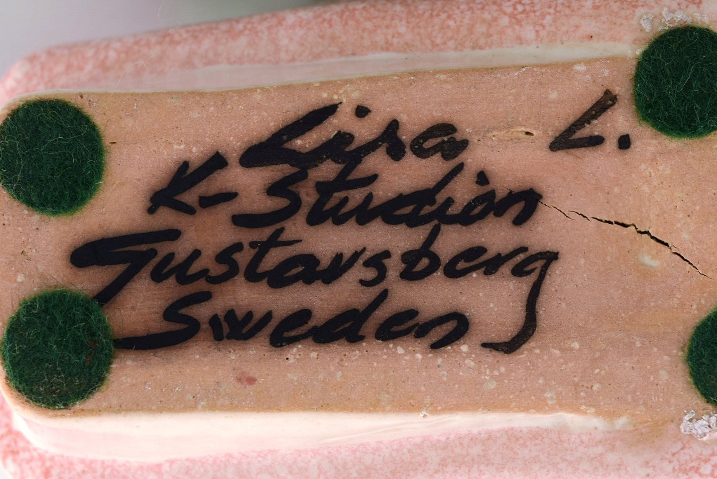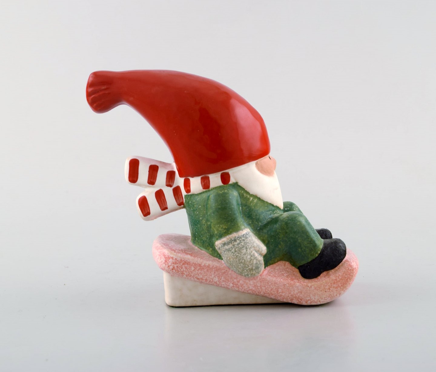 Lisa Larson for Gustavsberg. Candleholder. Elf on a sledge in glazed stoneware. Late 20th century. In very good condition. Signed. Measures: 16 x 10.5 cm.