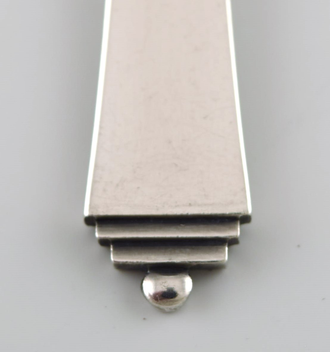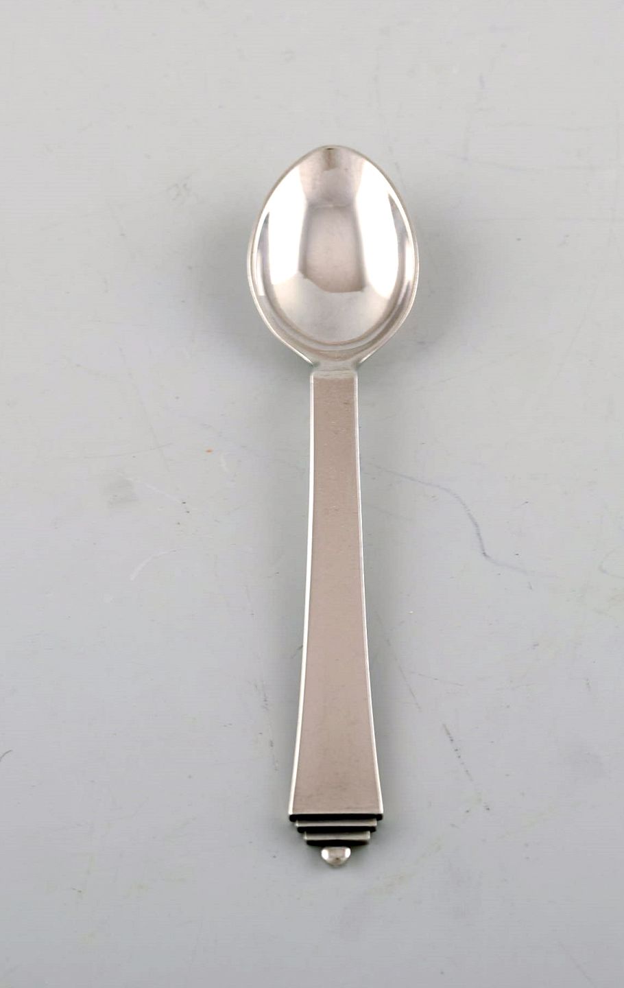 Georg Jensen "Pyramid" coffee spoon in sterling silver. Dated 1933-44. Seven pieces in stock. Designed by Harald Nielsen 1927. In very good condition. Measures: 10.5 cm. Early stamp.