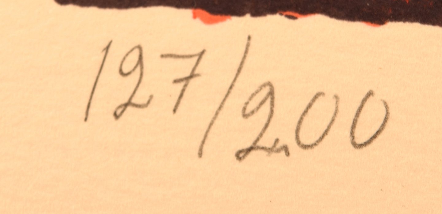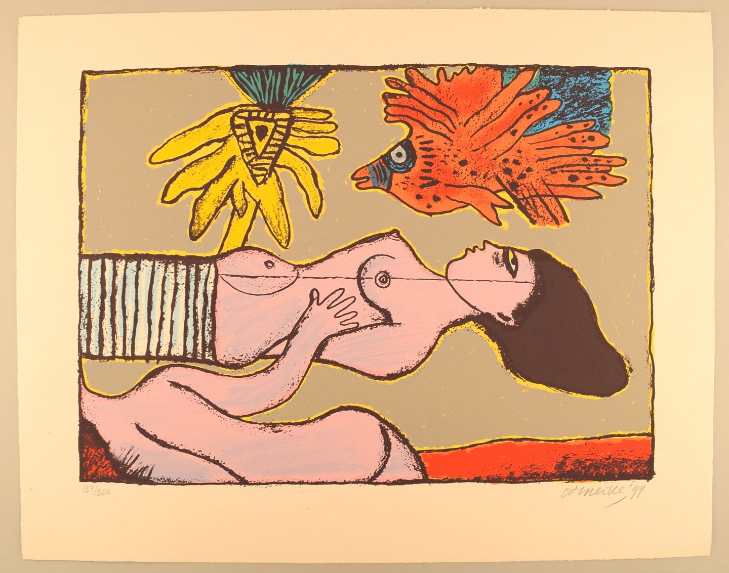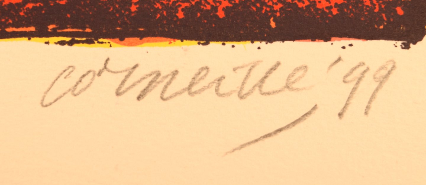 Corneille, Cobrakunstner. Farvelitografi. Dateret 1999. I flot stand. Signeret i blyant. Nummereret og dateret. Lysmål: 54 x 39,5 cm. Totalmål: 66 x 52 cm.