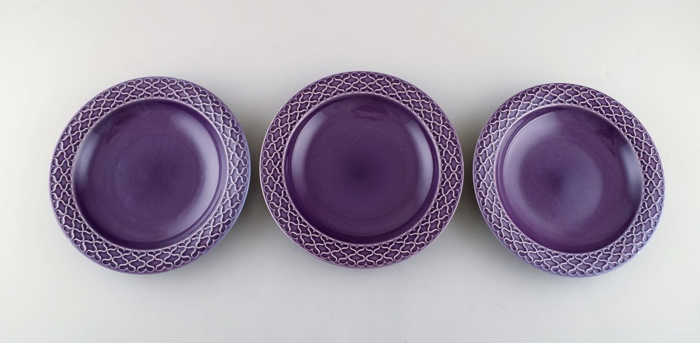 Jens H. Quistgaard for Bing & Grondahl. Three purple "Cordial Palet" soup / pasta plates in glazed stoneware. 1960's. Stamped. In very good condition. 1st factory quality. Measures: 21.5 x 3 cm.