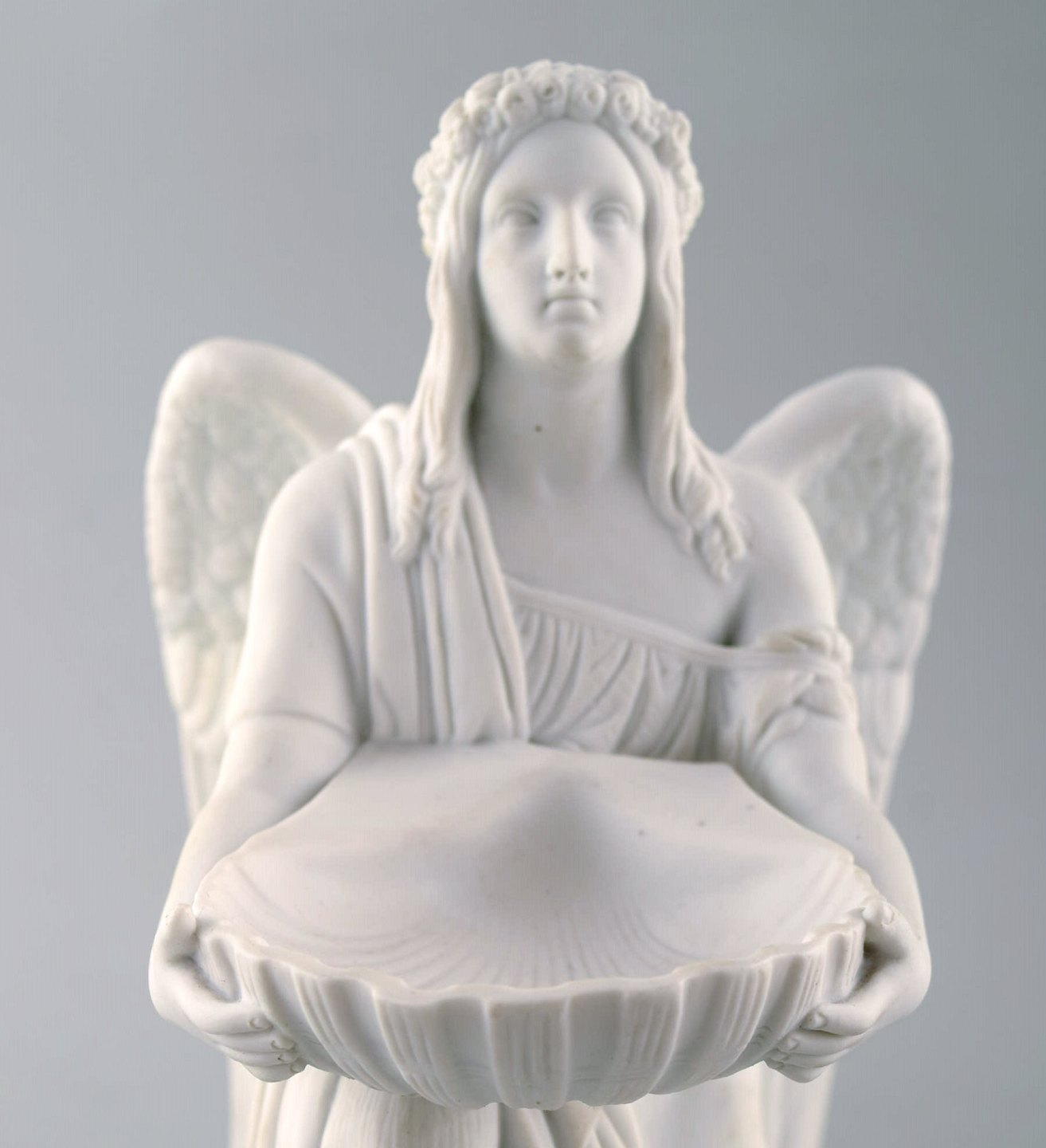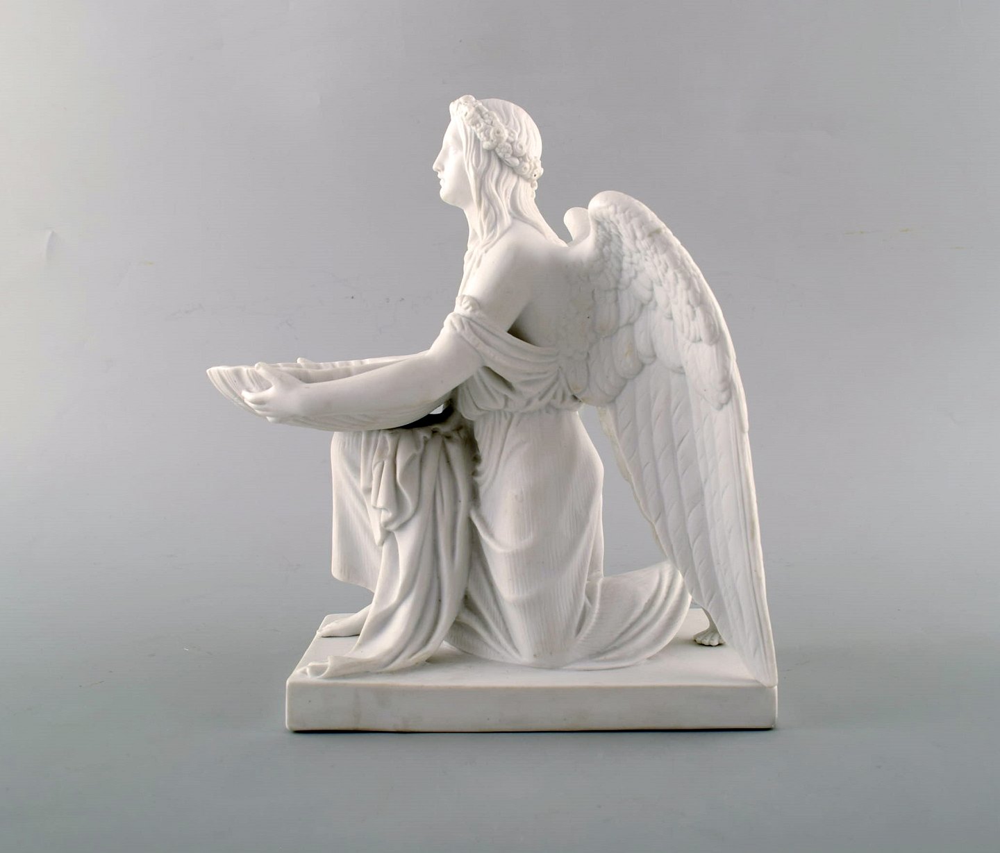 Antique Royal Copenhagen figurine in biscuit. The angel of baptism after Thorvaldsen. 1860-1880. In very good condition. Stamped. Measures: 21 x 12 cm. 23 cm tall.