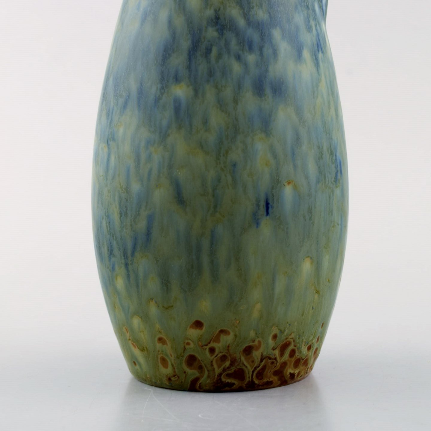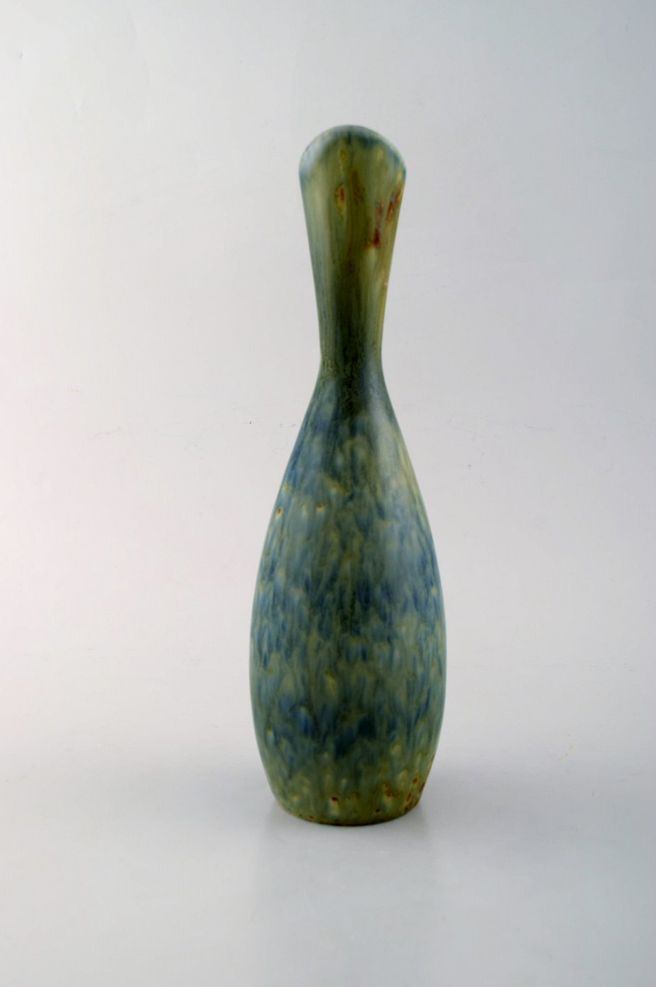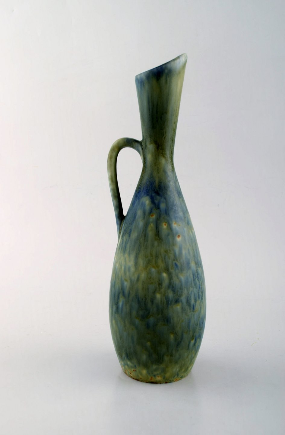 Carl-Harry Stålhane for Rörstrand. Vase med hank i glaseret stentøj. Smuk glasur i blå og grønne nuancer. 1960'erne. I flot stand. 2. Sortering Stemplet. Måler: 26,5 x 8 cm.