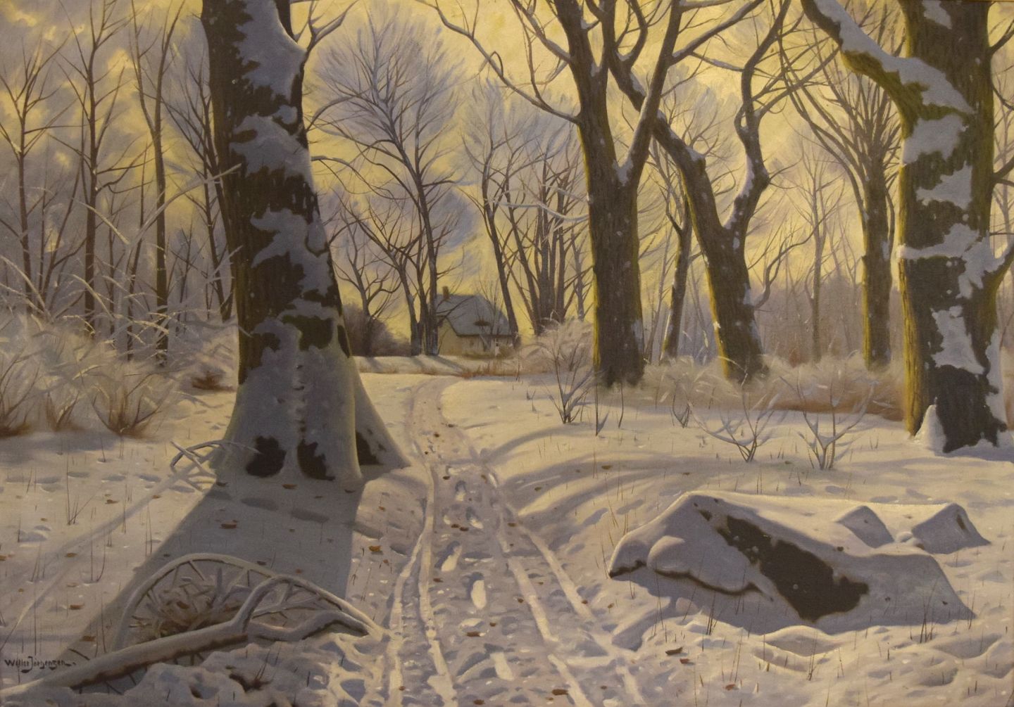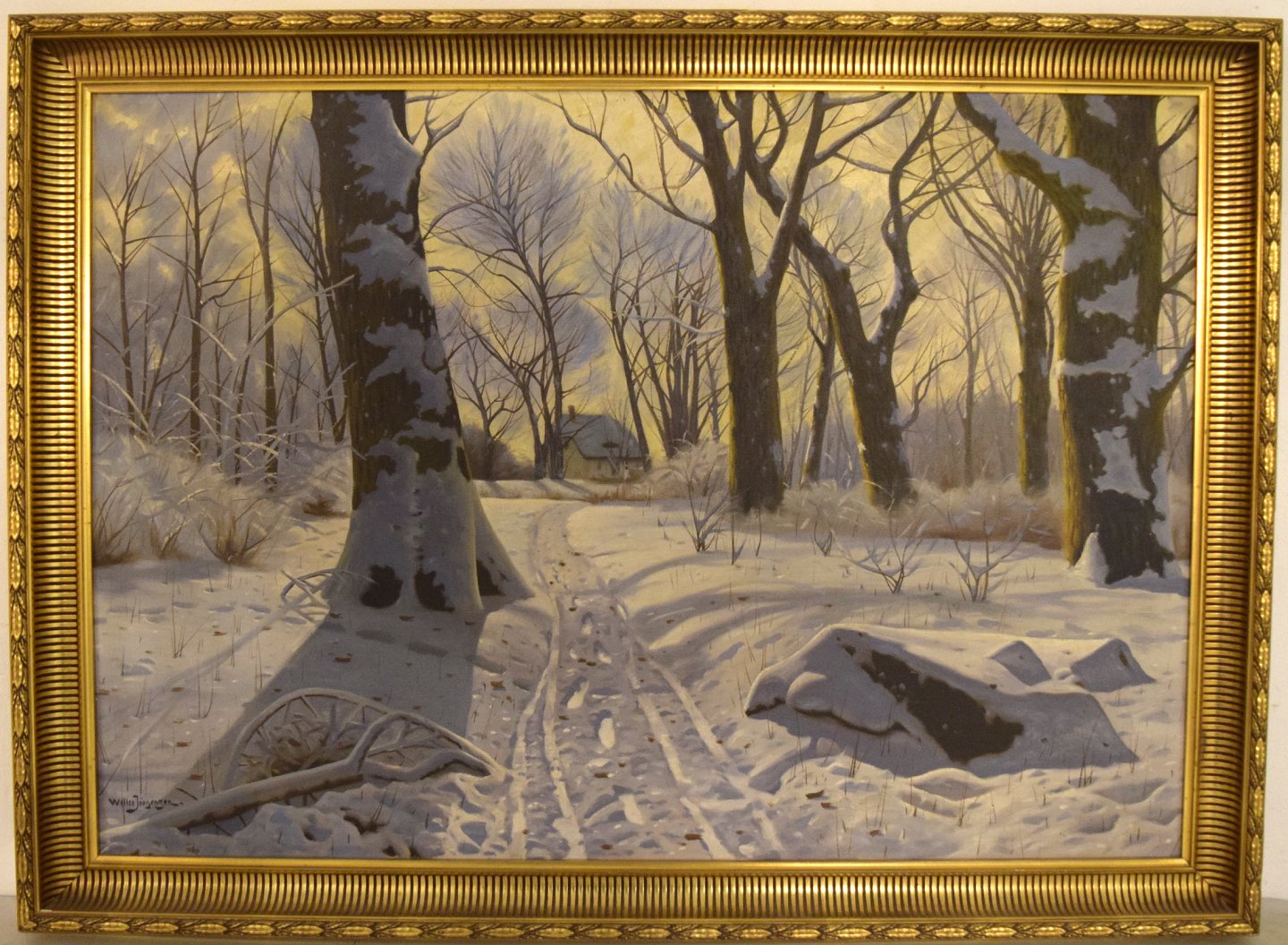 Willer Jørgensen (1897-1956). Winter Landscape. Oil on canvas. In very good condition. Signed. Canvas measures: 98 x 69 cm. The frame measures: 6.5 cm.