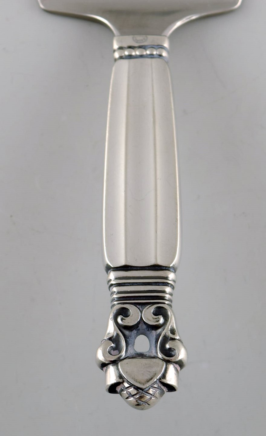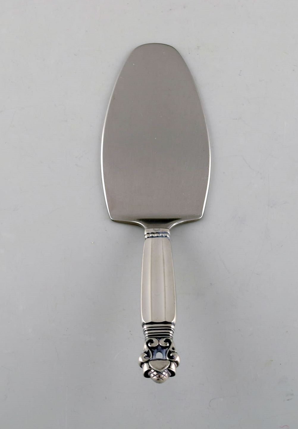 Georg Jensen "Konge" serveringsspade i sterlingsølv og rustfrit stål. Designer: Johan Rohde. Længde: 16,3 cm. Stemplet. I flot stand.