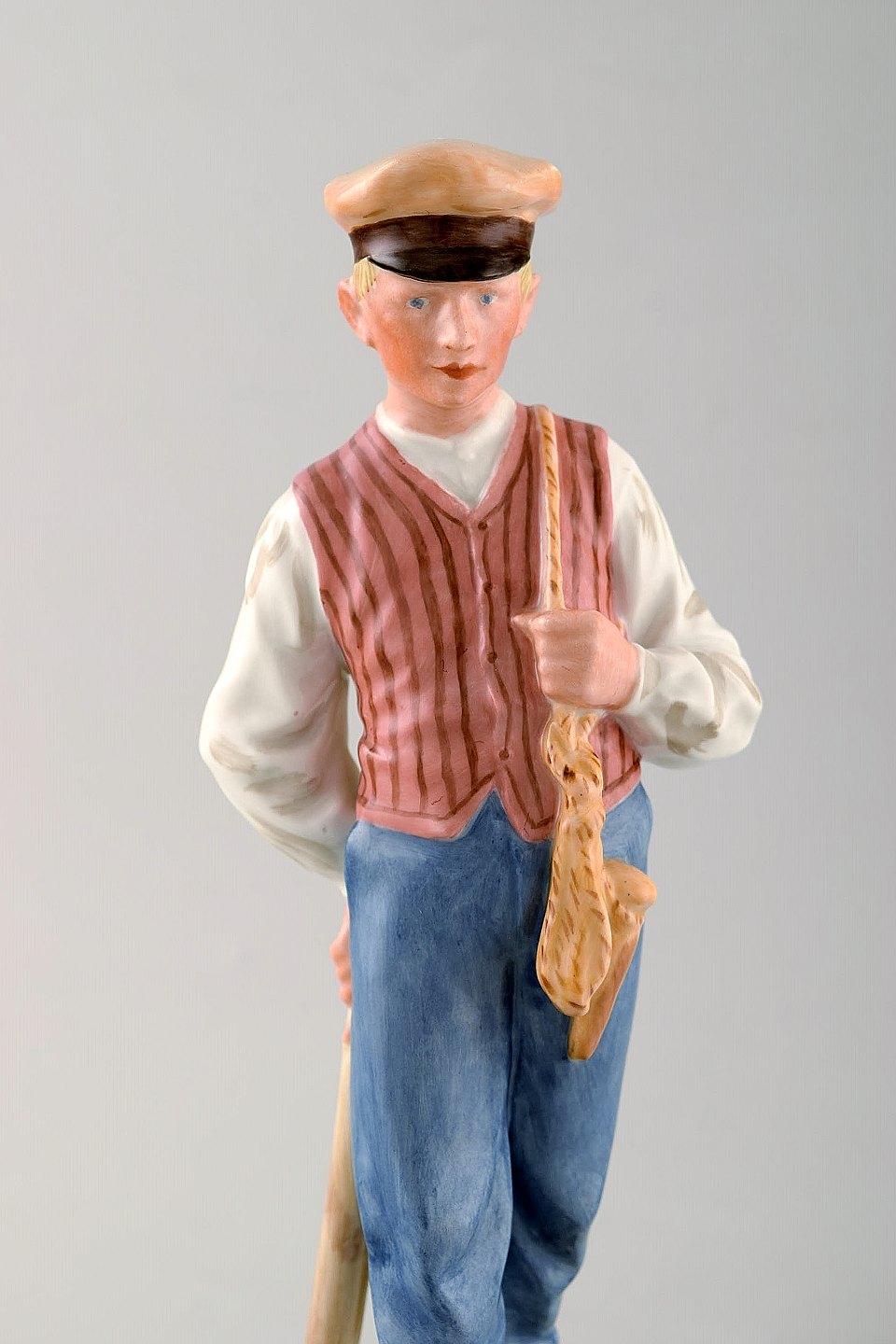 Royal Copenhagen porcelænsfigur i overglasur. Bonde- / Vogterdreng med lægtehammer. Modelnummer: 620. Højde: 22 cm. I flot stand. Stemplet. 1. Sortering.