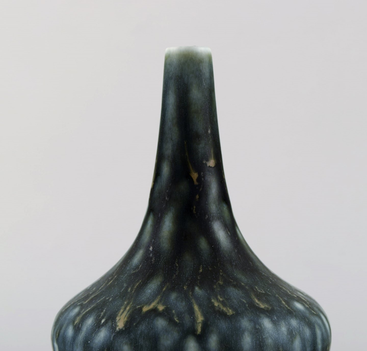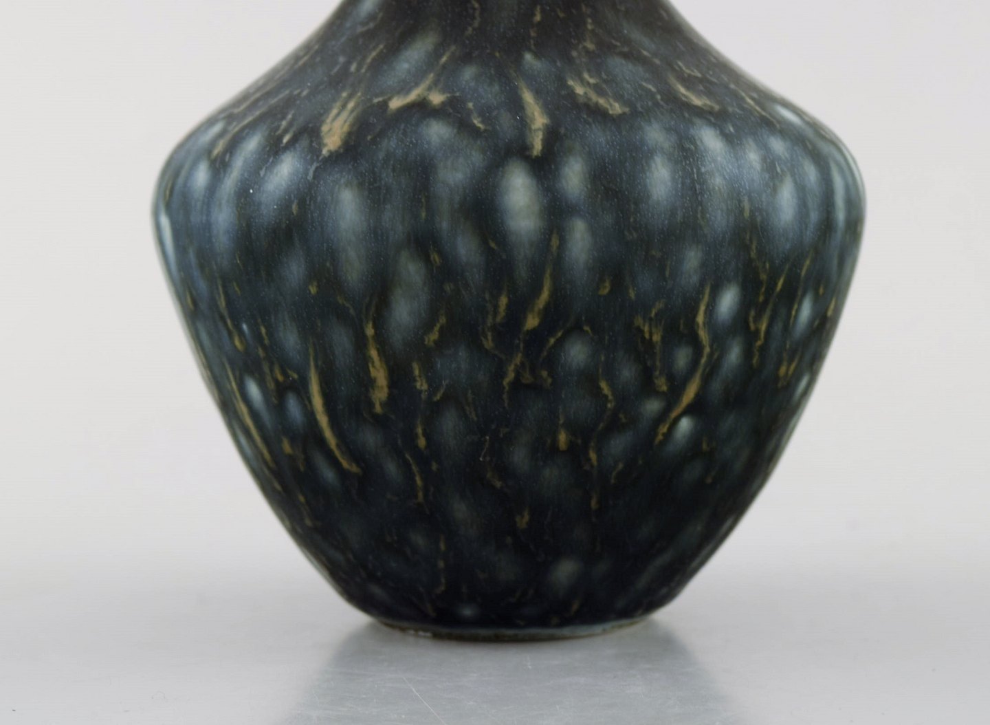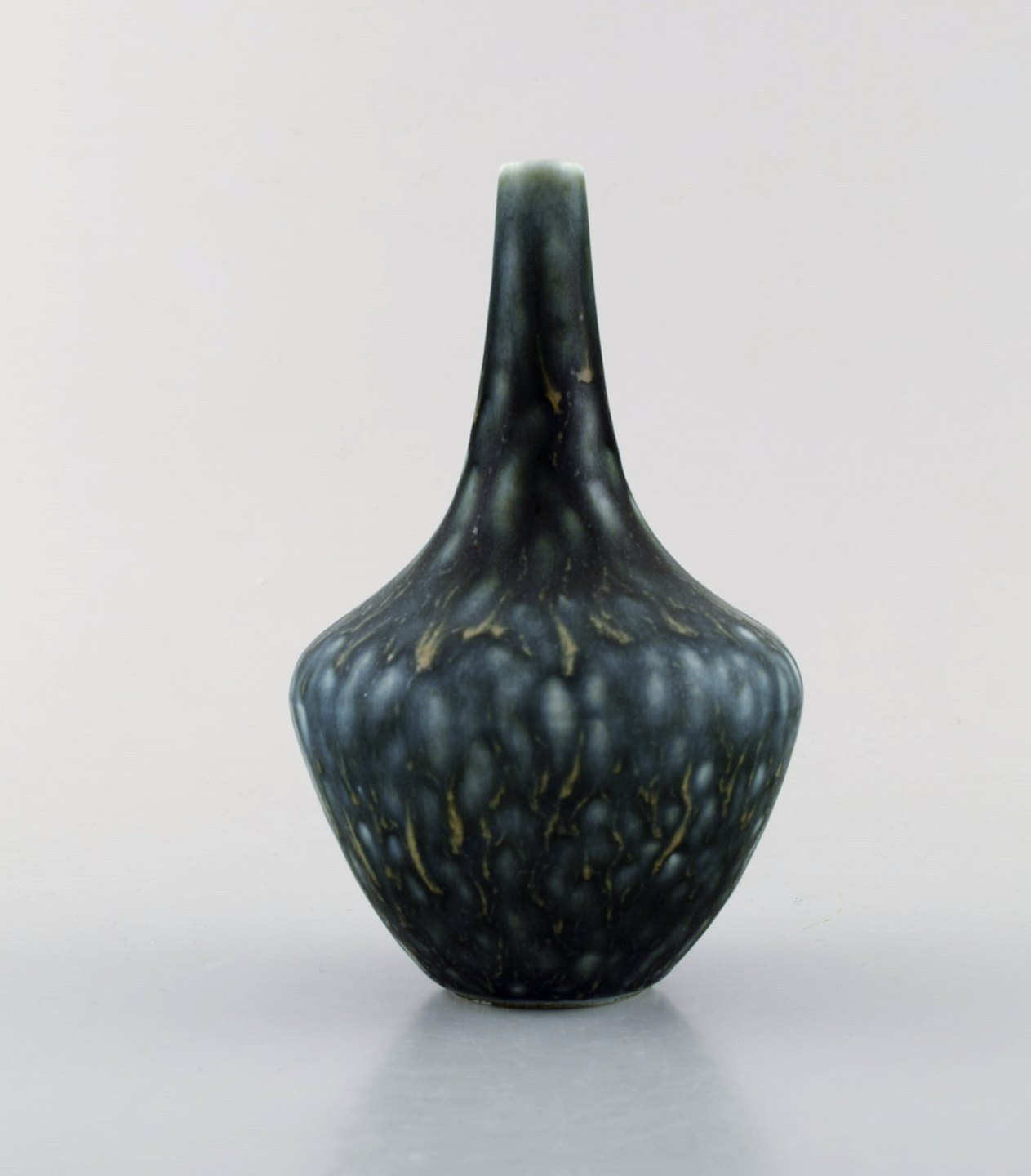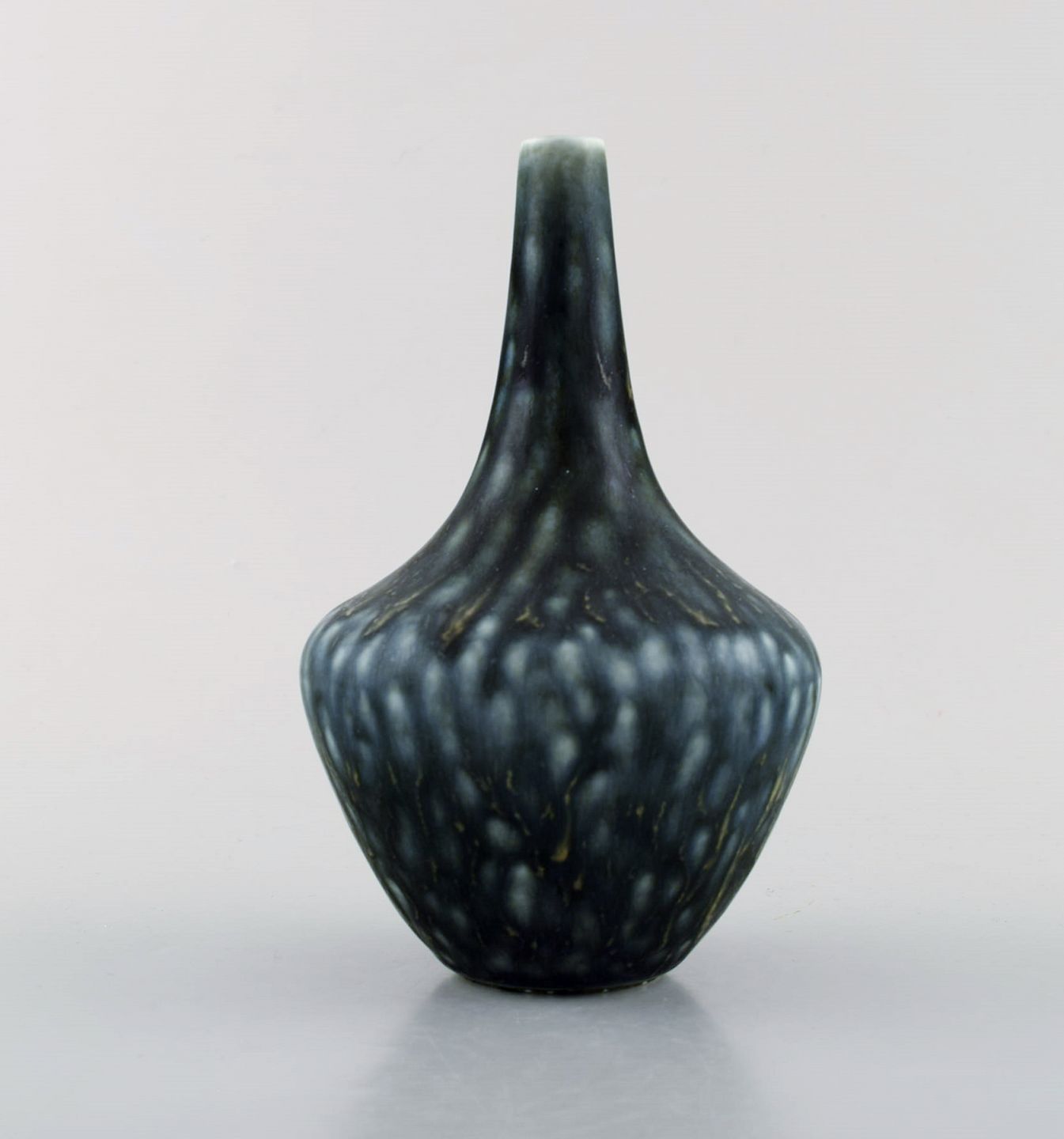 Gunnar Nylund for Rörstrand. Vase i glaseret stentøj. Smuk glasur i mørke og lyseblå nuancer. 1960'erne. I flot stand. 2. Sortering Stemplet. Måler: 16 x 10,5 cm.