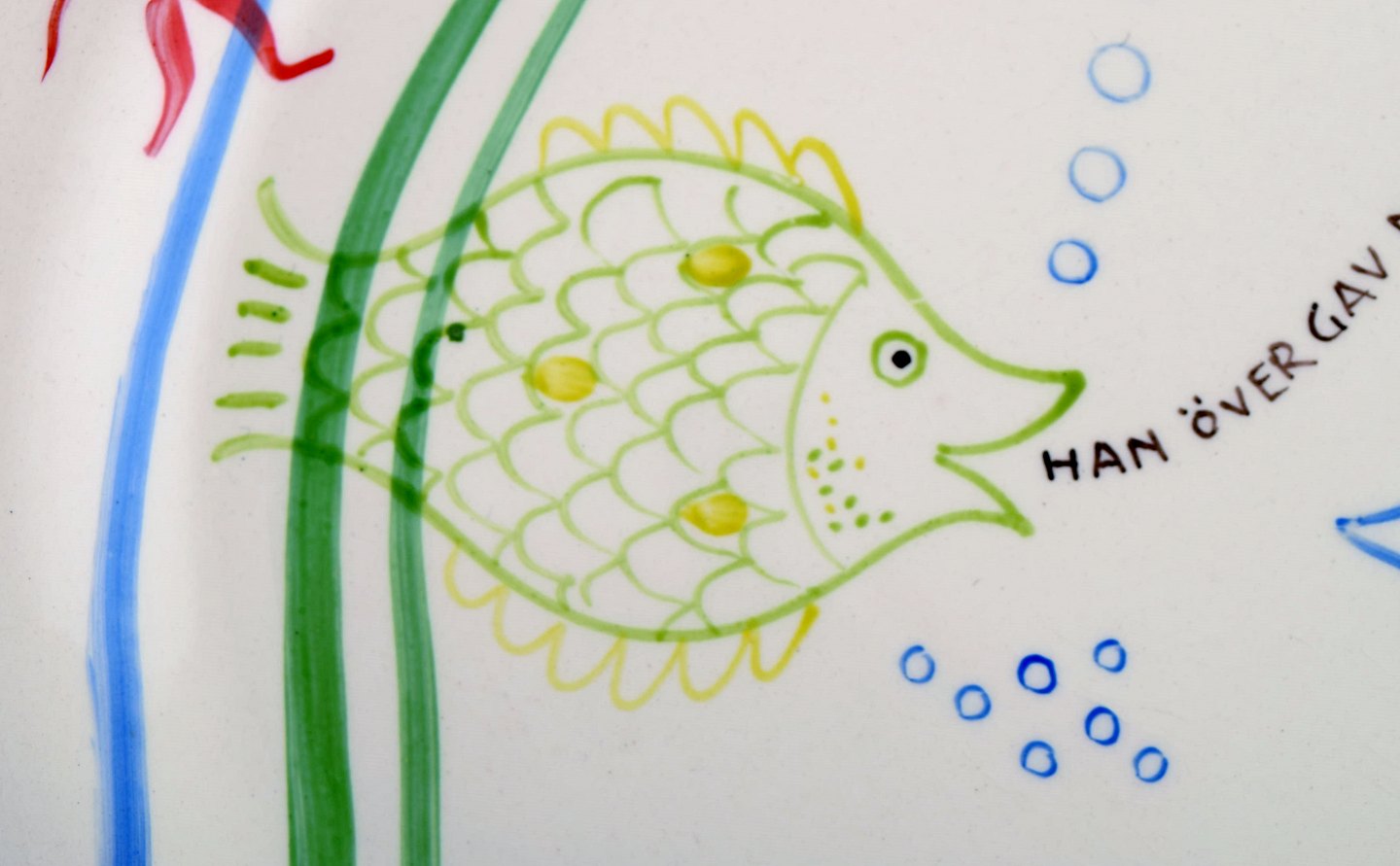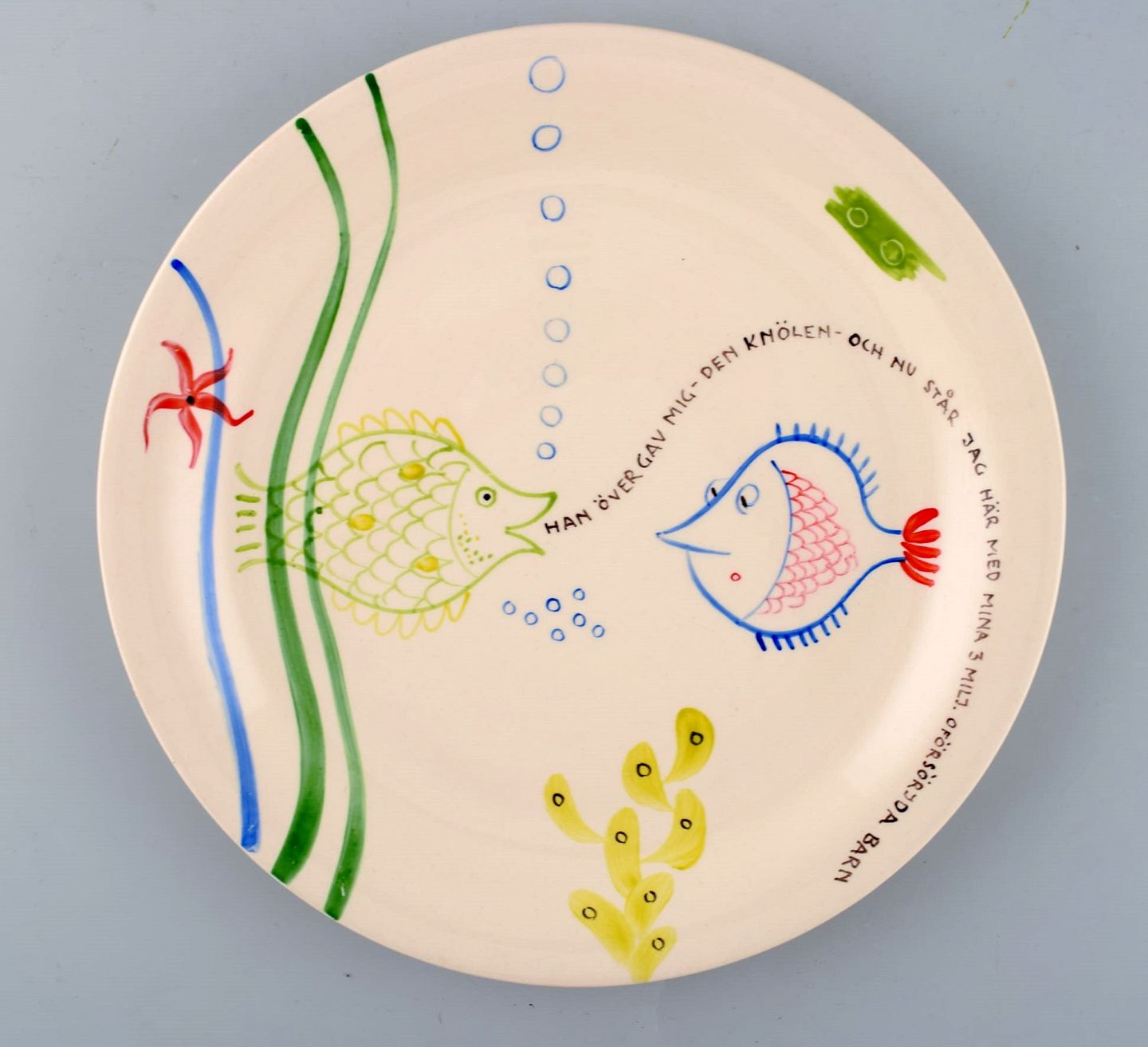 Stig Lindberg for Gustavsberg. "Löja" tallerken. Håndmalet med fiskemotiver. 1950'erne. I perfekt stand. Måler: 24,5 cm. Signeret.