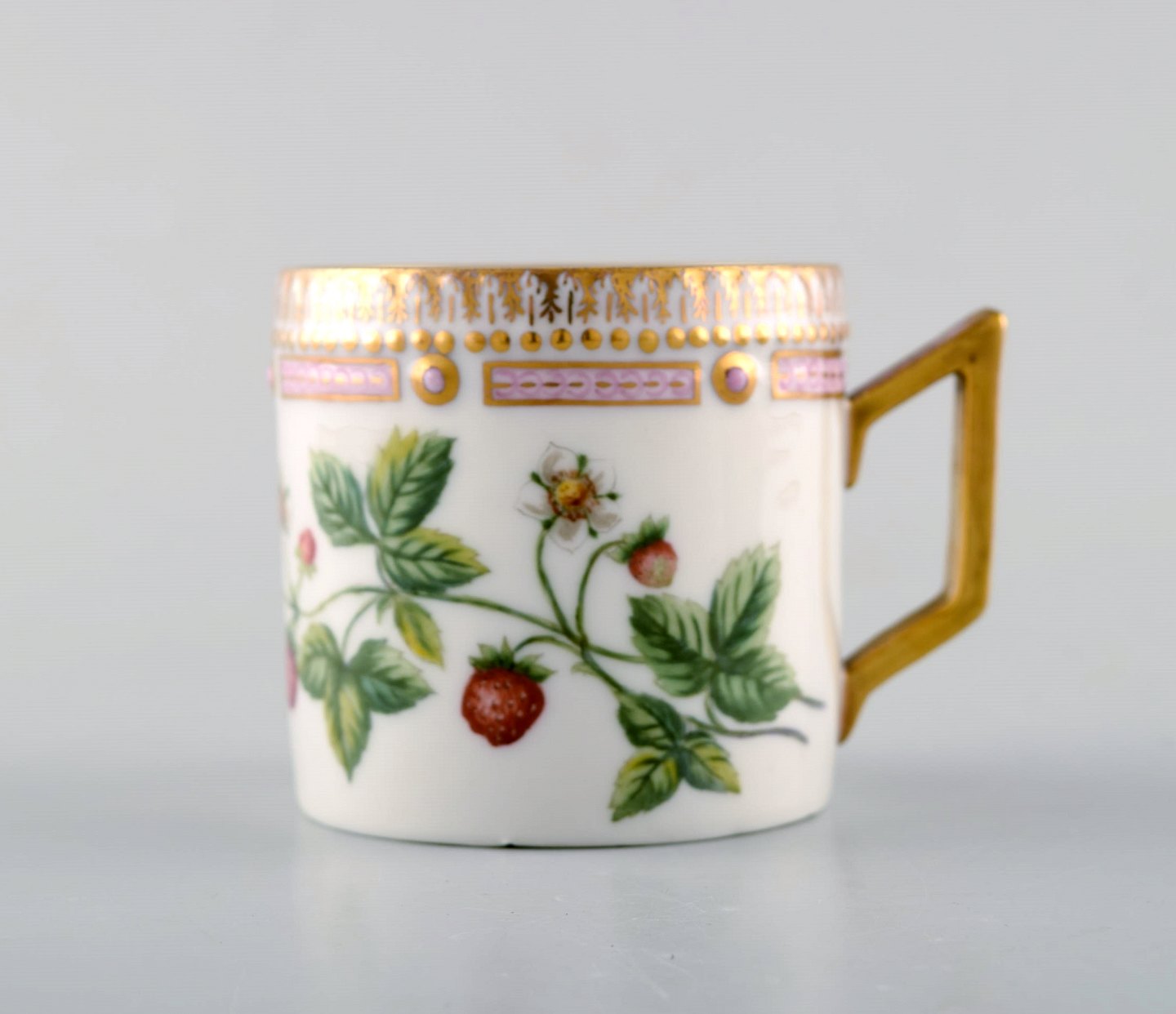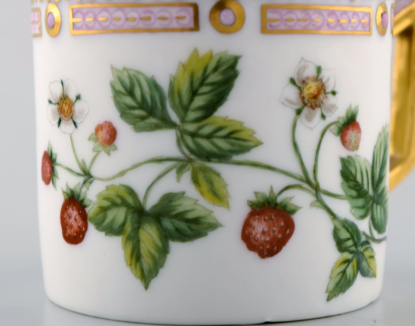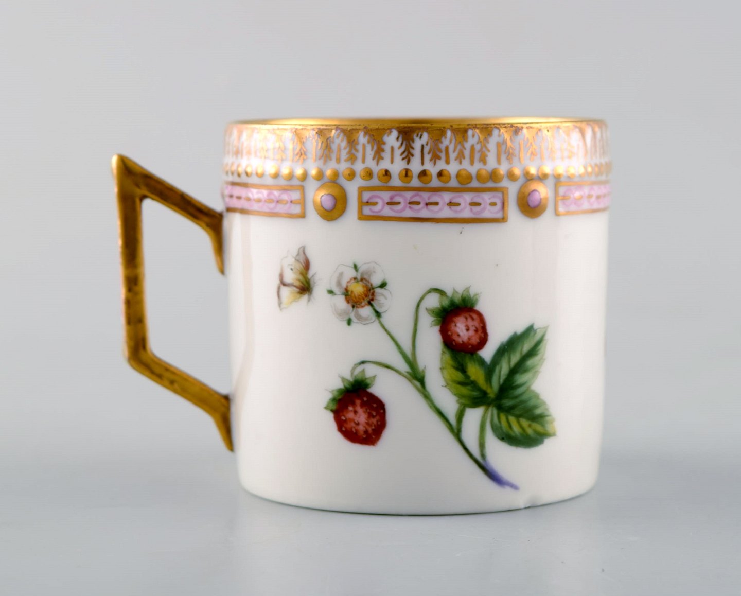 Royal Copenhagen flora danica chocolate cup with saucer. Strawberry. The cup measures: 6.5 x 6.5 cm. The saucer measures: 14 x 3 cm. 2nd factory quality. In perfect condition. Stamped.