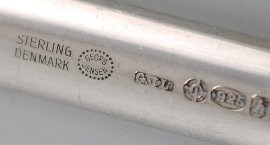 Magnus Stephensen for Georg Jensen. Sjælden modernistisk "Fregat" hummergaffel i sterlingsølv. Måler: 19,7 cm. I flot stand. Stemplet. Georg Jensen med importstempler.