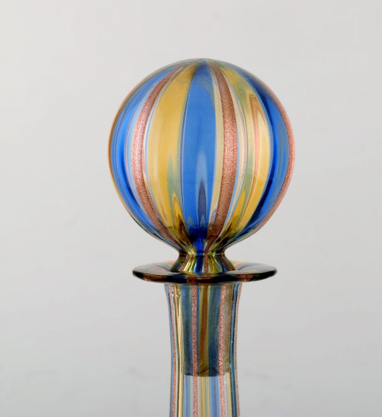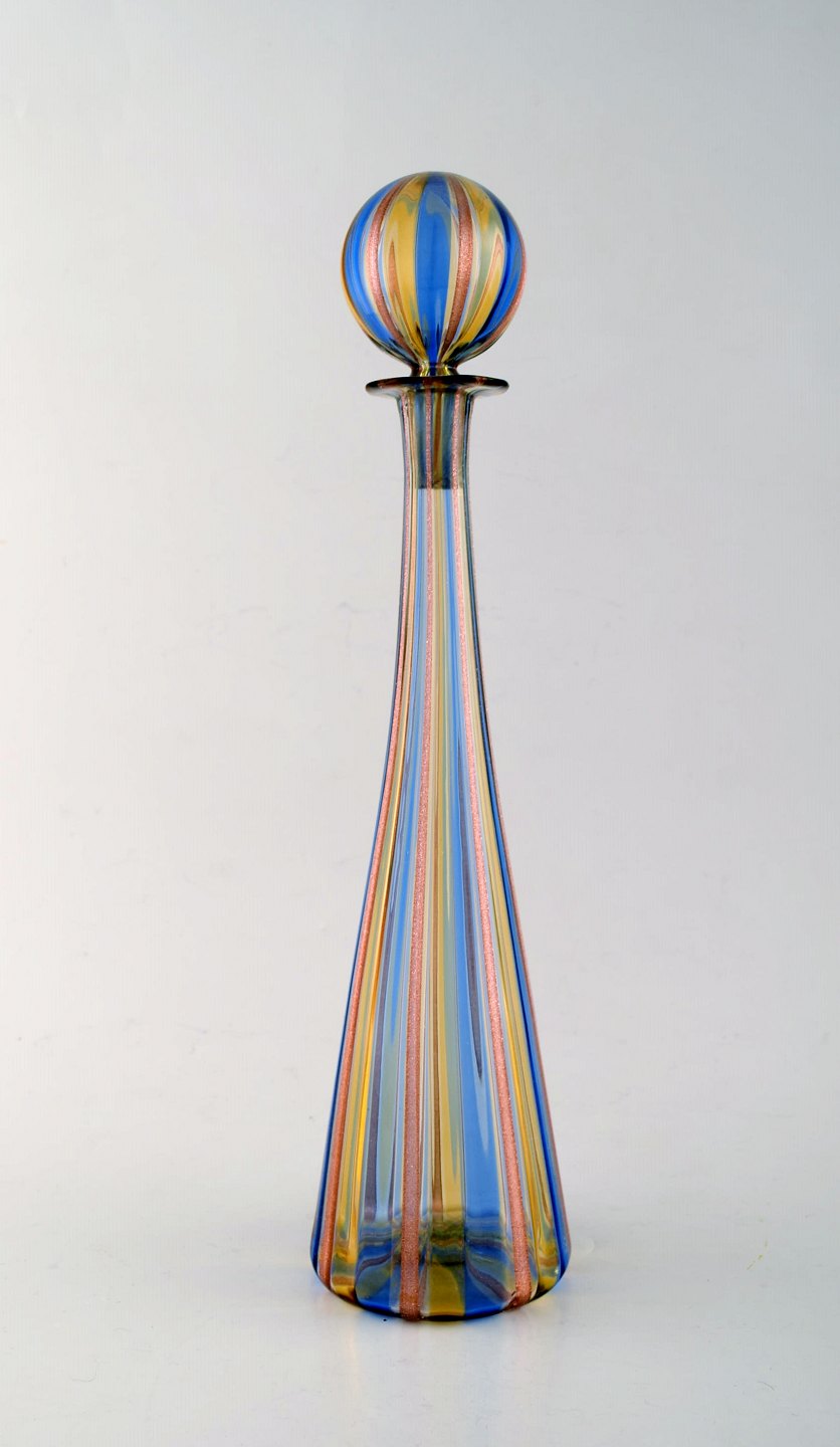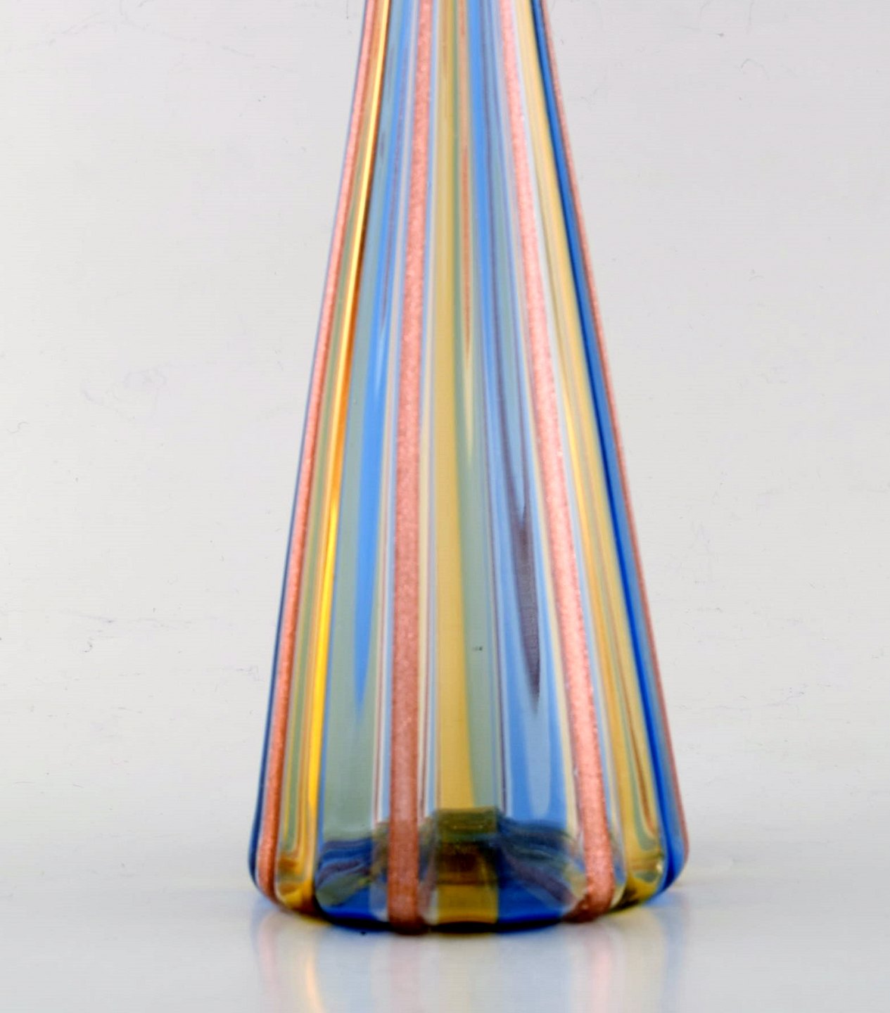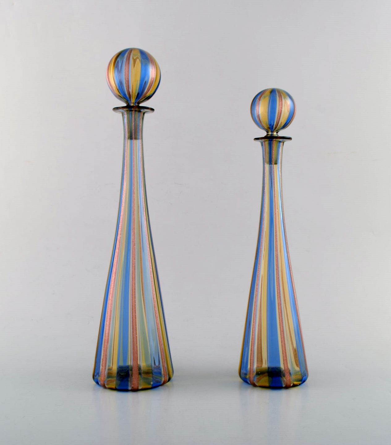 Gio Ponti for Murano / Venini. To karafler i farverigt mundblæst kunstglas. 1960'erne. I flot stand. Største måler: 34,5 x 13,5 cm.