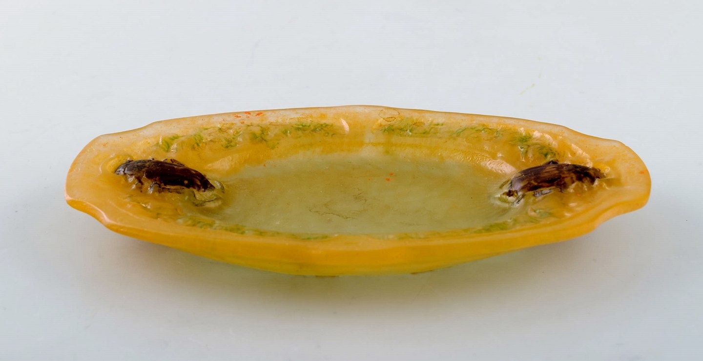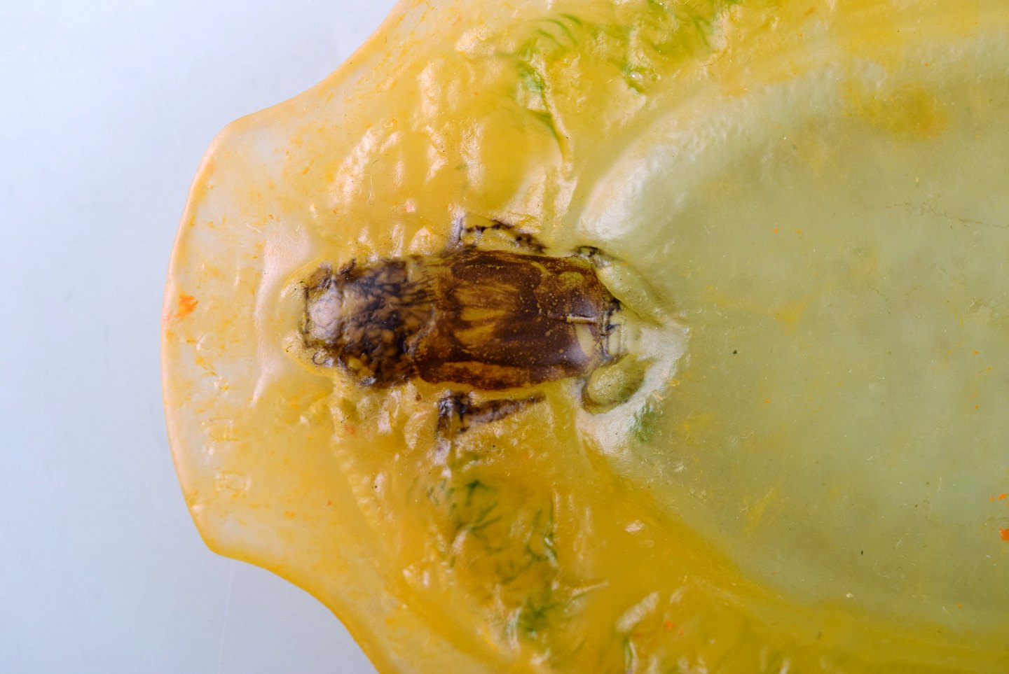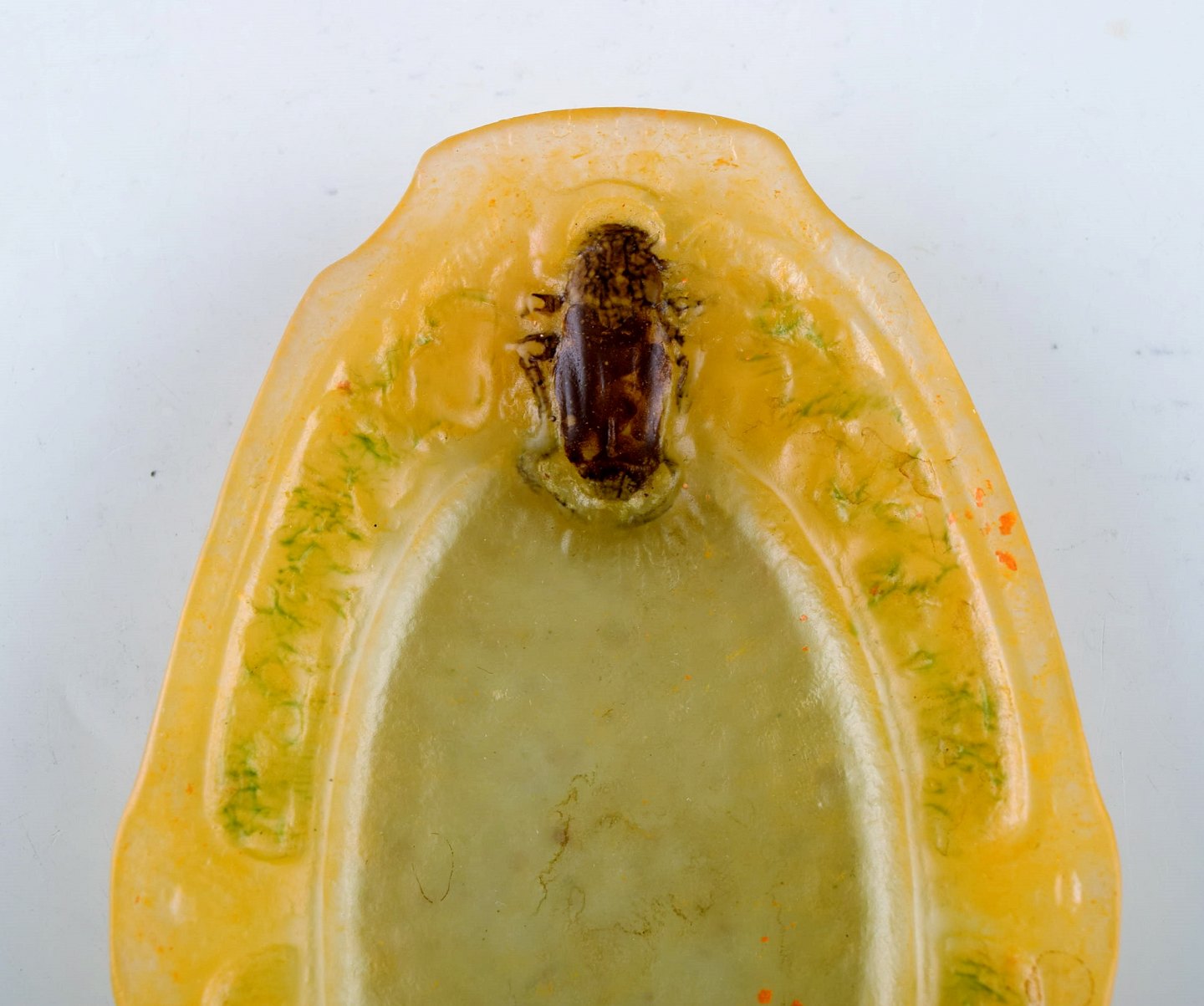 Amalric Walter (1870-1959) for Nancy. Early art nouveau pāte-de-verre bowl decorated with beetles. Museum quality, approx. 1920. In very good condition. Signed. Measures: 16.5 x 9.5 cm.