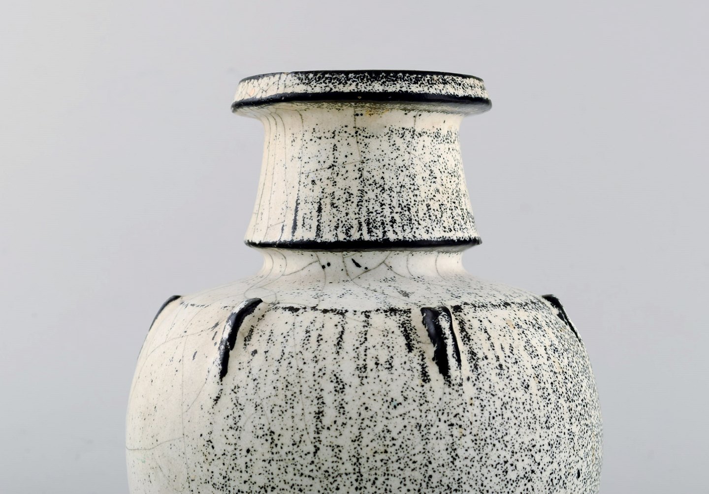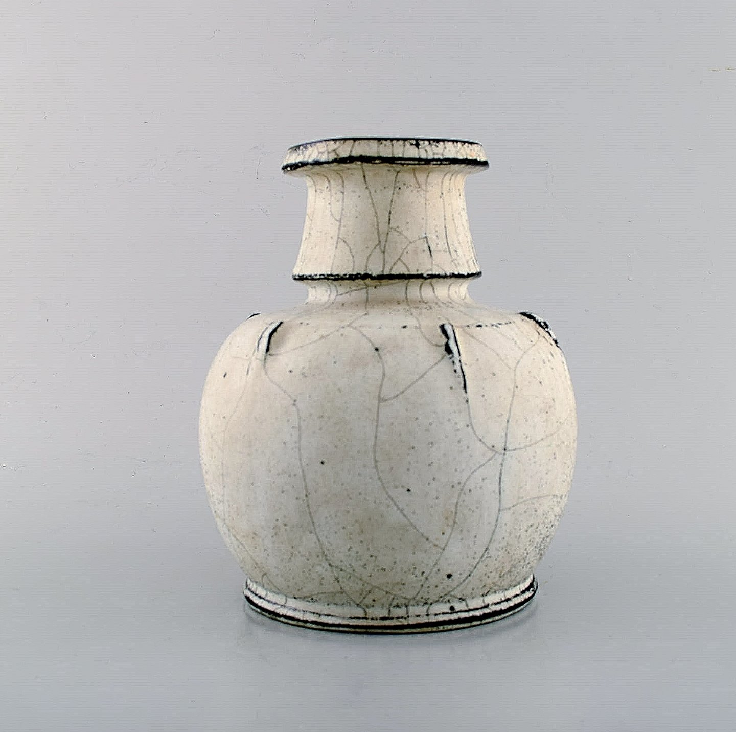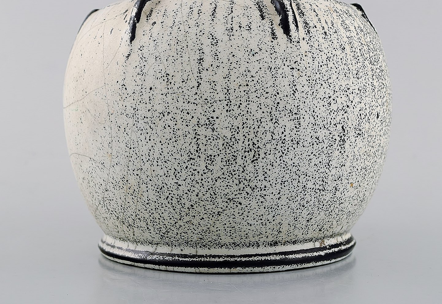 Svend Hammershøi for Kähler, HAK. Vase i glaseret stentøj. Smuk gråsort dobbeltglasur. 1930/40'erne. Stemplet. I flot stand. Måler: 18,5 x 16,5 cm.