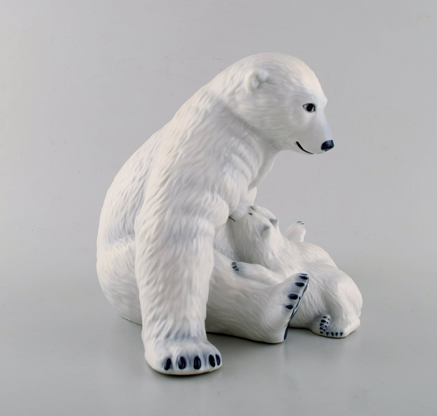 Allan Therkelsen for Royal Copenhagen. Rare porcelain figurine model 087. Polar bear mother with cubs. In perfect condition. Stamped. Measures: 25 x 20 cm.