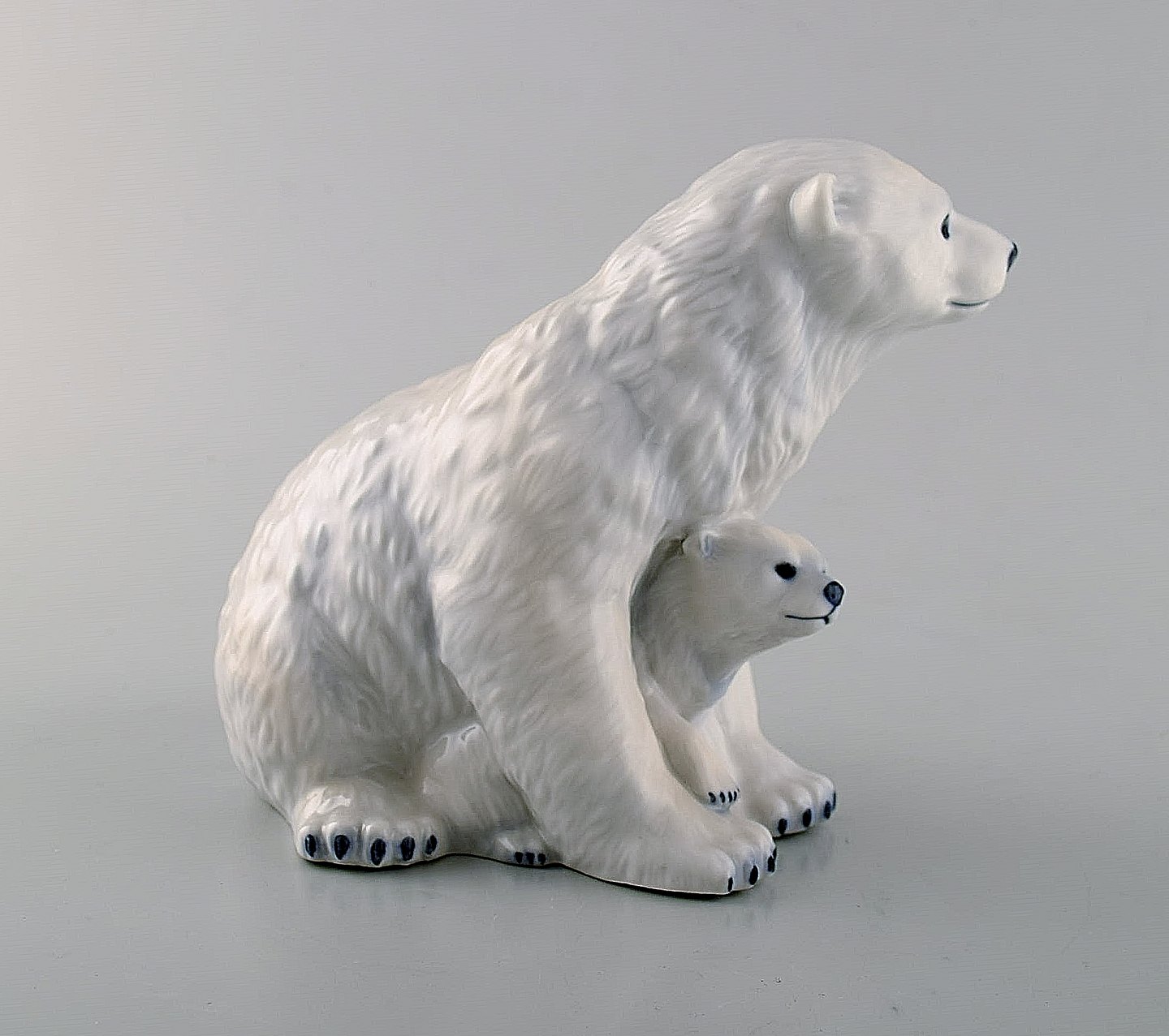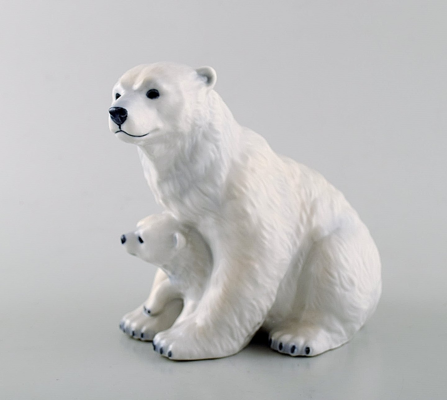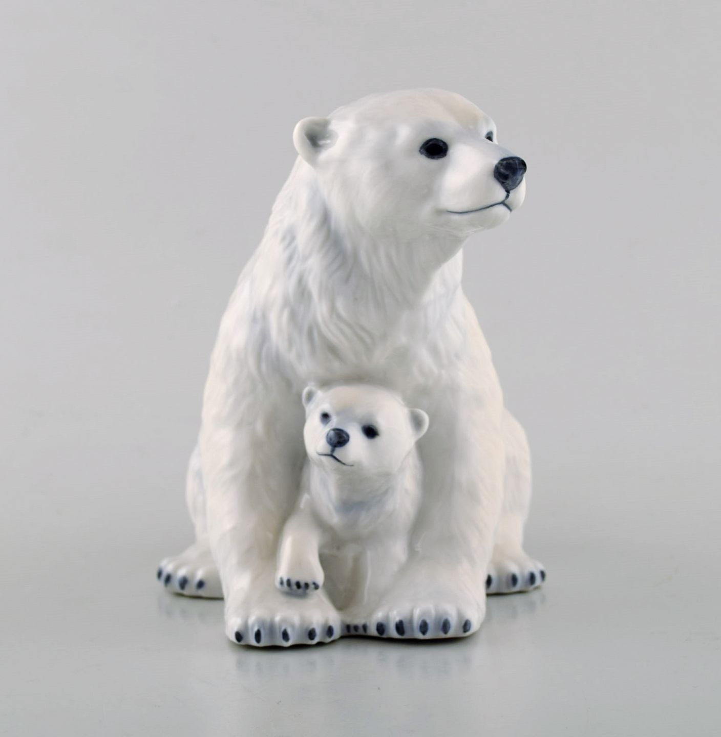 Allan Therkelsen for Royal Copenhagen. Sjælden porcelænsfigur model 353. Isbjørnemor med unge. I perfekt stand. Stemplet. Måler: 16,5 x 13 cm.