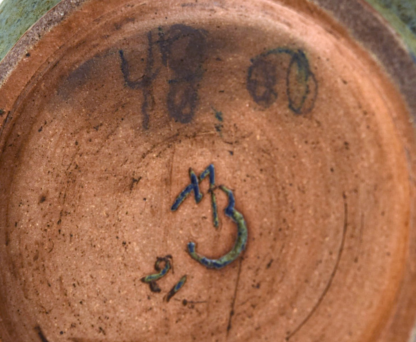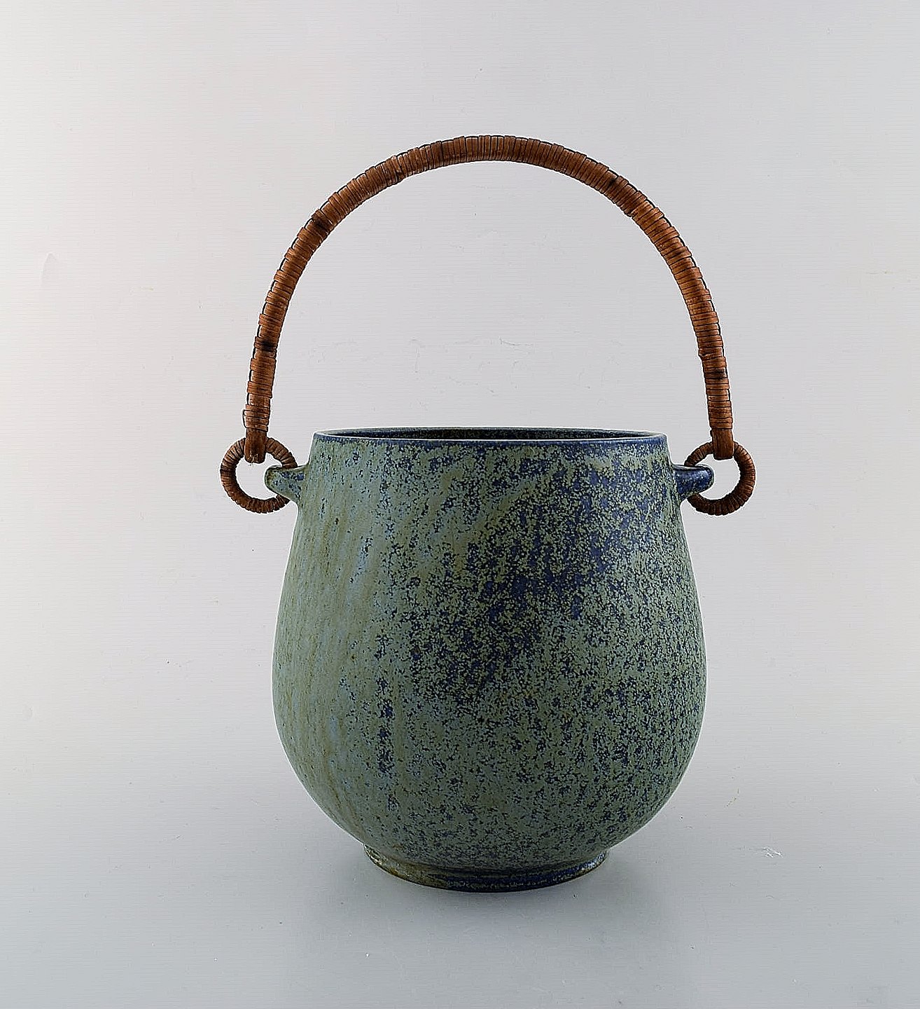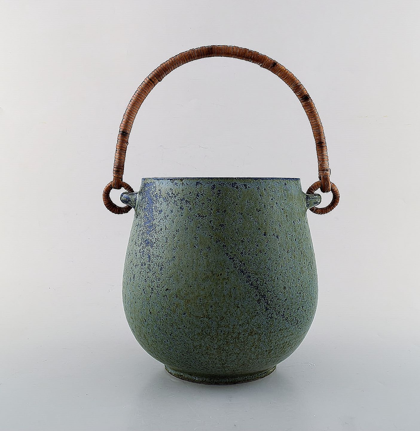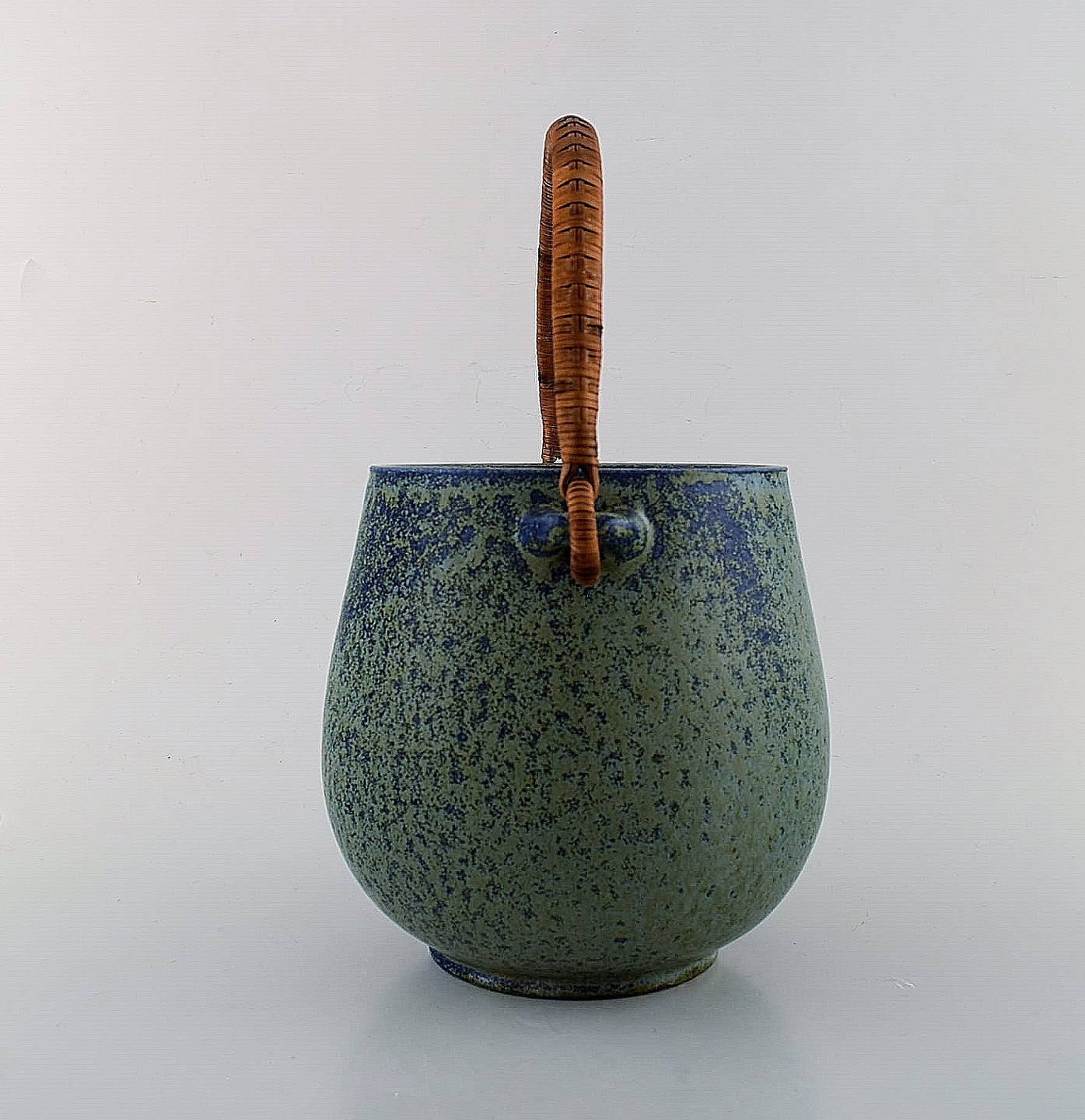 Arne Bang ceramic ice bucket. Stamped AB. Glaze in shades of blue. In perfect condition. Measures: 17.5 x 15.5 cm.
