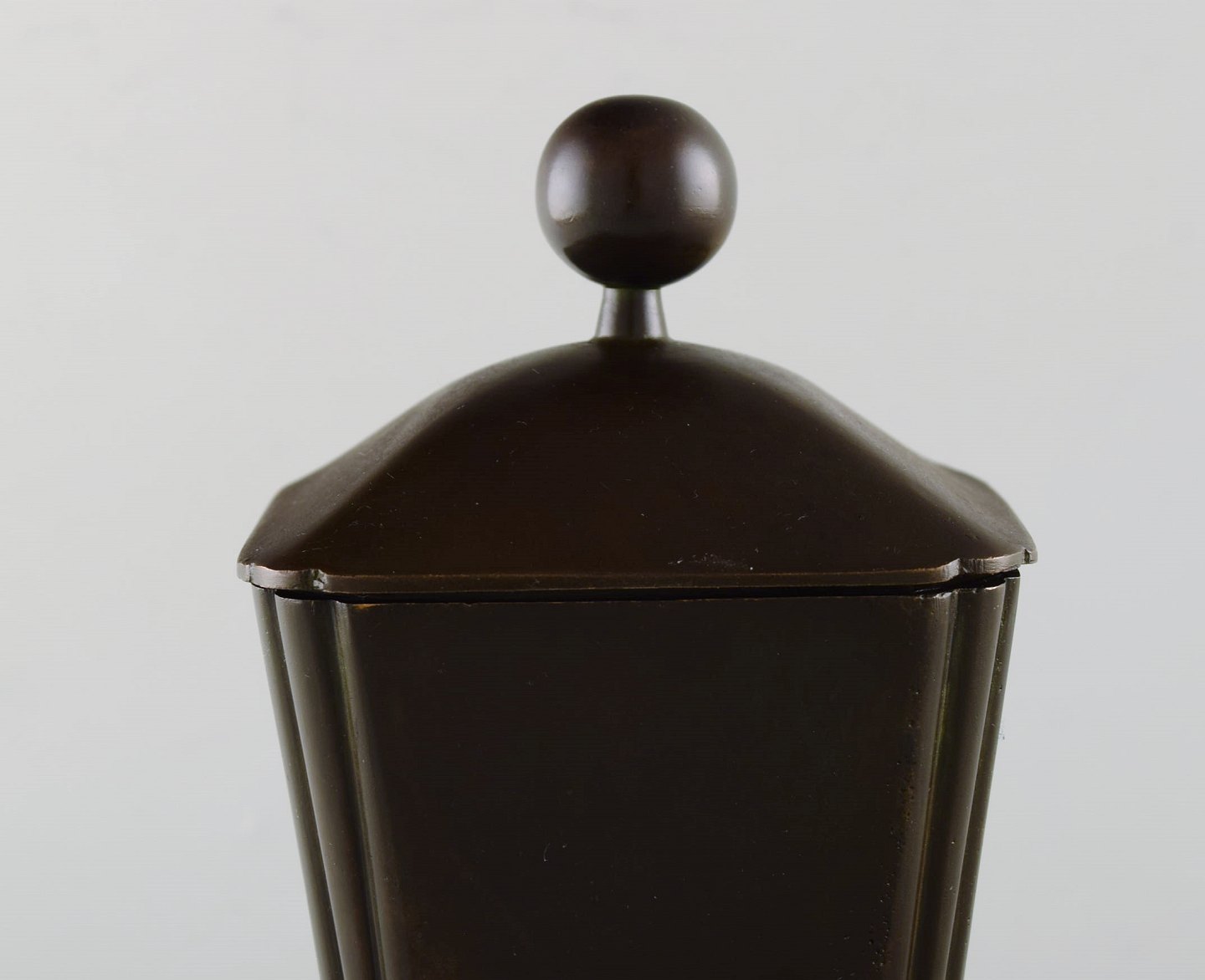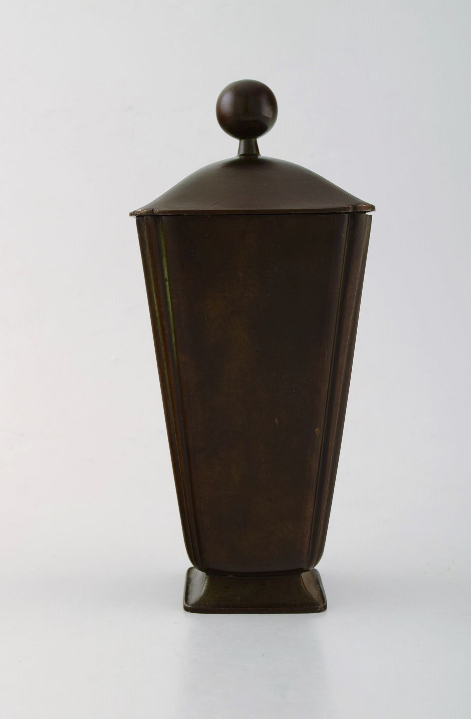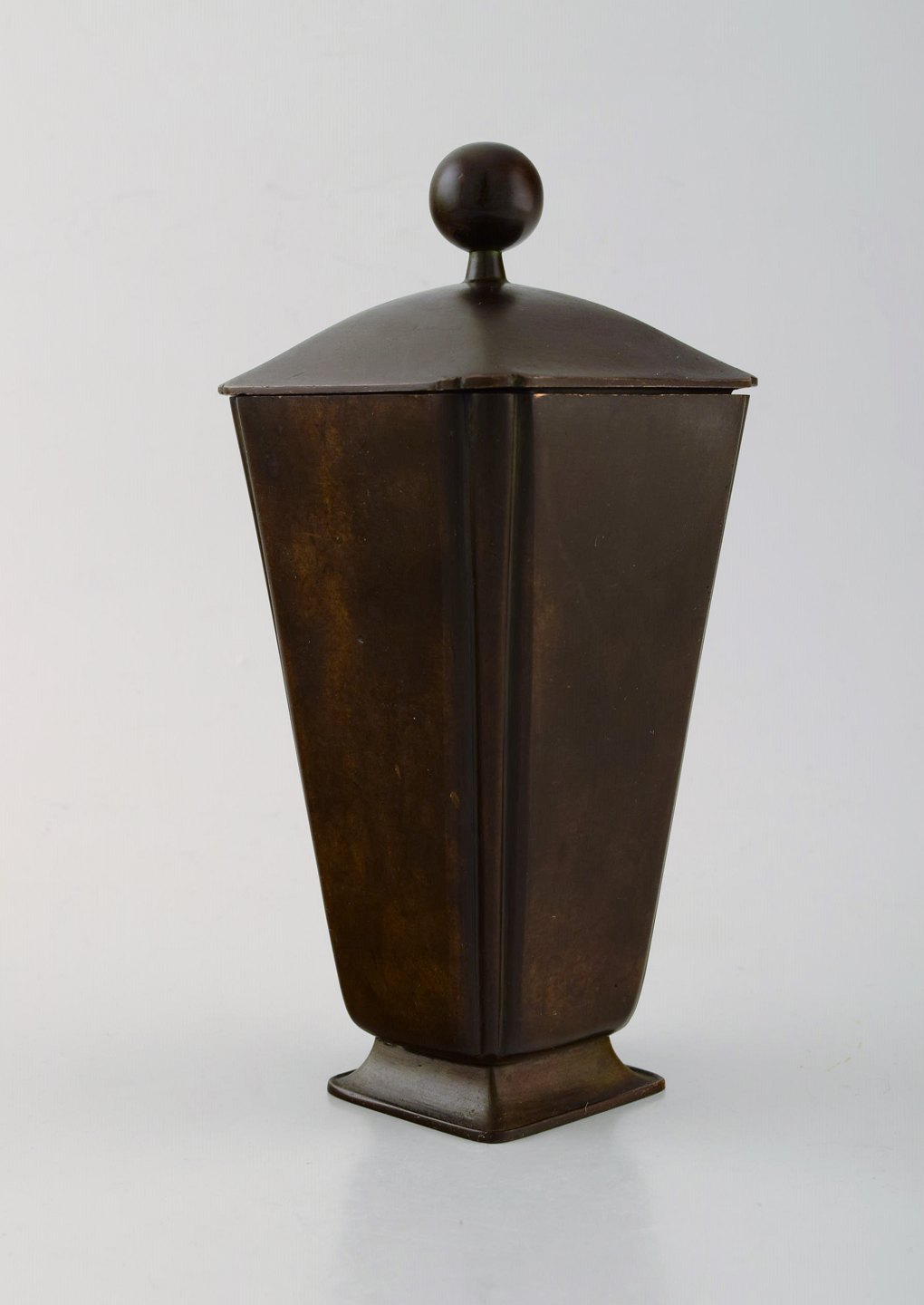 GAB (Guldsmedsaktiebolaget). Art deco lidded jar in bronze. 1930 / 40's. Measures: 20.5 x 10 cm. In nice condition, beautiful patina. Stamped.