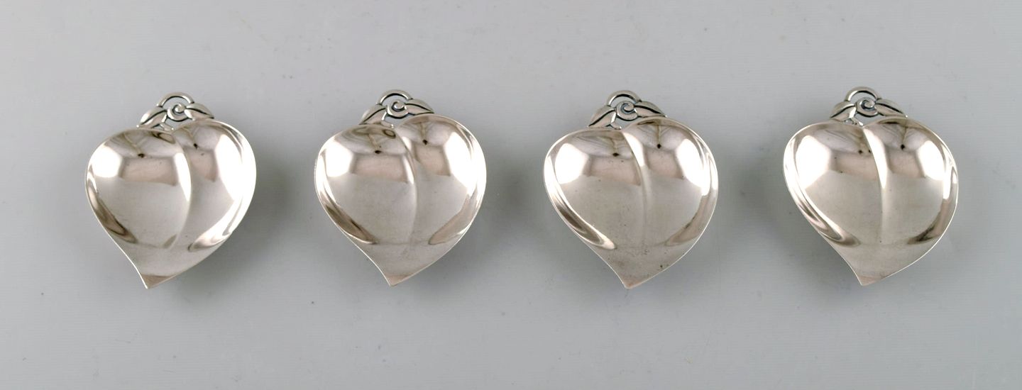 Tiffany & Company (New York). Fire bladformede sølvskåle på fødder. 1930'erne. I flot stand. Stemplet. Måler: 8,5 x 6,5 cm.