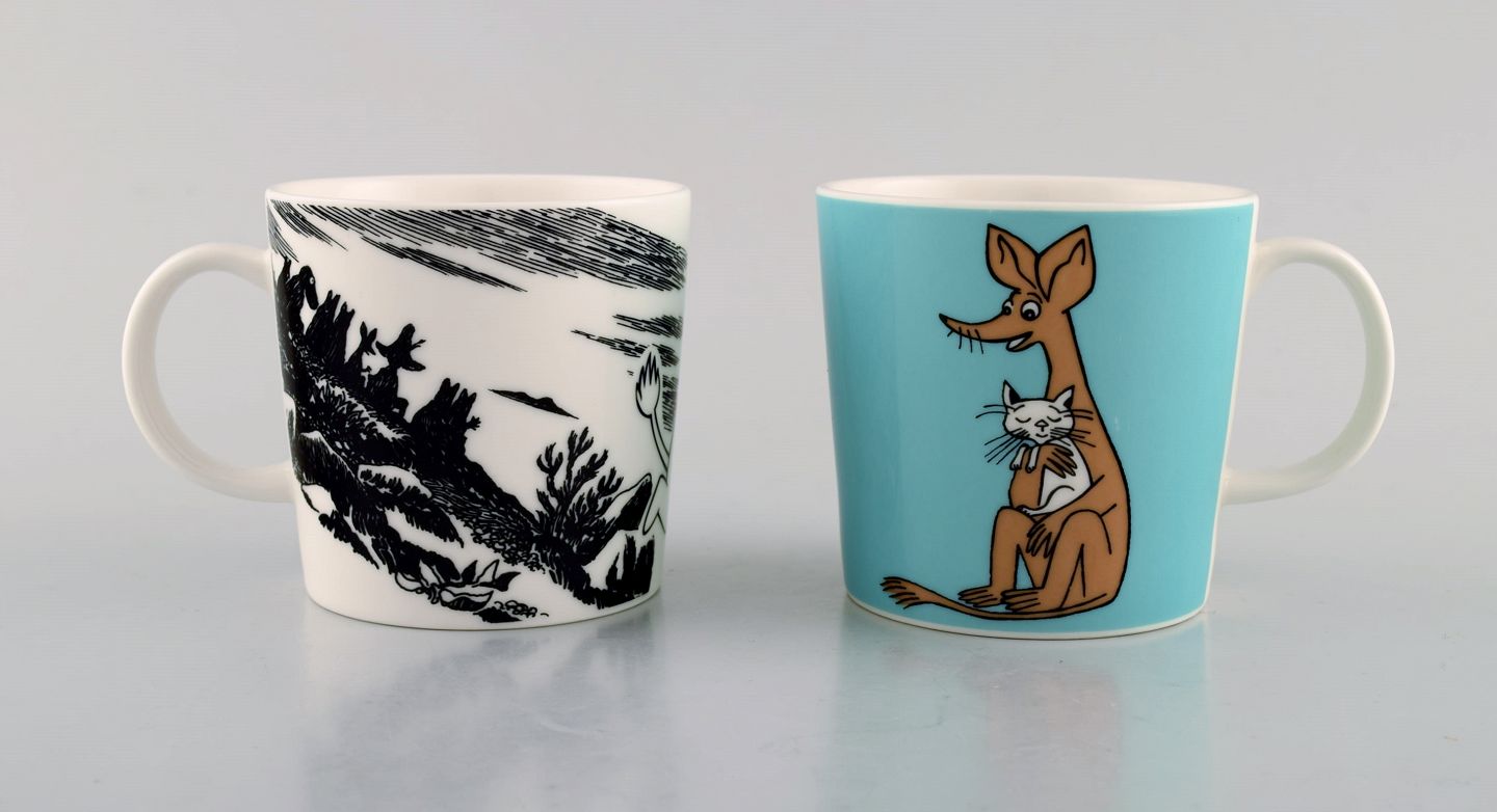 Arabia, Finland. To kopper i porcelæn med motiver fra Mumitroldene. Sent 1900-tallet.
