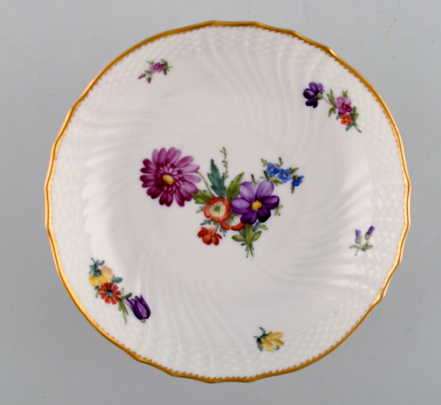 Royal Copenhagen Saksisk Blomst. Skål. Dekorationsnummer 4/1532. 1. sortering. Måler: 17,5 x 6 cm. I flot stand.
