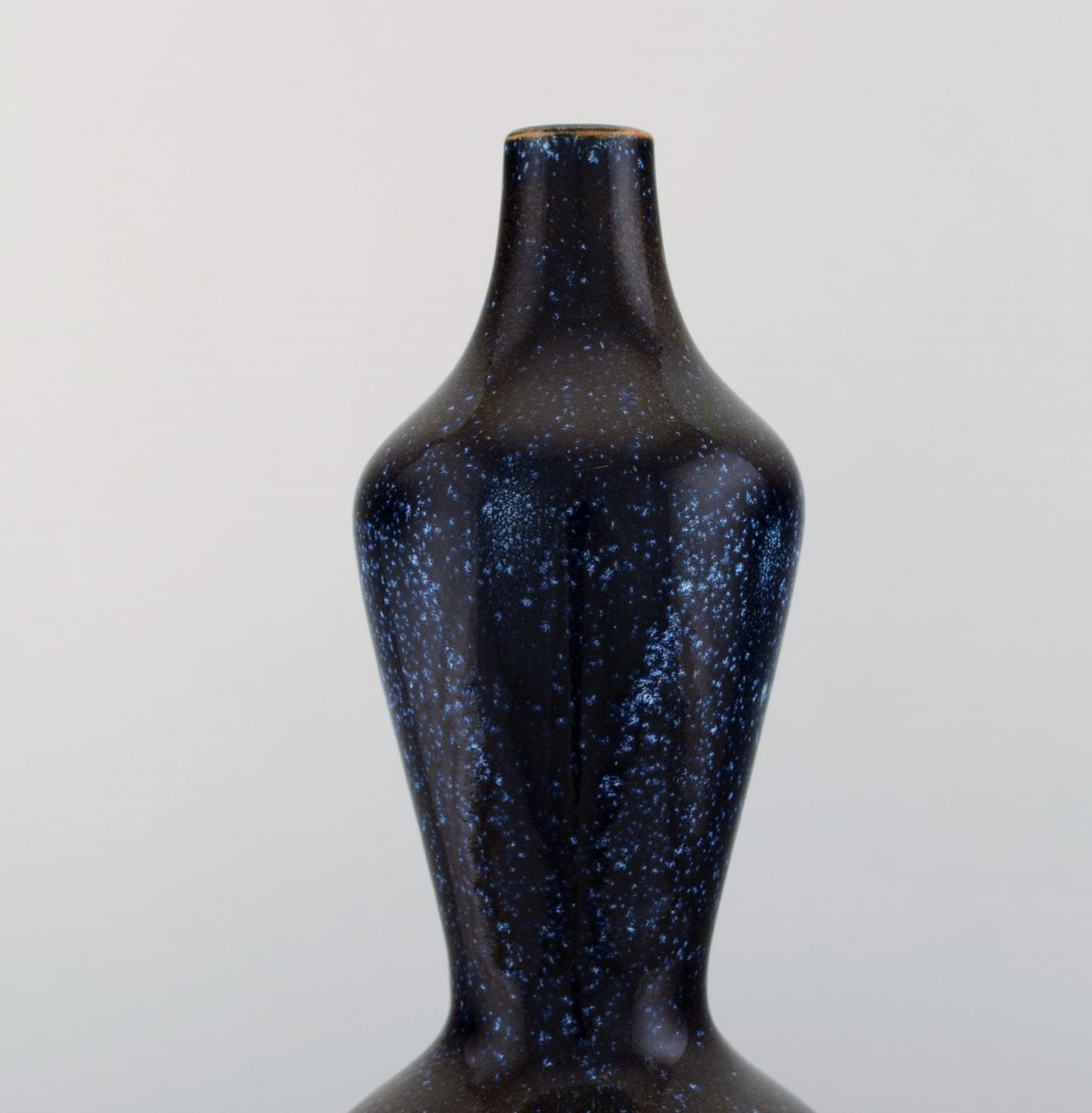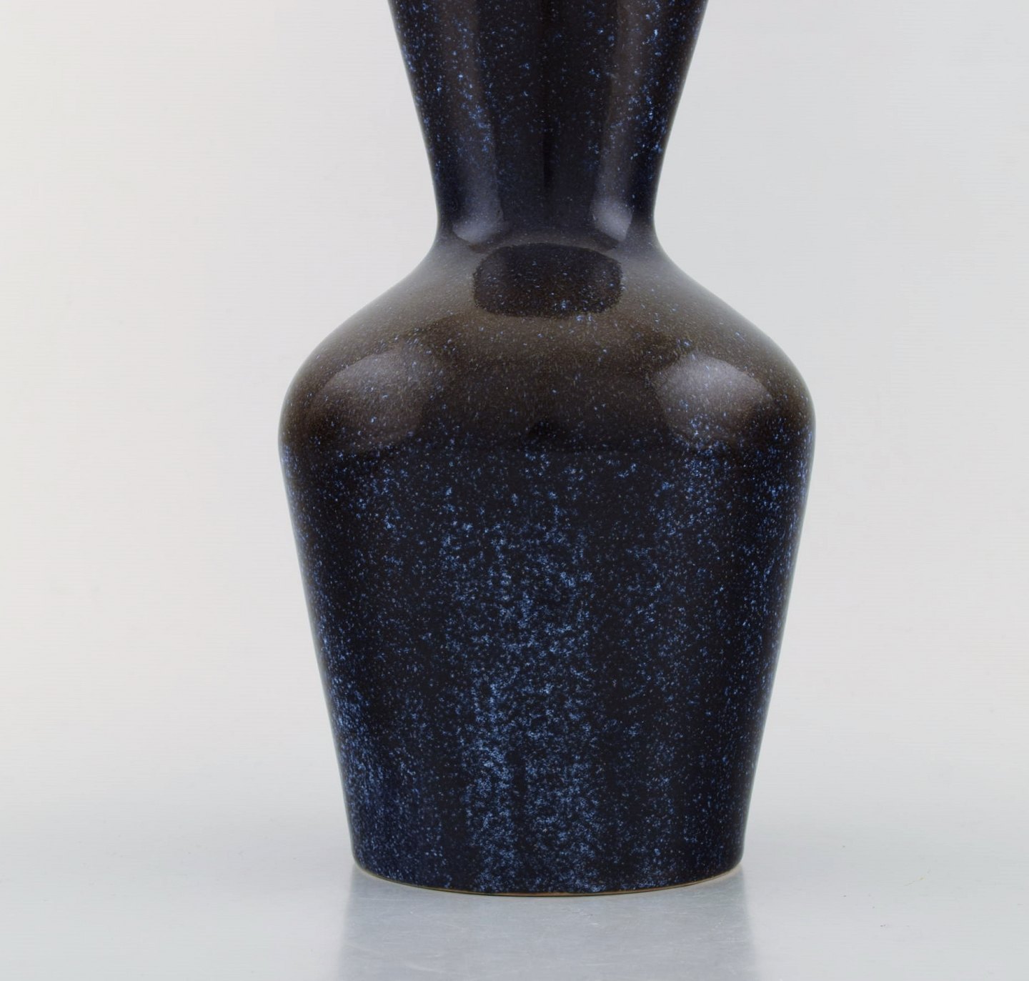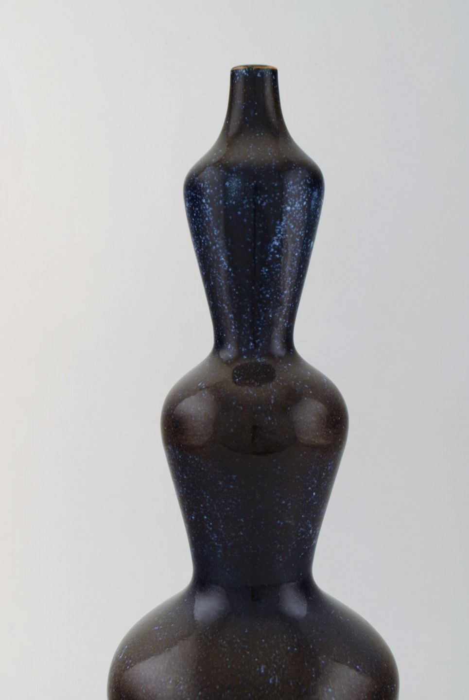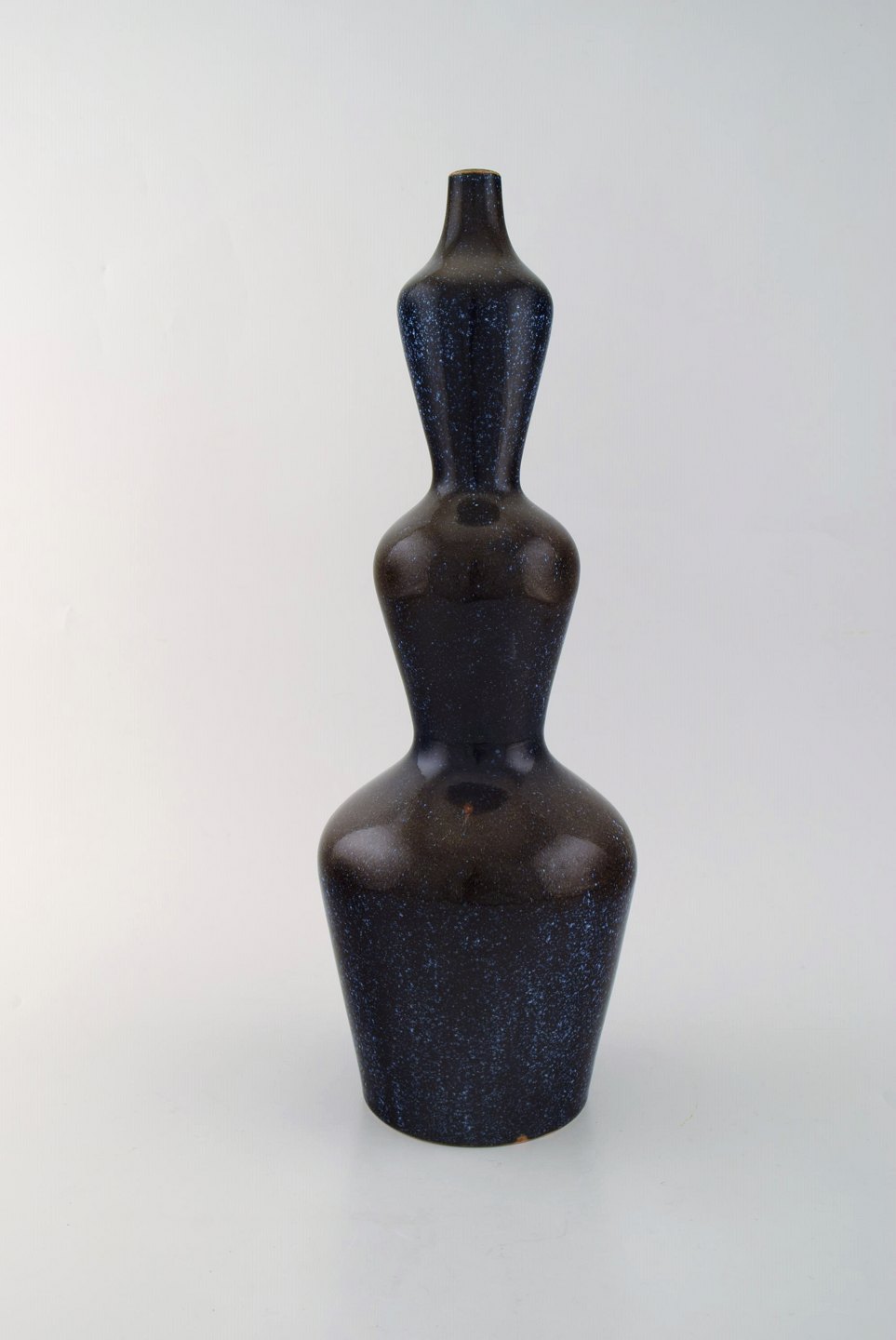 Axel Salto for Royal Copenhagen. Rare colossal triple gourd shaped vase in beautiful blue mussel glaze. Very high quality. Ca. 1940's.