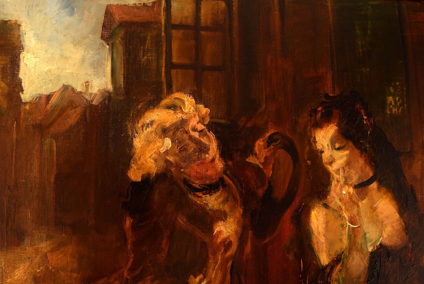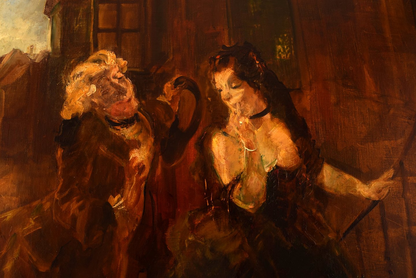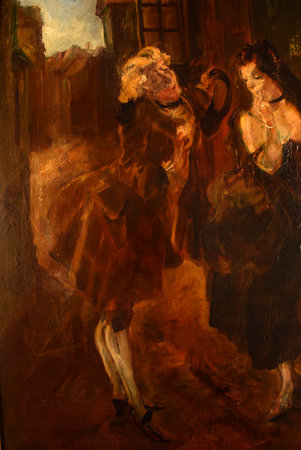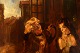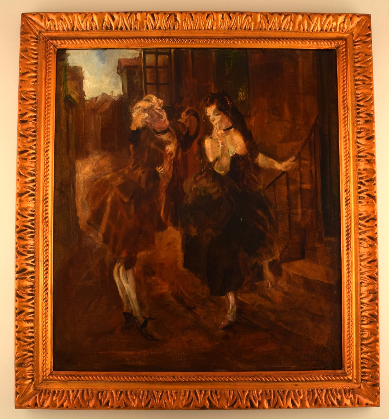 Ludvig Jacobsen f. Odense 1890, d. Vanløse 1957. Efter Ludvig Holberg scene. Olie på lærred. Bejler i rokoko klæder. 1930'erne. I flot stand. Signeret. Lærredet måler: 60 x 53 cm. Rammen måler: 7 cm.