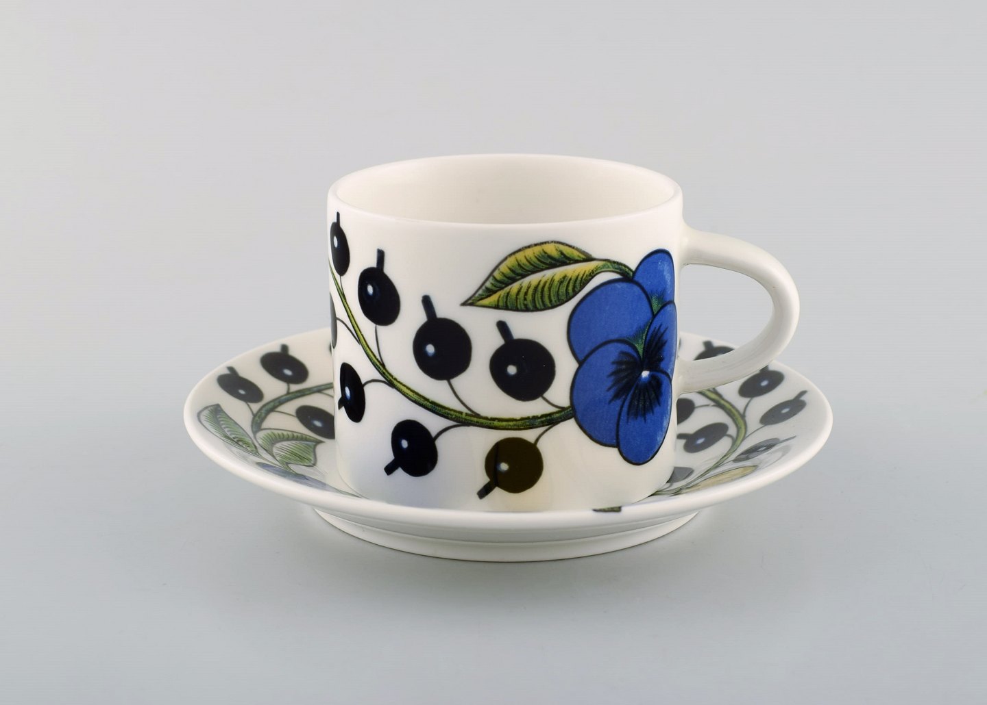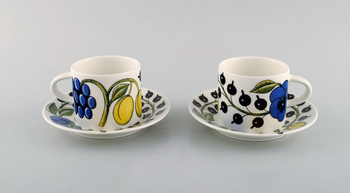 Birger Kaipiainen for Arabia. To "Paratiisi" kopper med underkop i porcelæn. Sent 1900-tallet. Koppen måler: 7,3 x 6 cm. Underkoppen måler: 14 cm. I flot stand. Stemplet.