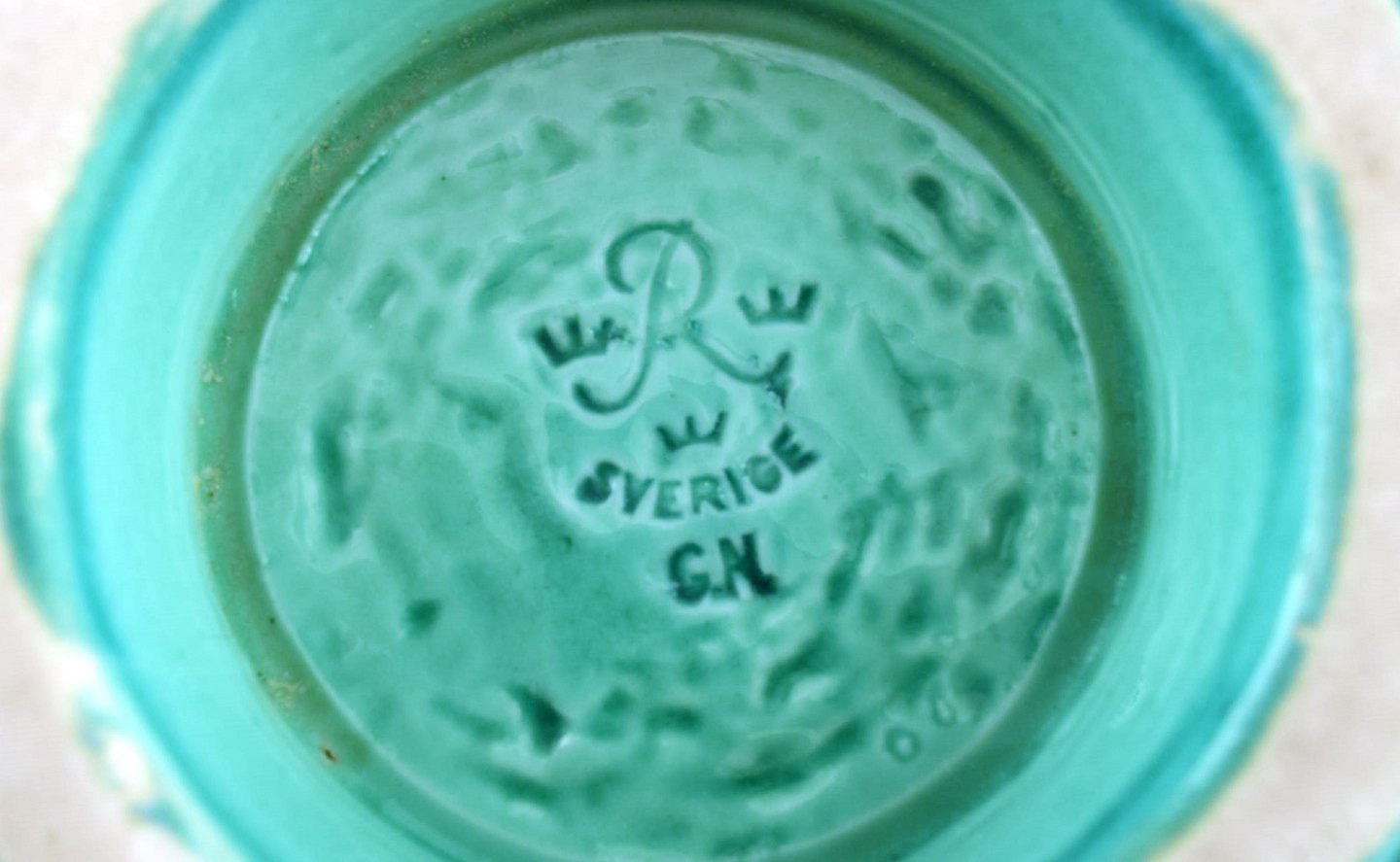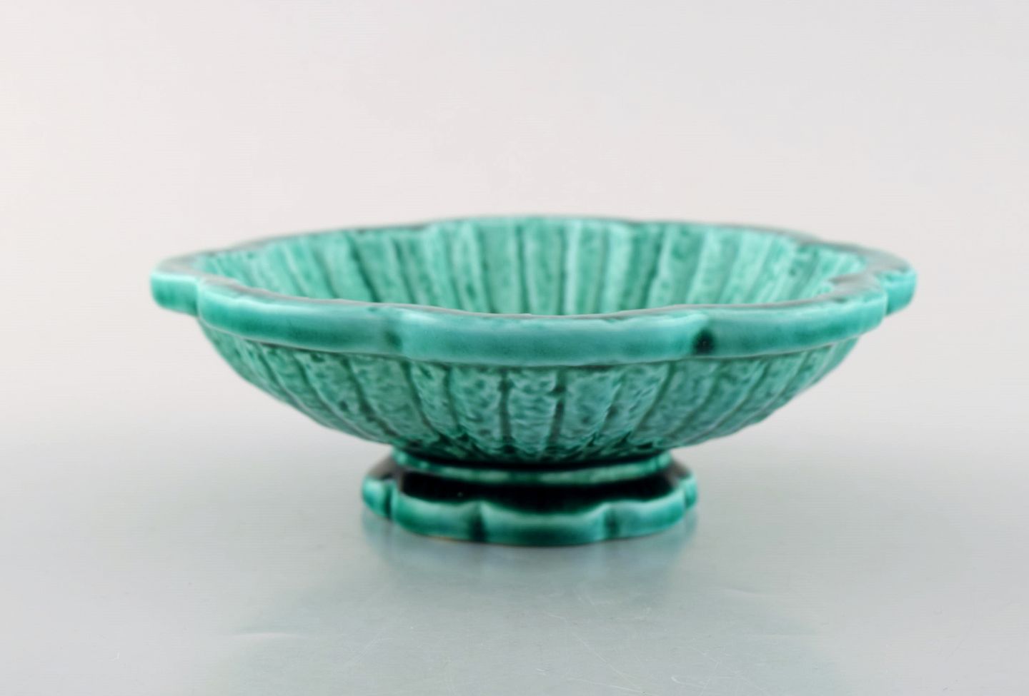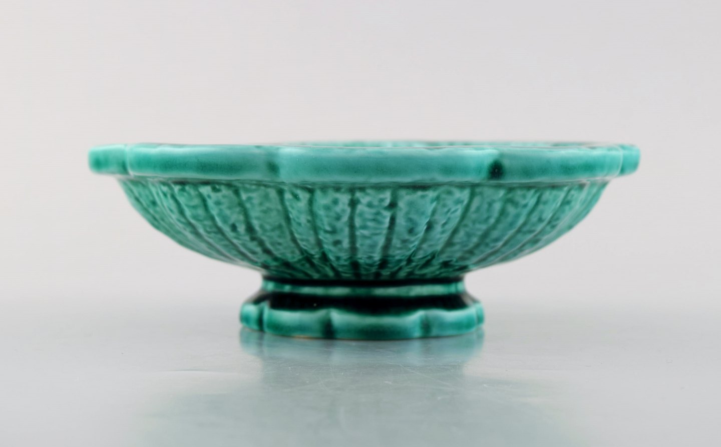 Gunnar Nylund for Rörstrand / Rørstrand. "Chamotte" bowl on foot in glazed ceramics. Beautiful glaze in turquoise shades. 1960's. Measures: 15 x 5 cm. In very good condition. Stamped. 1st factory quality.