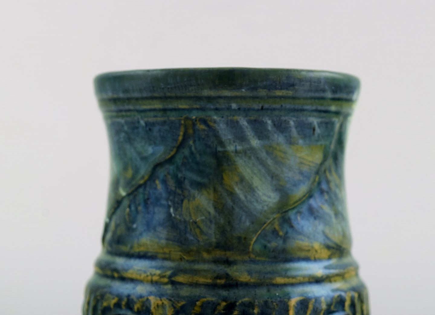 Møller & Bøgely. Skønvirke keramikvase i glaseret keramik. Smuk glasur i brune og blå nuancer. 1917-1920.