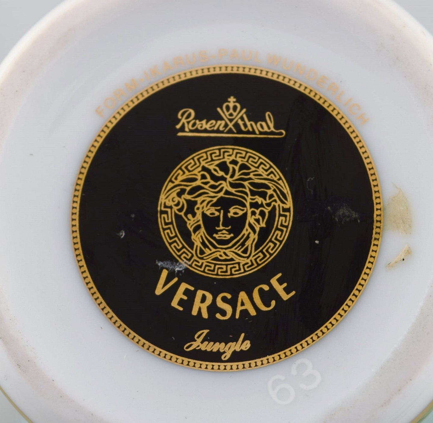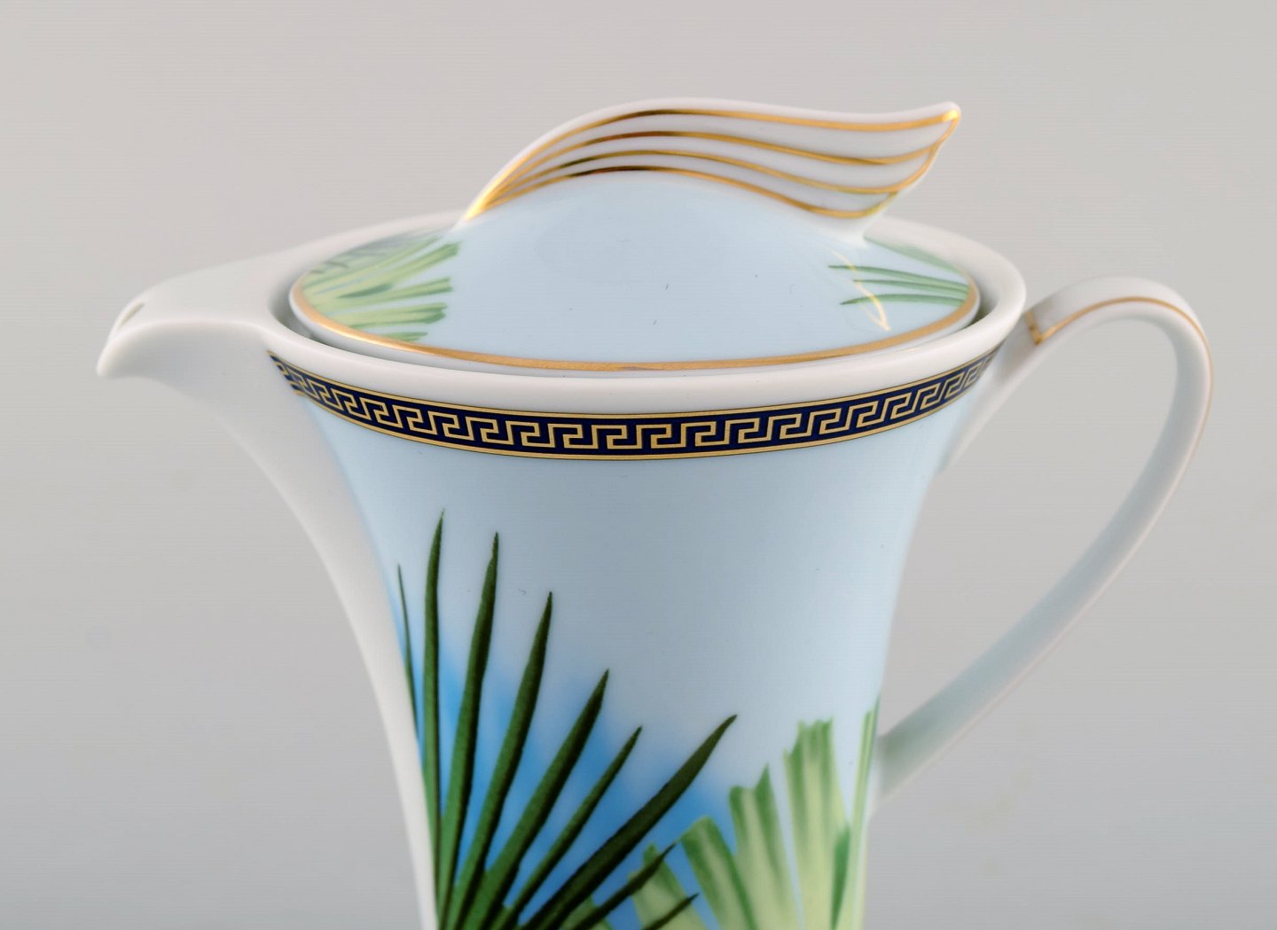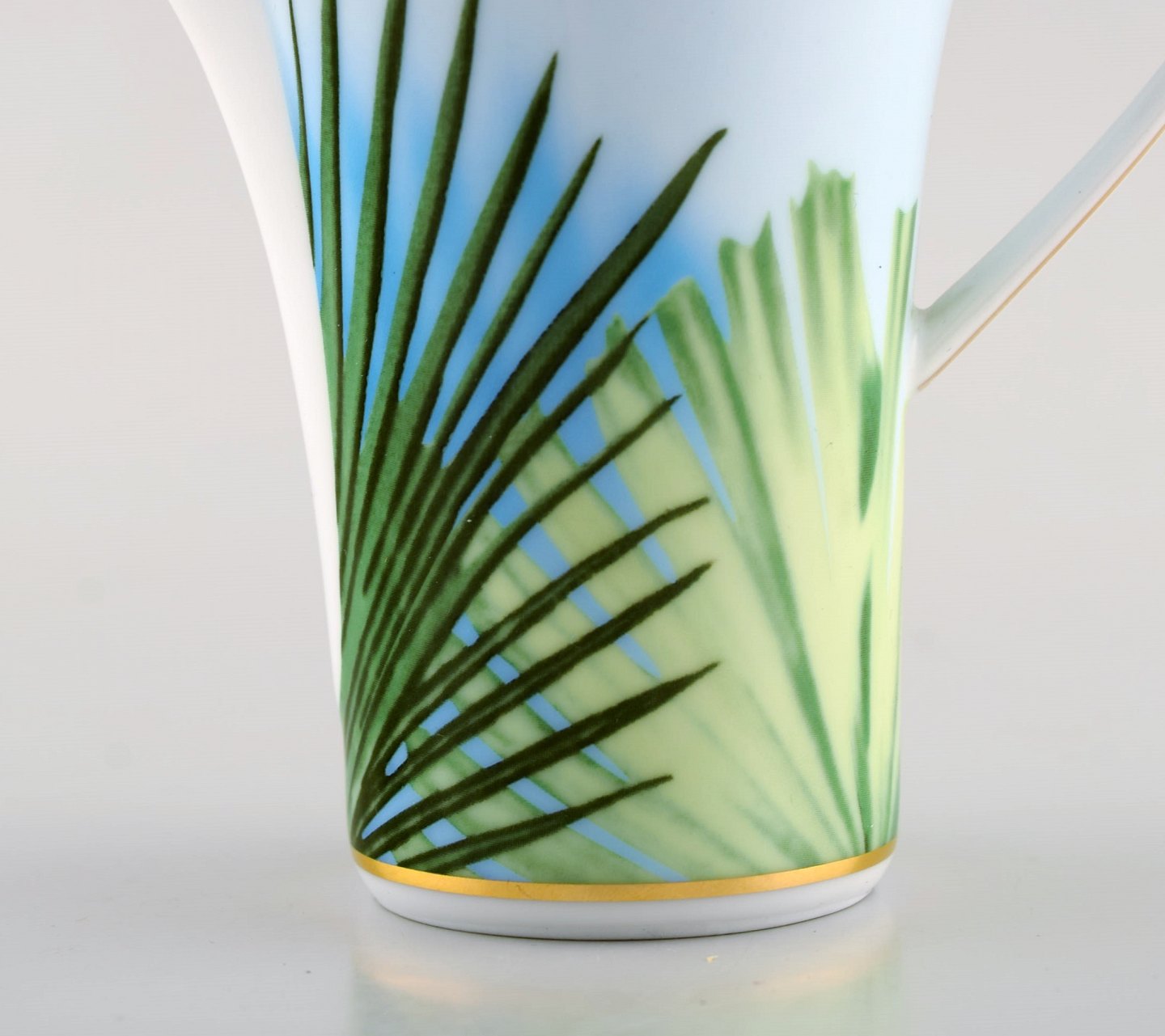 Gianni Versace for Rosenthal. "Jungle" flødekande i porcelæn med gulddekoration og grønne blade. Sent 1900-tallet. I perfekt stand. Måler: 13,5 x 13,5 cm. Stemplet. Original kasse medfølger.