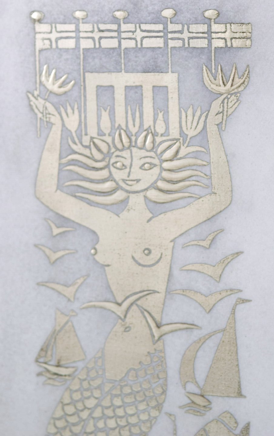 Stig Lindberg for Gustavsberg. "Grazia" vase in glazed stoneware with mermaid and fish in silver inlay. Mid 20th century. Measures: 18 x 7 cm. In very good condition. Stamped.