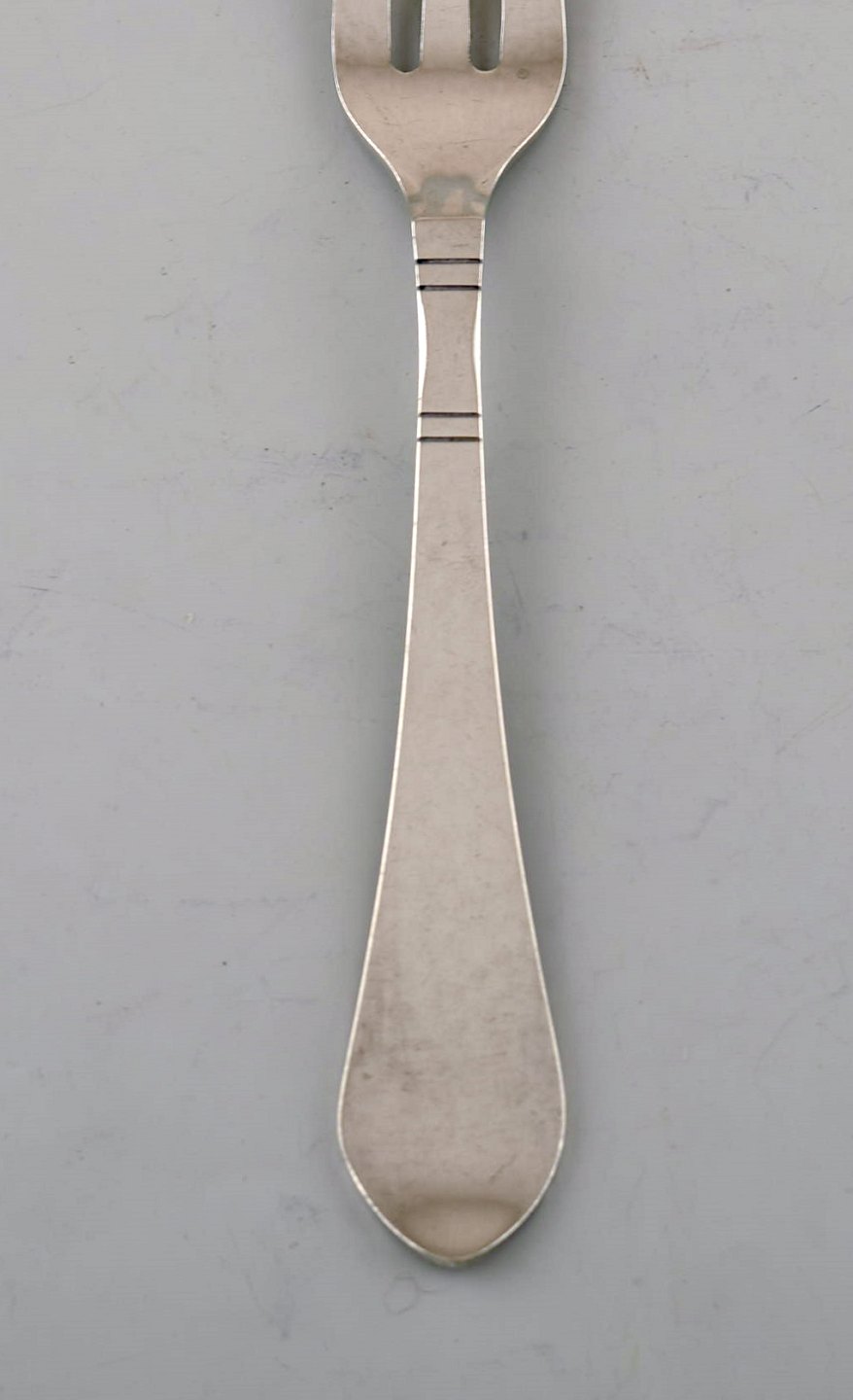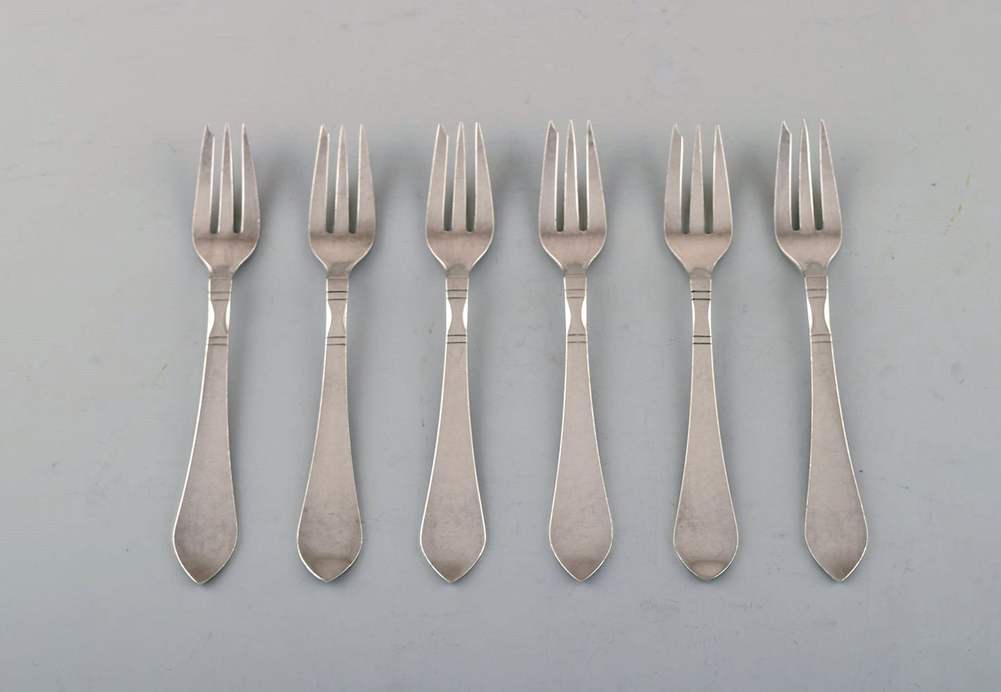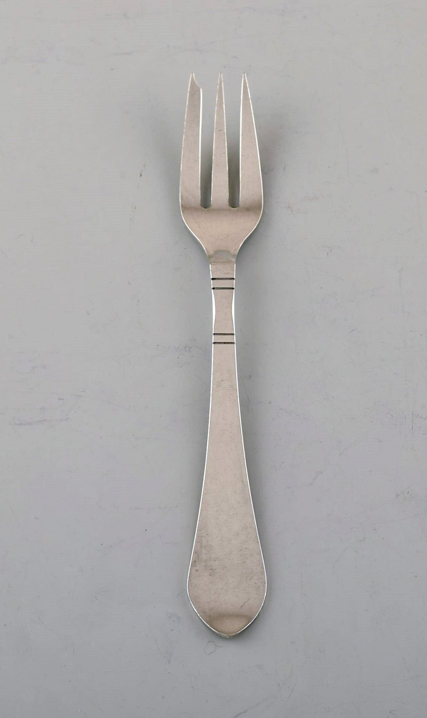 Georg Jensen Continental cutlery. Six cake forks in hammered sterling silver.
