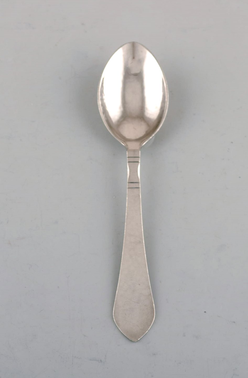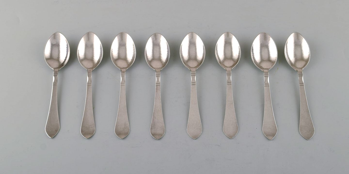 Georg Jensen Continental (Antik) bestik. Otte dessertskeer i hammerslået sterlingsølv.