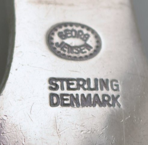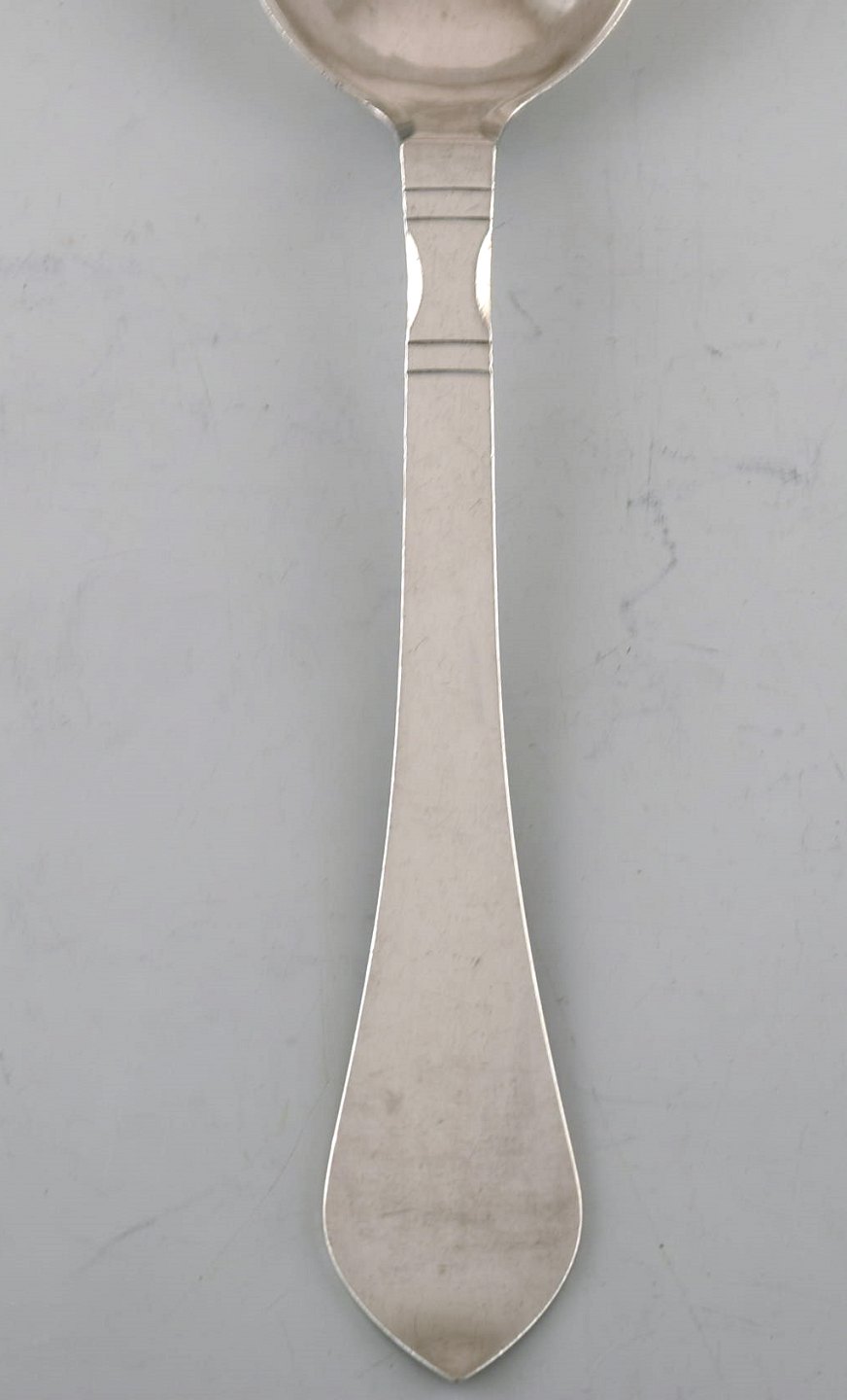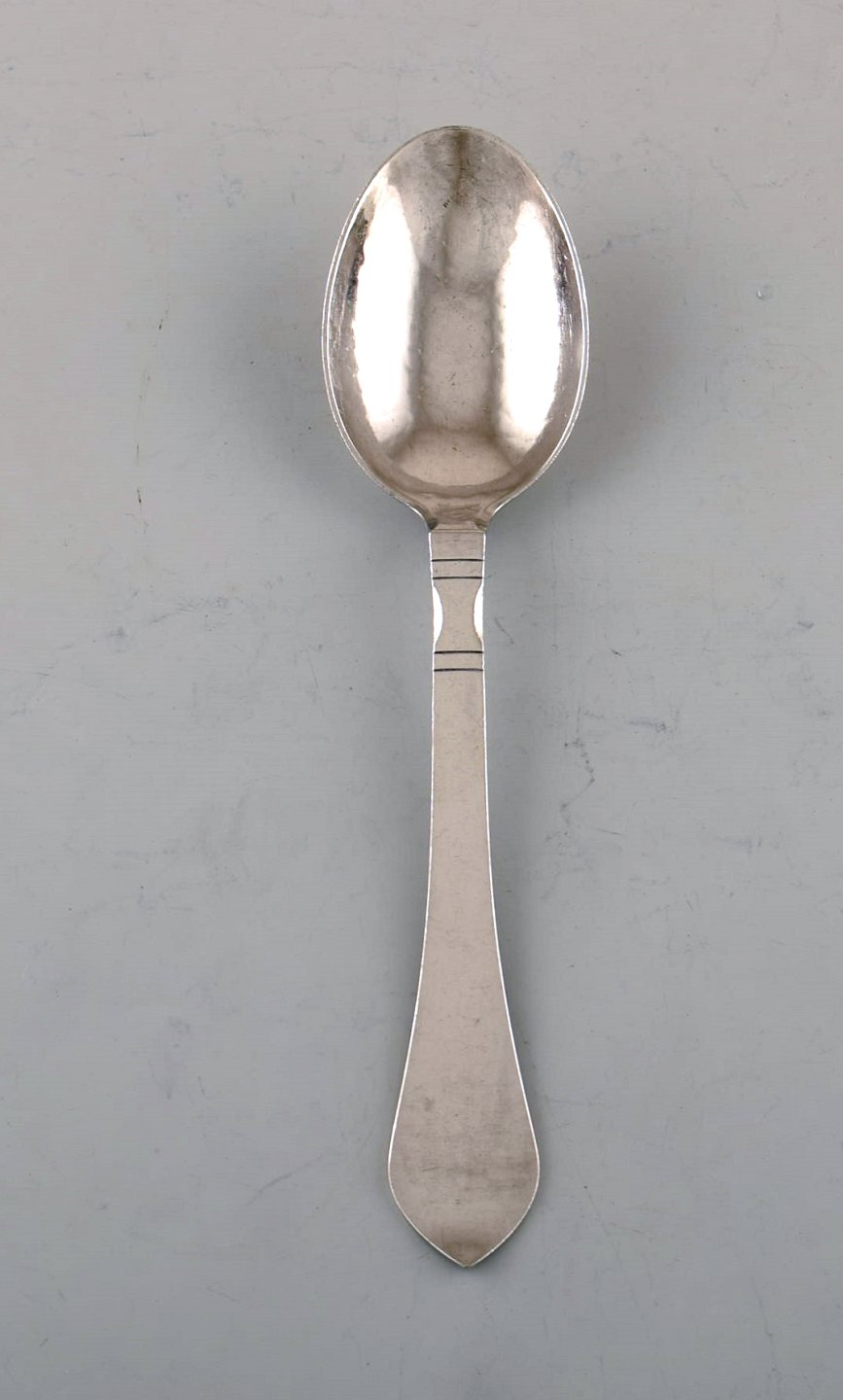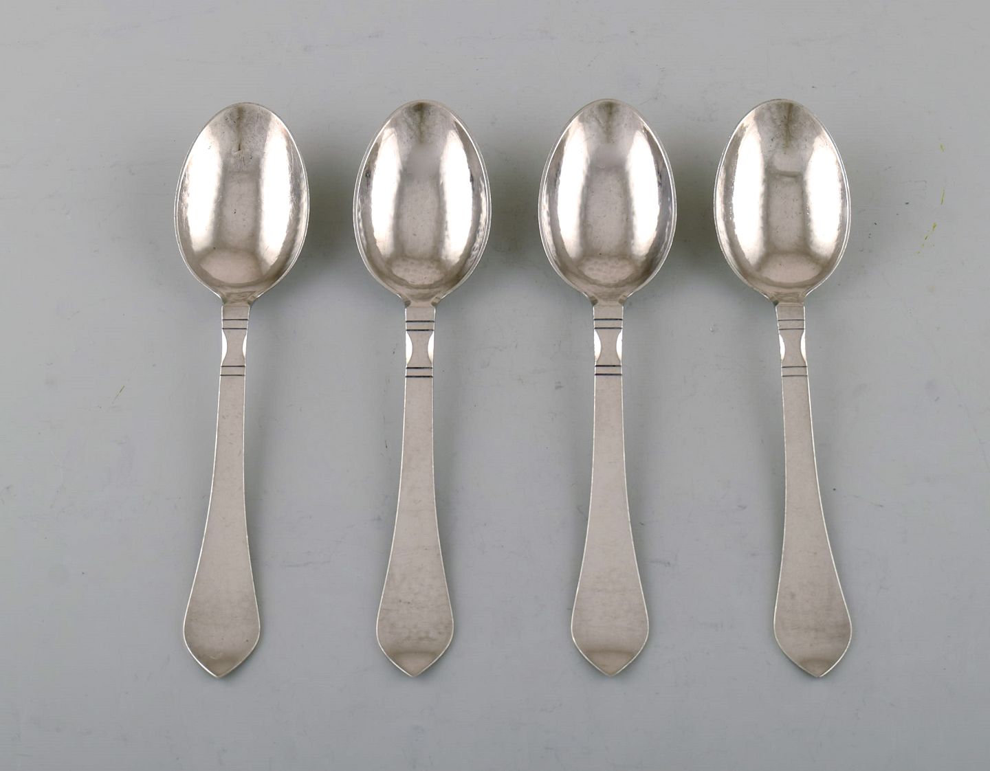 Georg Jensen "Continental" cutlery. Four dessert spoons in hammered sterling silver. Measures: 17 cm. Stamped. In very good condition. The cutlery was designed by Georg Jensen in 1906.
