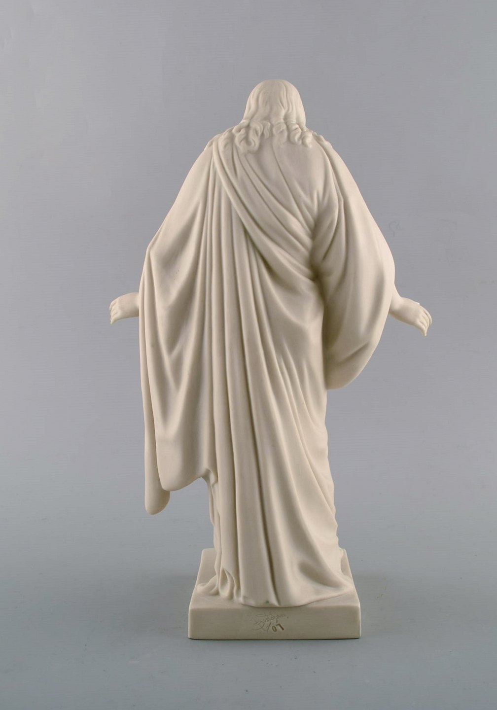 Gustafsberg / Gustavsberg, Sverige. Kristus figur i biscuit, dateret 1907. Måler: 30 x 19 cm. I flot stand. Stemplet: Gustafsberg 07.