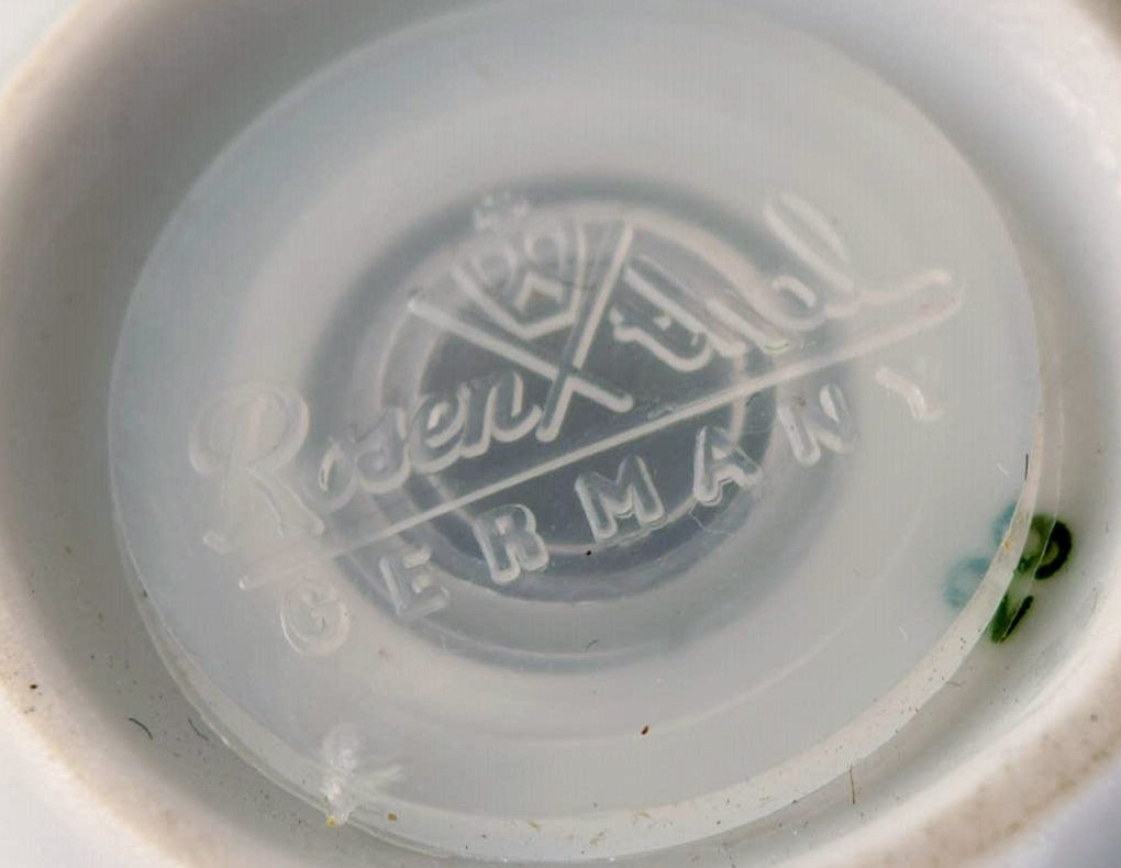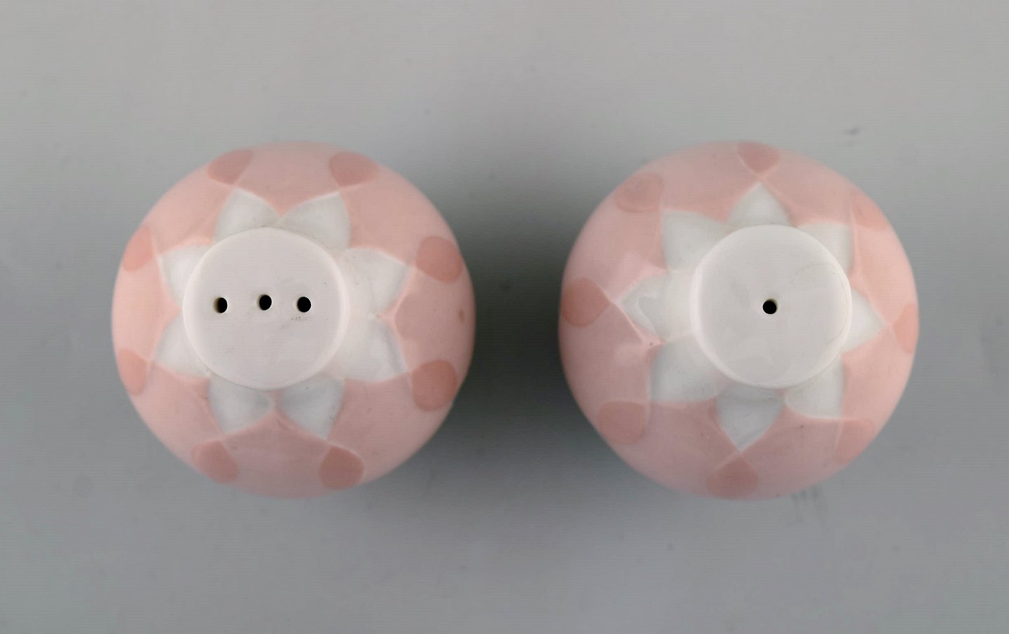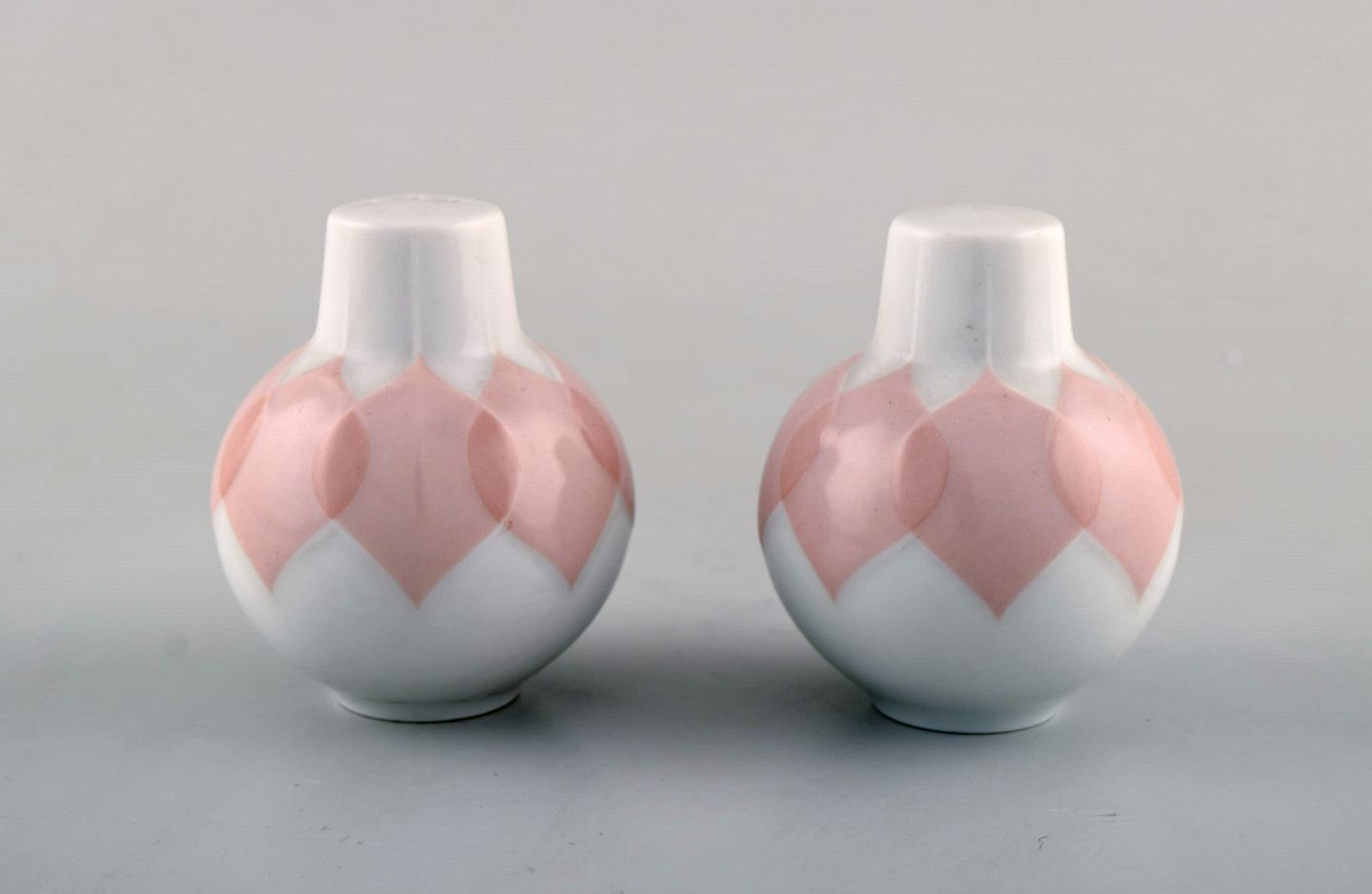 Bjørn Wiinblad for Rosenthal. "Lotus" porcelænsservice. Salt / peber sæt dekoreret med lyserøde lotusblade. 1980'erne. Måler: 6,5 x 5,5 cm. I flot stand. Stemplet.