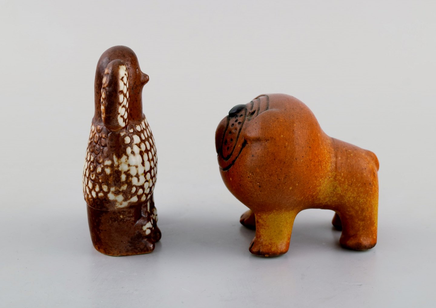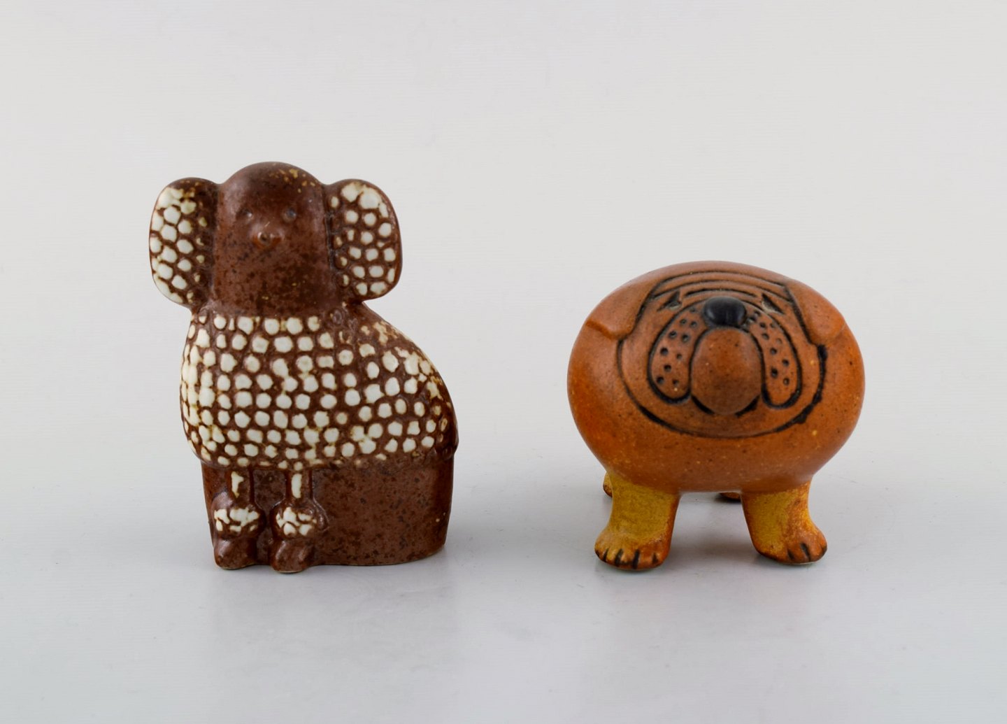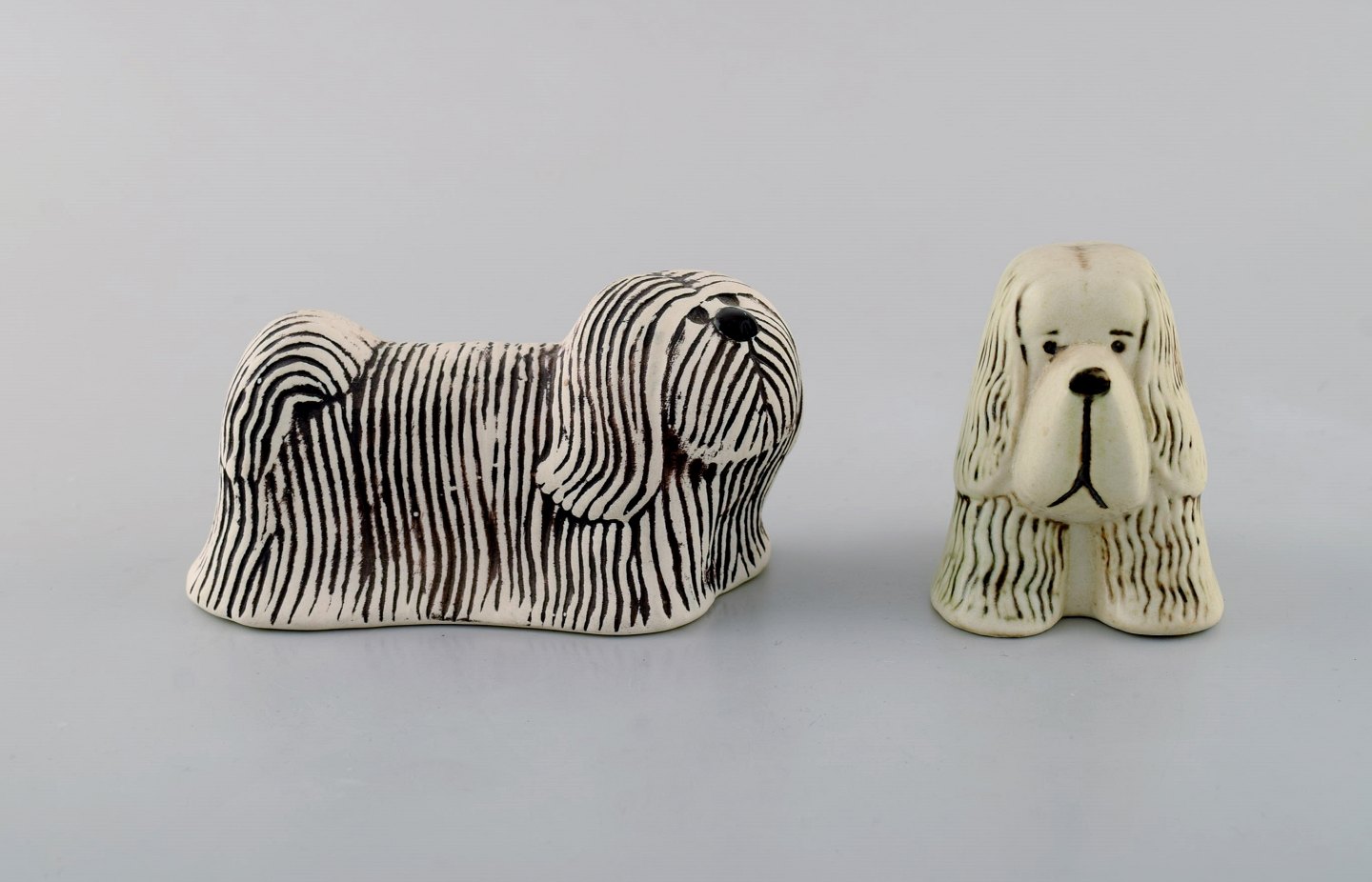 Lisa Larson for Gustavsberg. Five dogs in glazed ceramics. Poodle, bulldog, pekingese and others. 1970's. Largest measures: 7.5 x 7 cm. In very good condition. Signed.