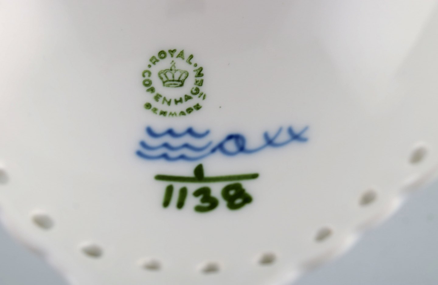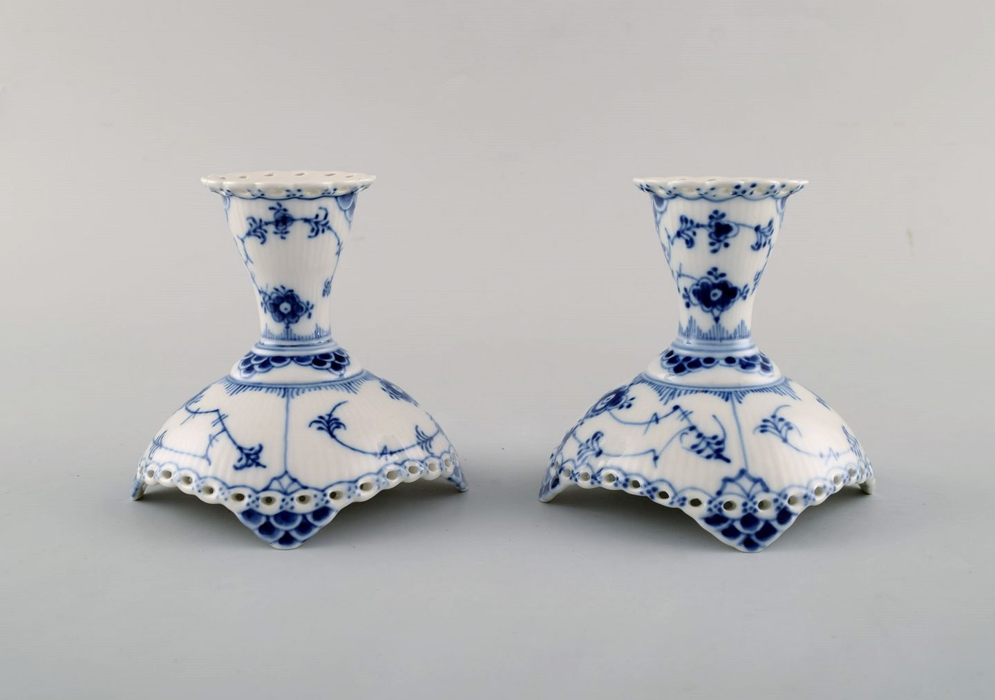 Et par Royal Copenhagen Musselmalet helblonde lysestager i porcelæn. Modelnummer 1/1138. Måler: 10,5 x 10,5 cm. I perfekt stand. Stemplet. 1. Sortering.